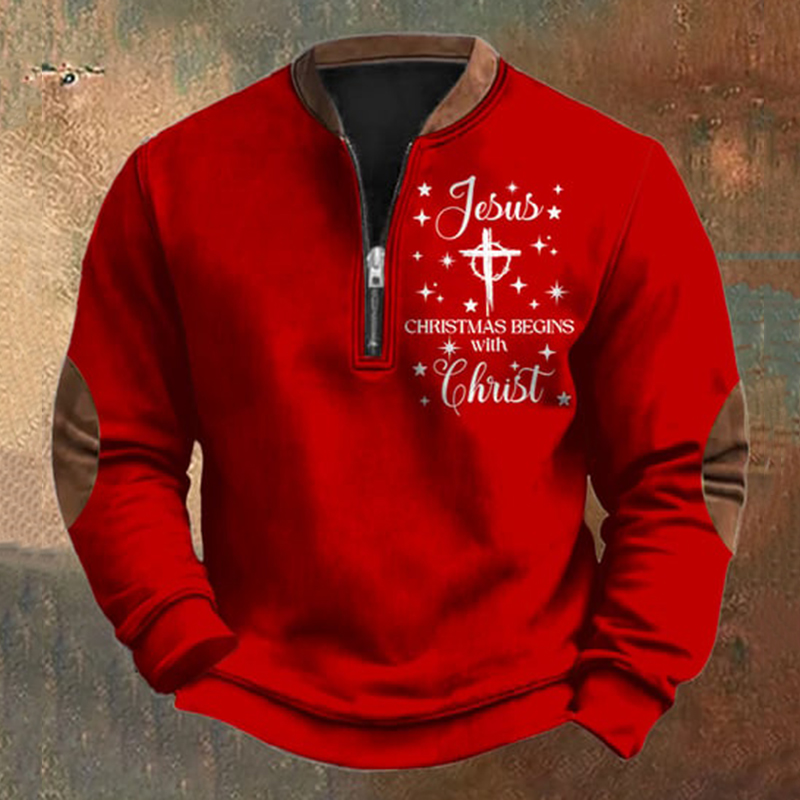 Men's Christmas Printed Zipper Sweatshirt