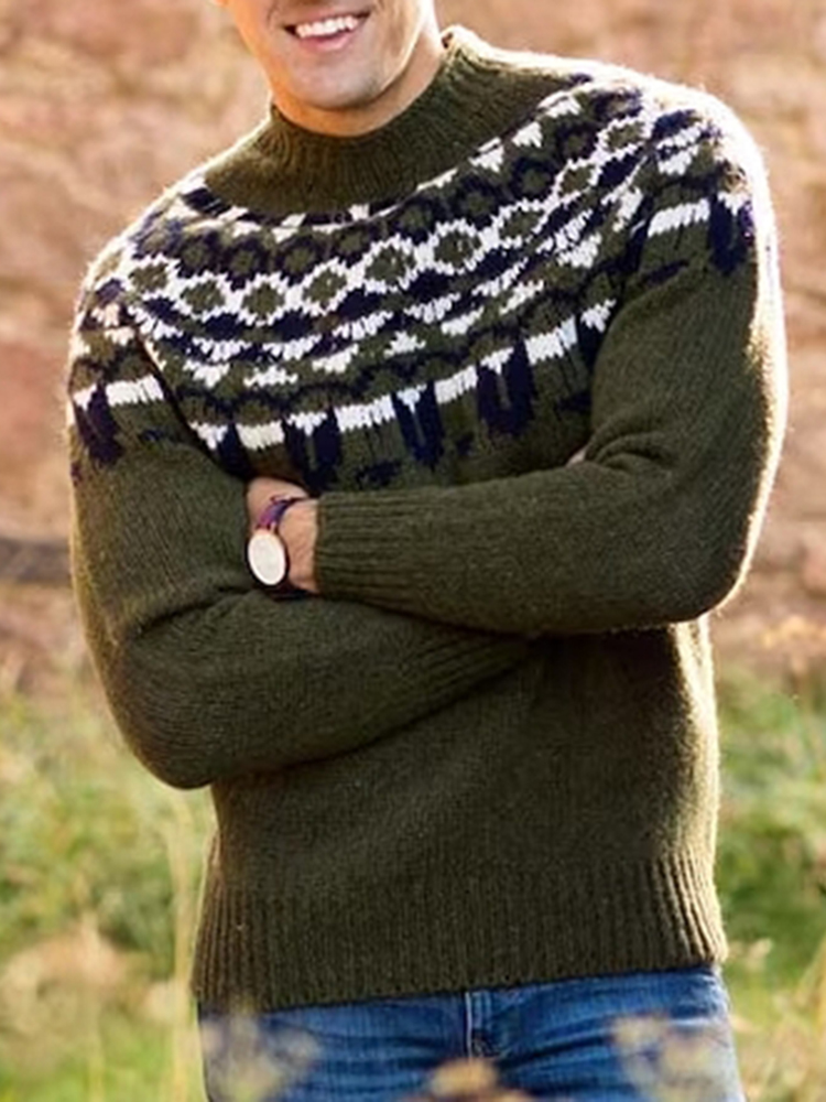 Men's Vintage Christmas Chunky Knit Contrast Sweater