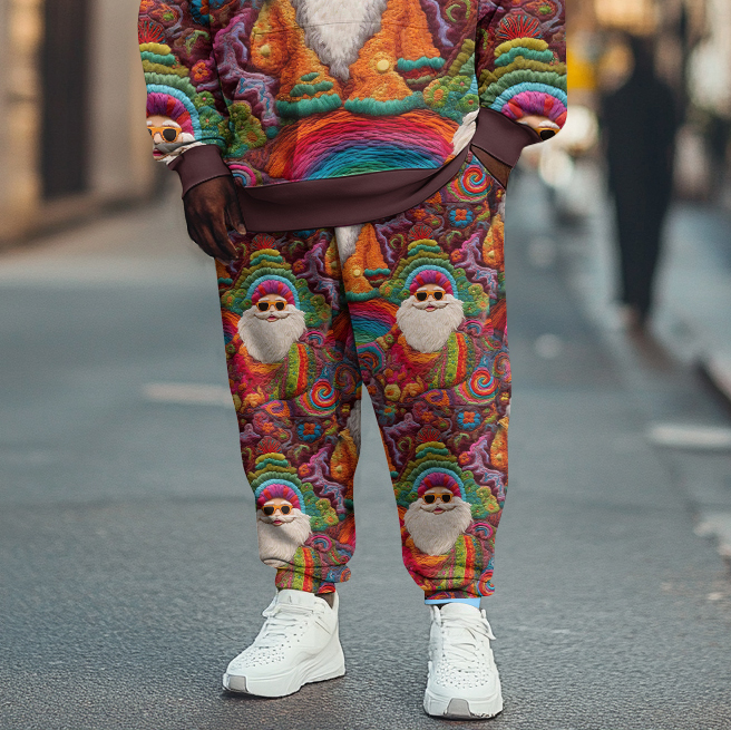 Men's Groovy Hippie Santa Embroidery Cozy Sweater