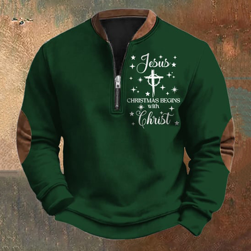 Men's Vintage Faith Printed Zip Collar Sweatshirt