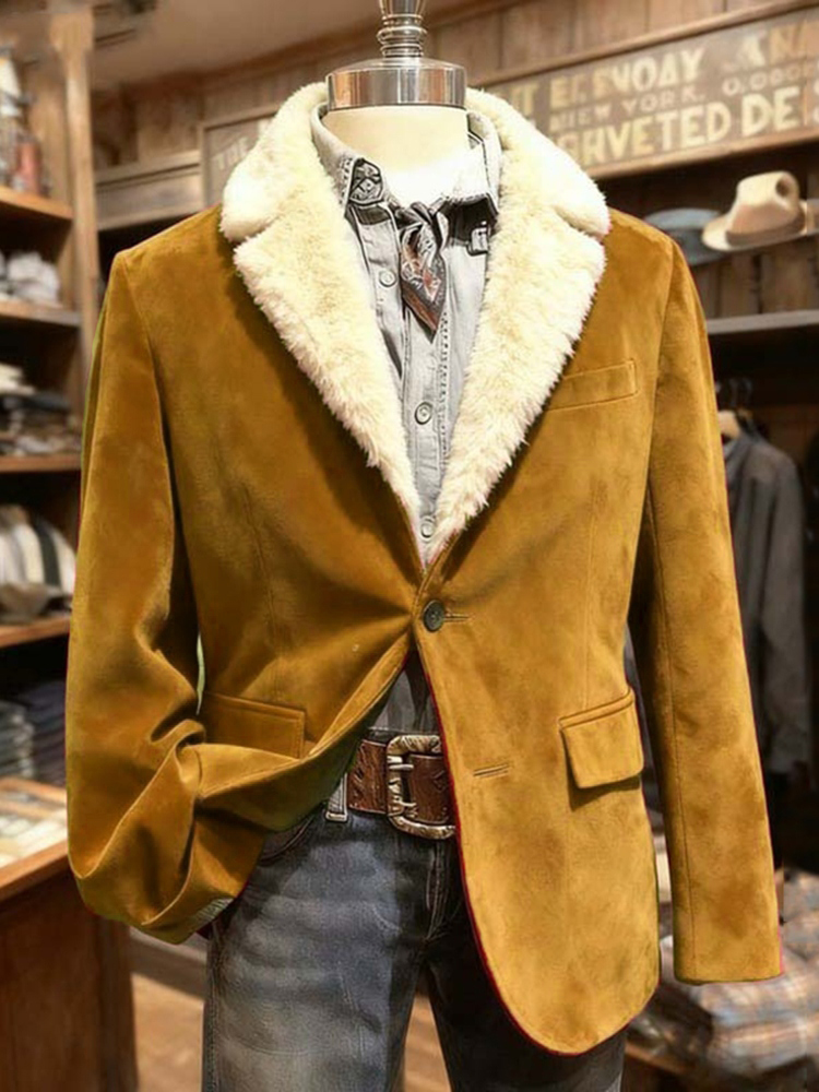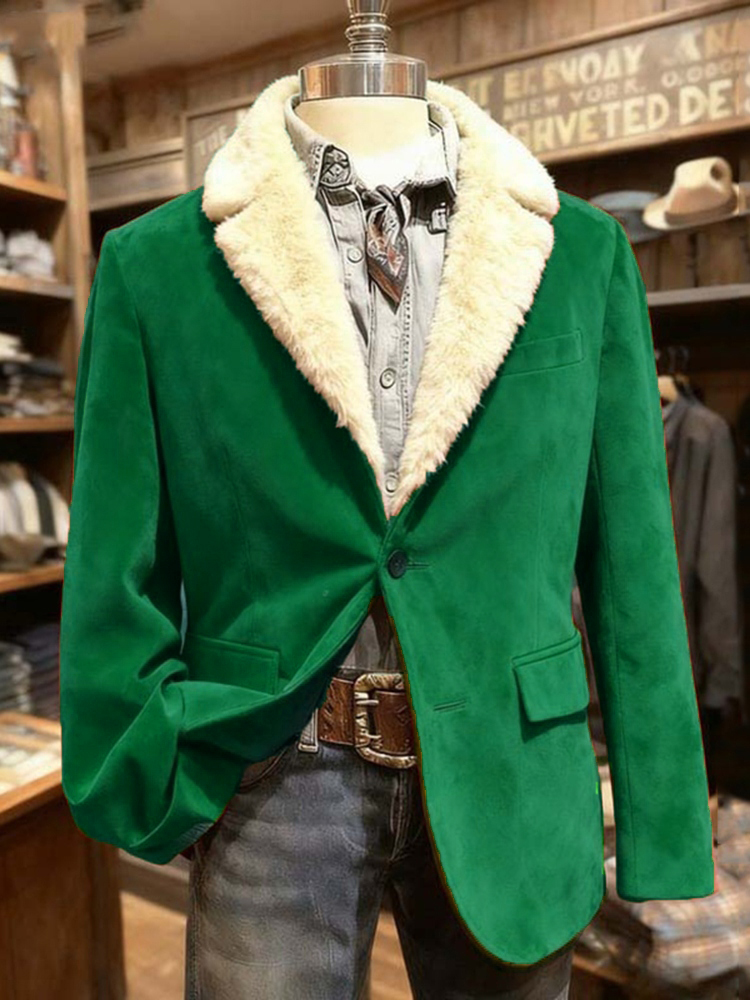 Men's Christmas Solid Color Fur Collar Printed Blazer