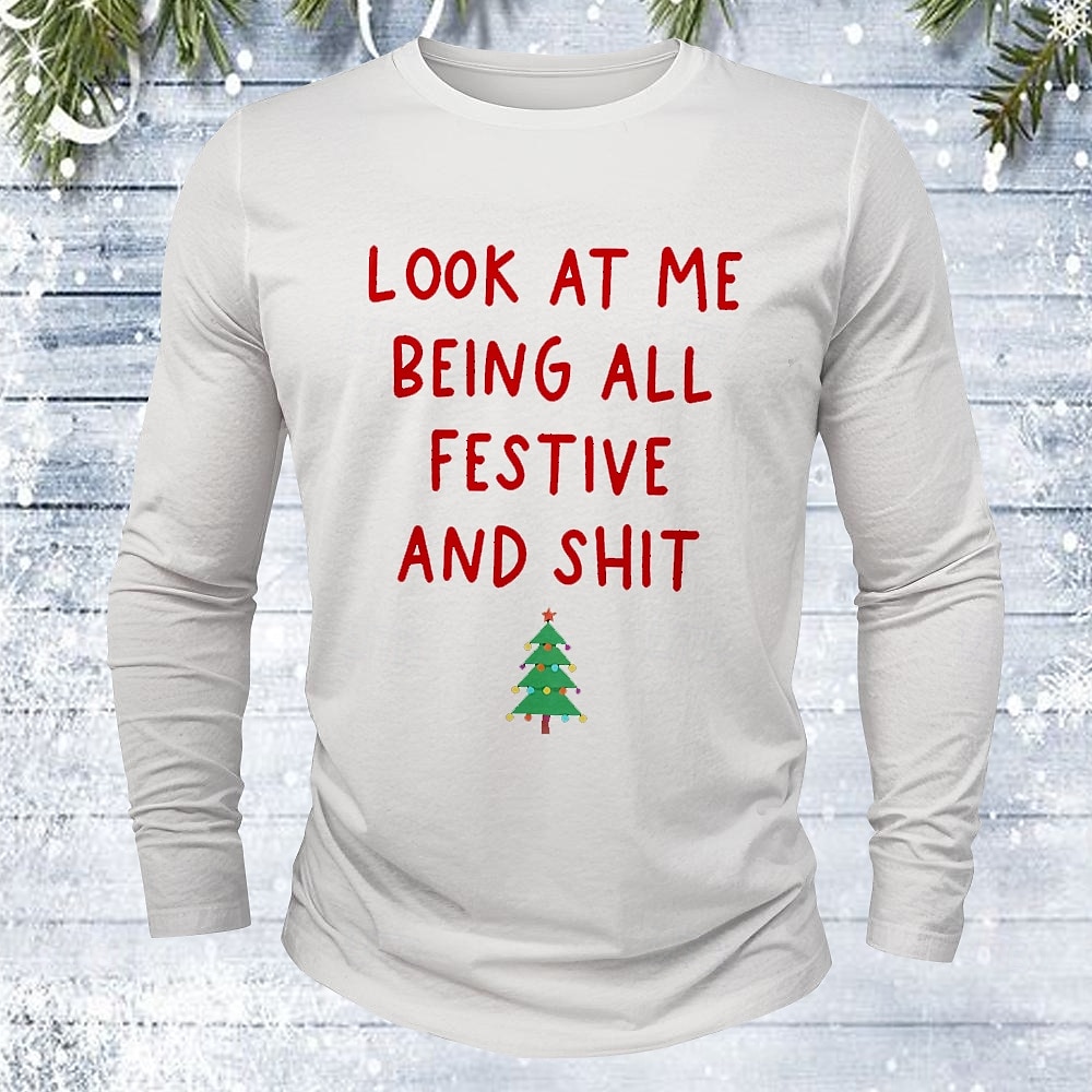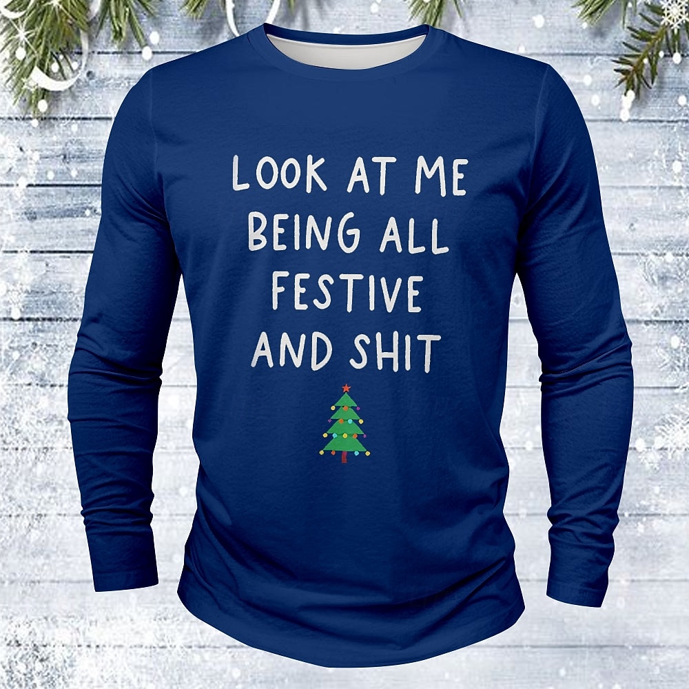 Men's Christmas Print Crew Neck Long Sleeve Casual T-shirt