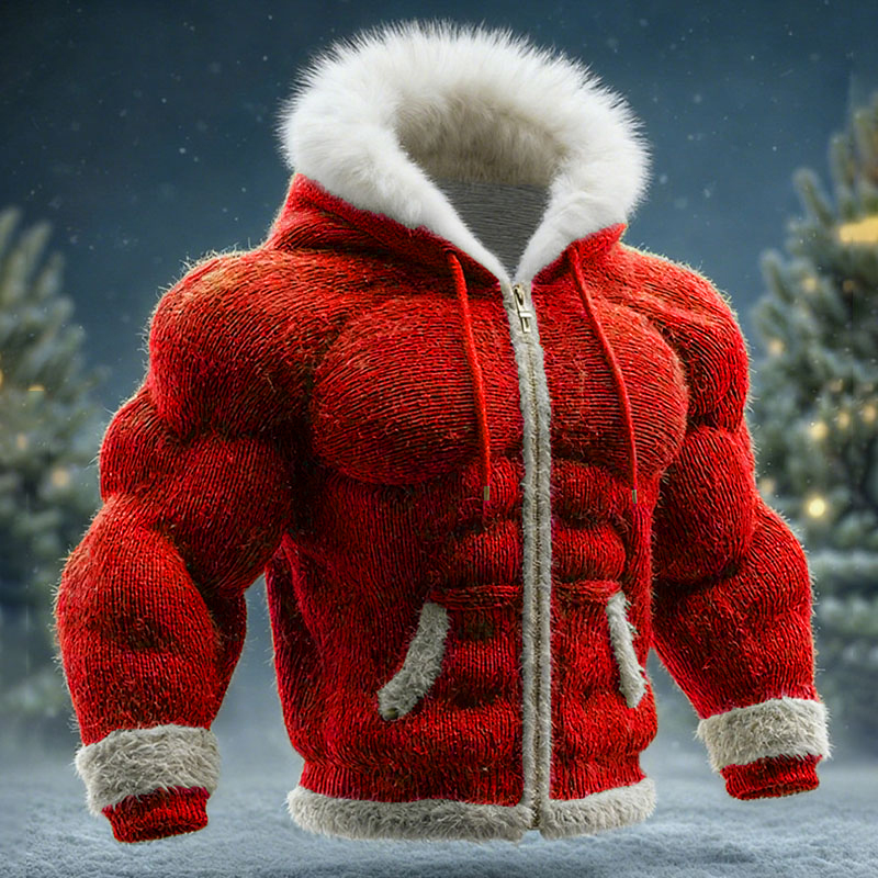 Men's Christmas Muscle Line Art Flannel Hooded Sweater