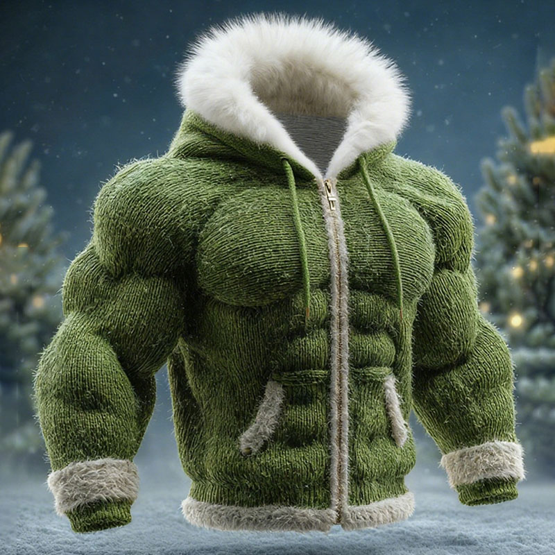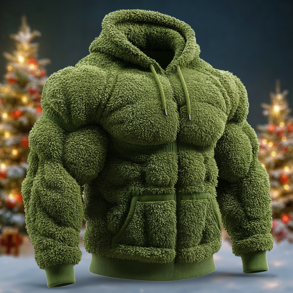 Men's Christmas Green Muscle Line Cozy Plush Hoodie