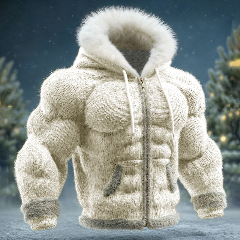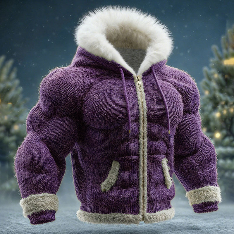 Men's Muscle Texture And Rock Art Plush Insulated Hoodie