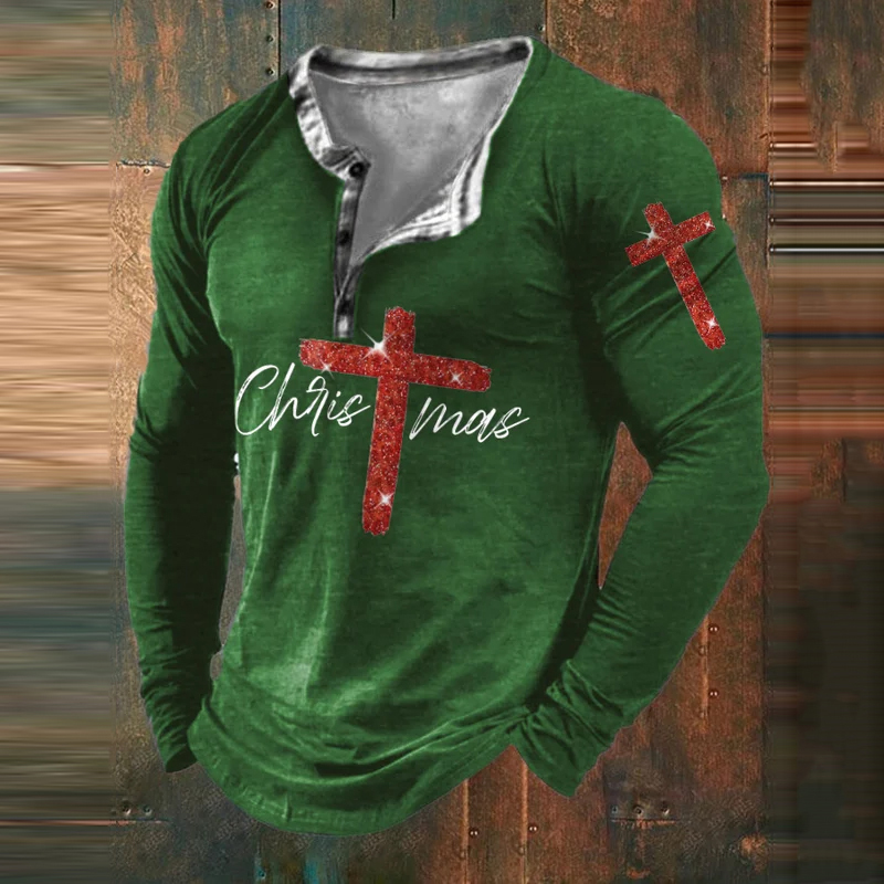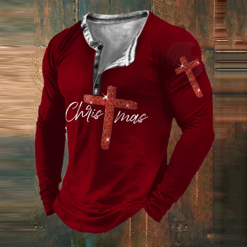 Men's Christmas Cross Art Print Long Sleeve T-Shirt