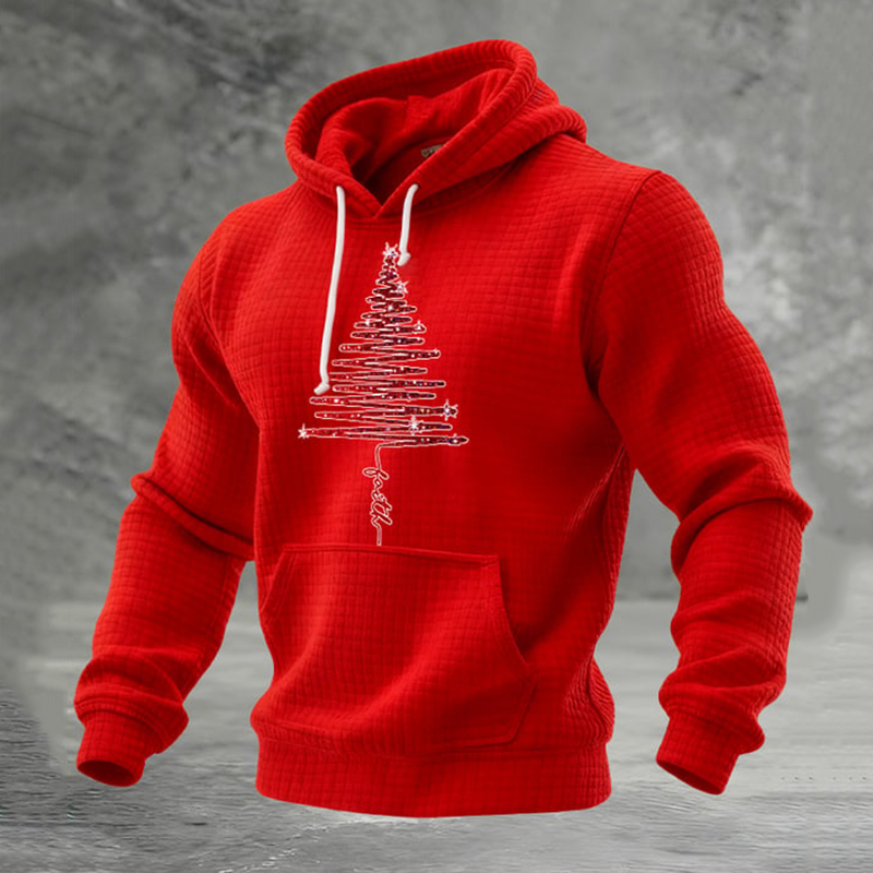 Red Christmas Tree Pattern Warm Men's Hoodie