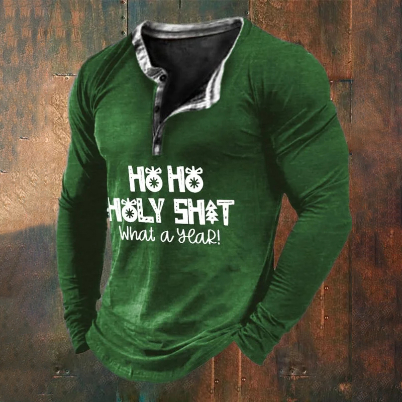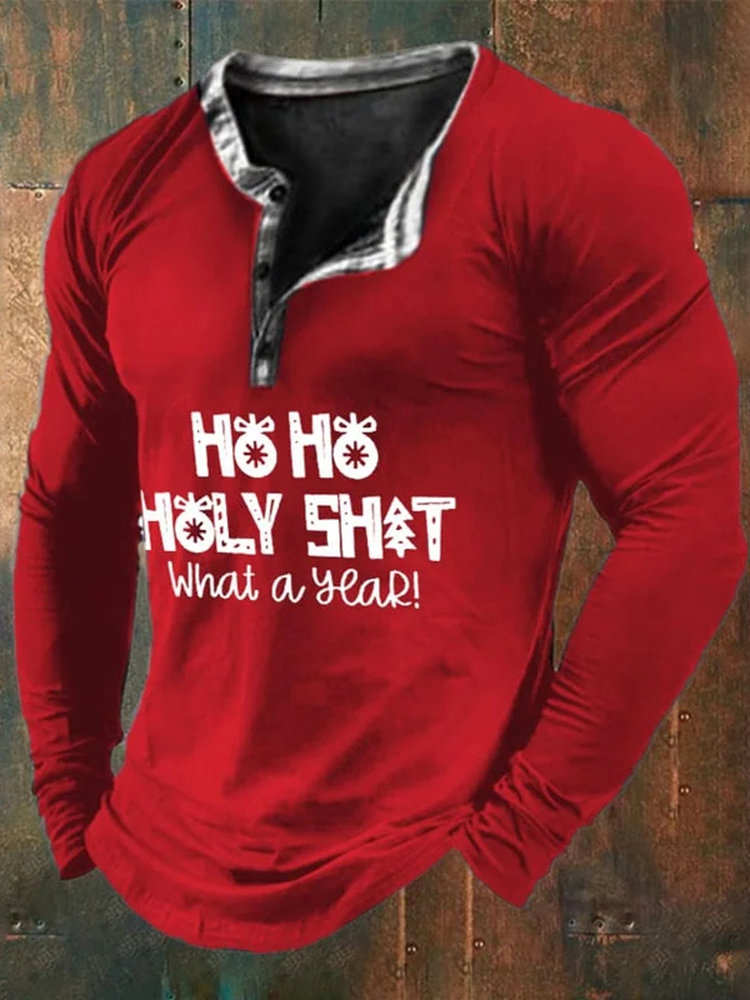 Men's Ho Ho Holy Shirt What A Year Printed Long Sleeve T-Shirt