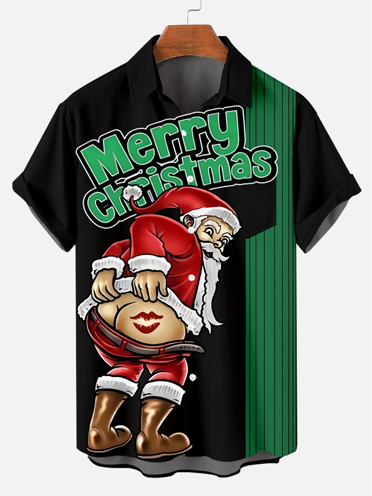 Men's Merry Christmas Kiss Print Shirt