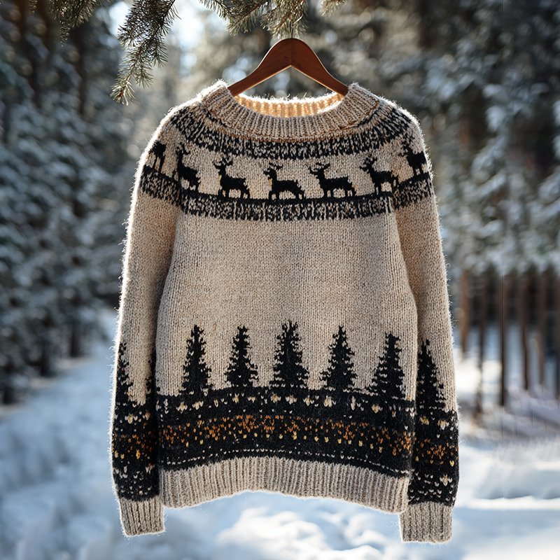 Vintage Christmas Deer Art Icelandic Knit Jacquard Warmthcrew Neck Sweater(unisex)