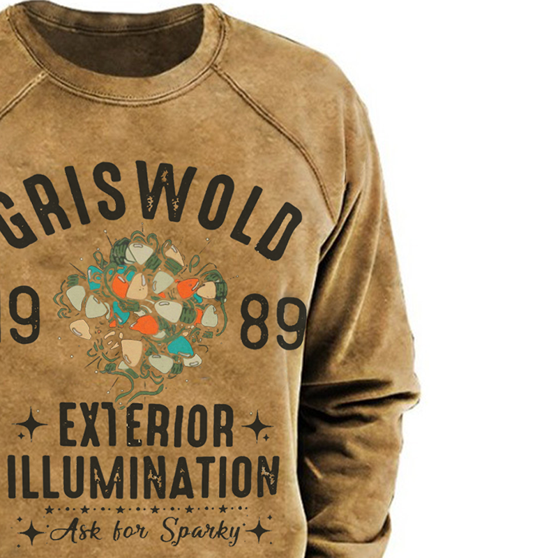 Men's Fun Christmas Lights Color Block Crew Neck Plush Sweatshirt
