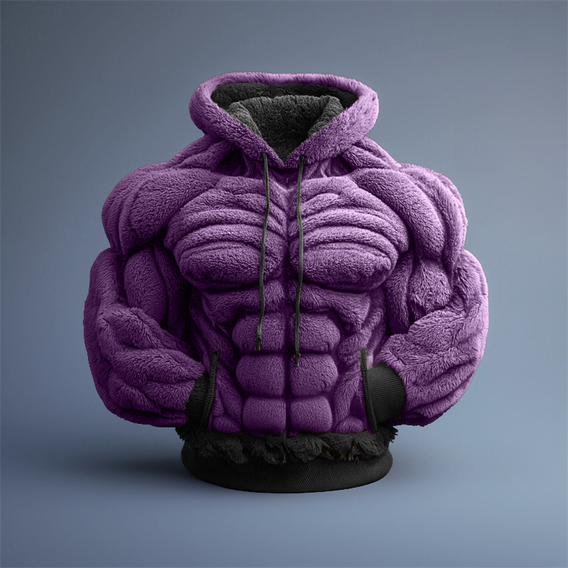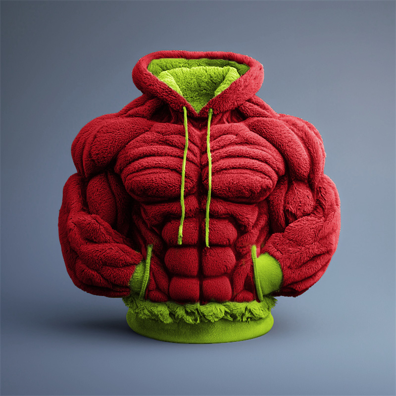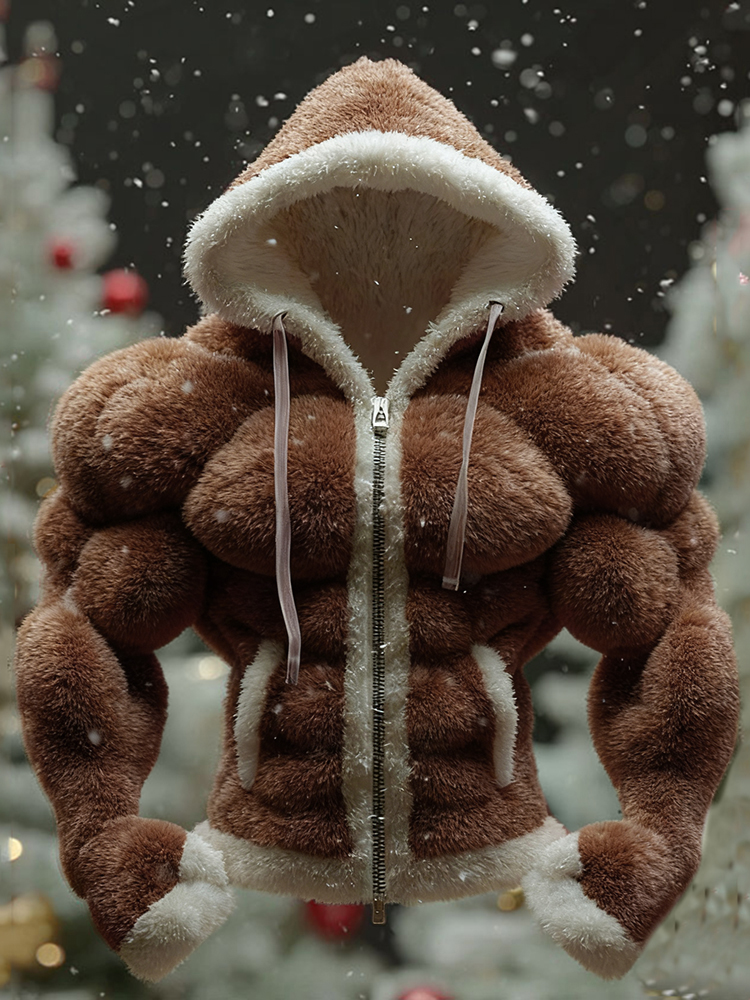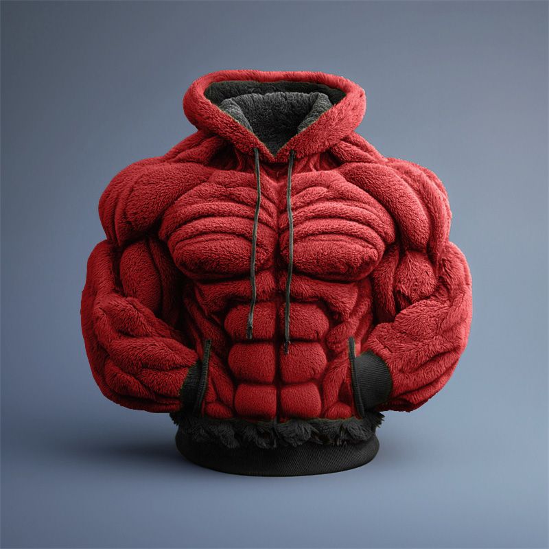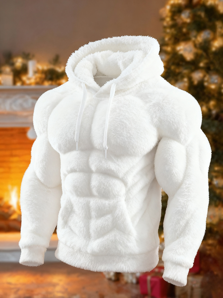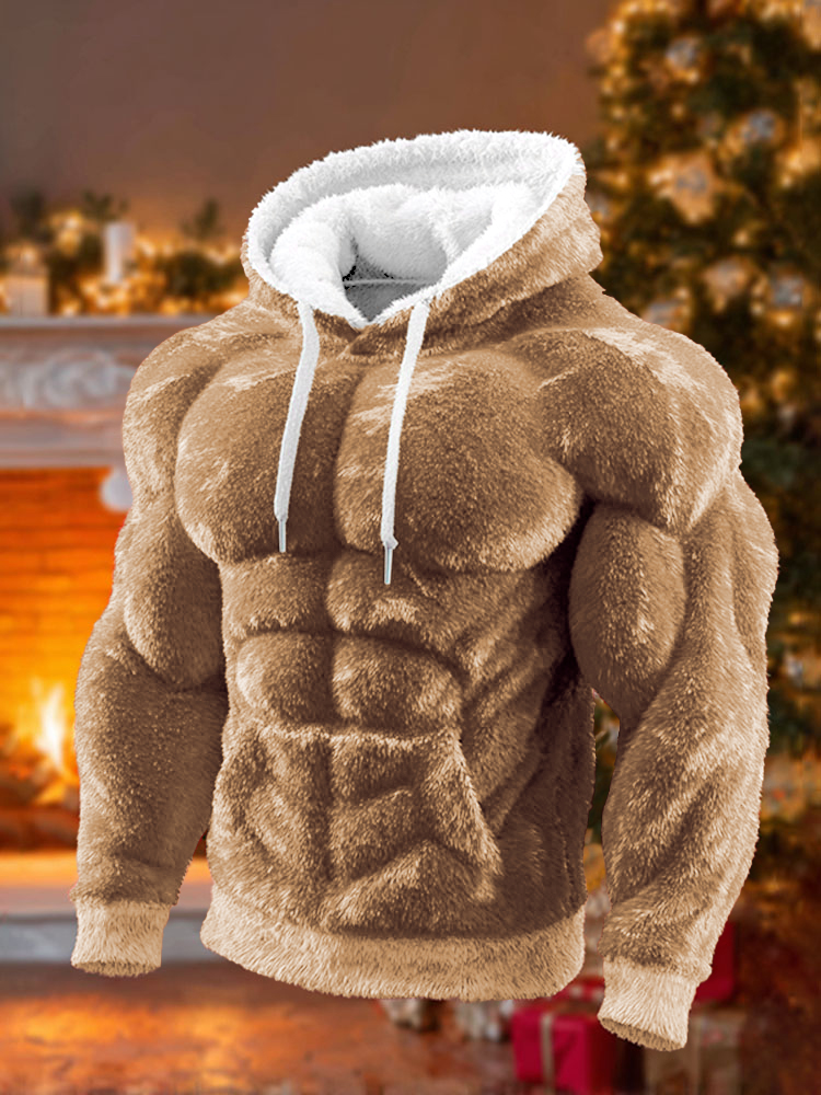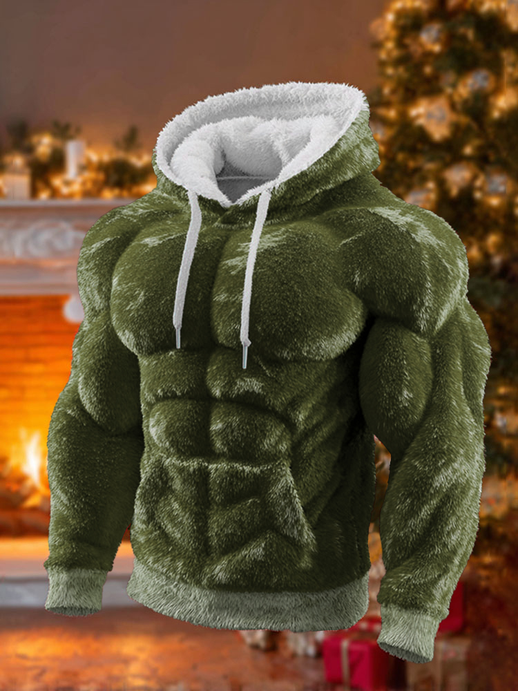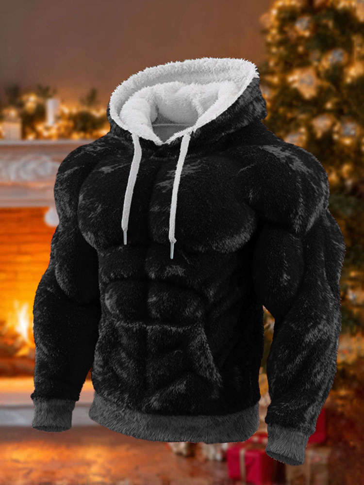Men's Christmas Muscle Art Flannel Warm Hoodie
