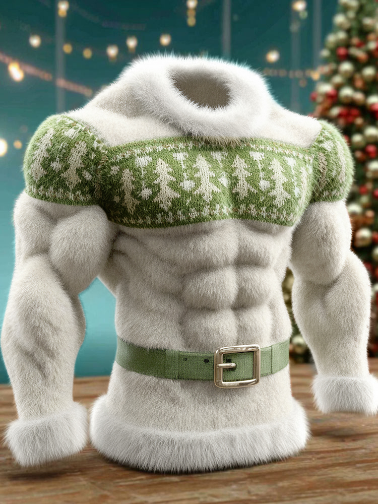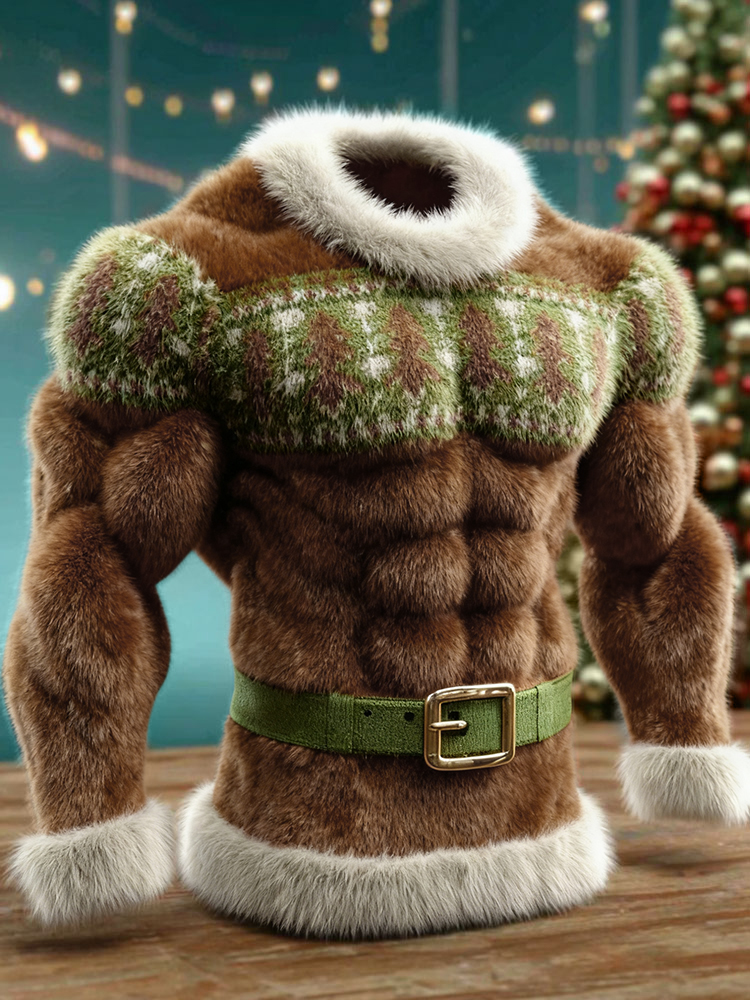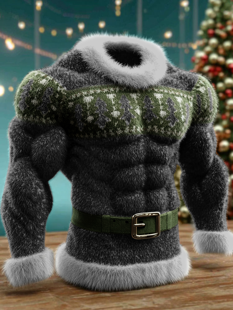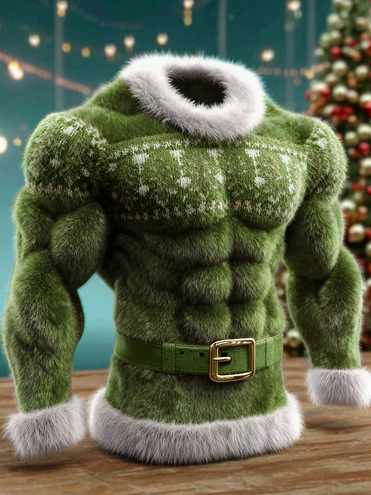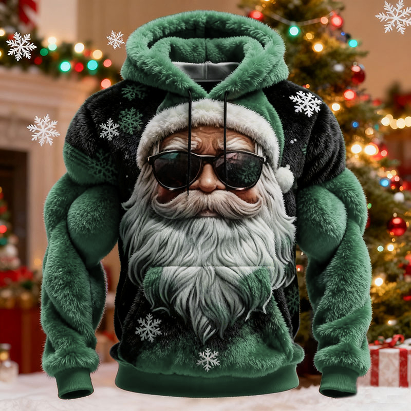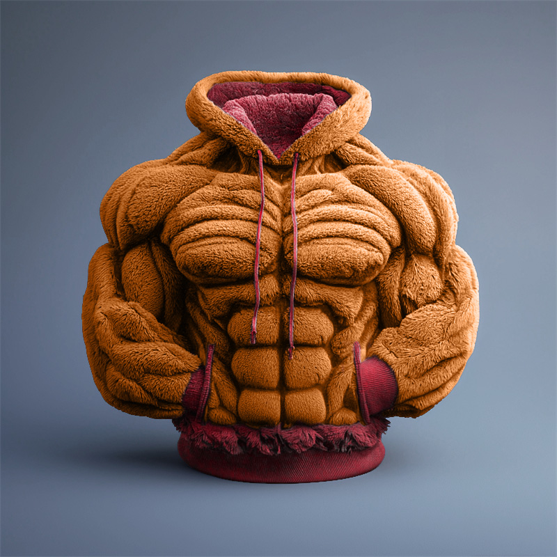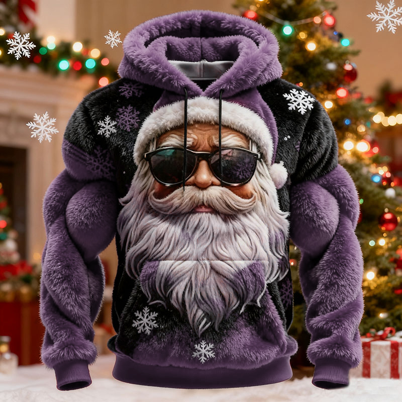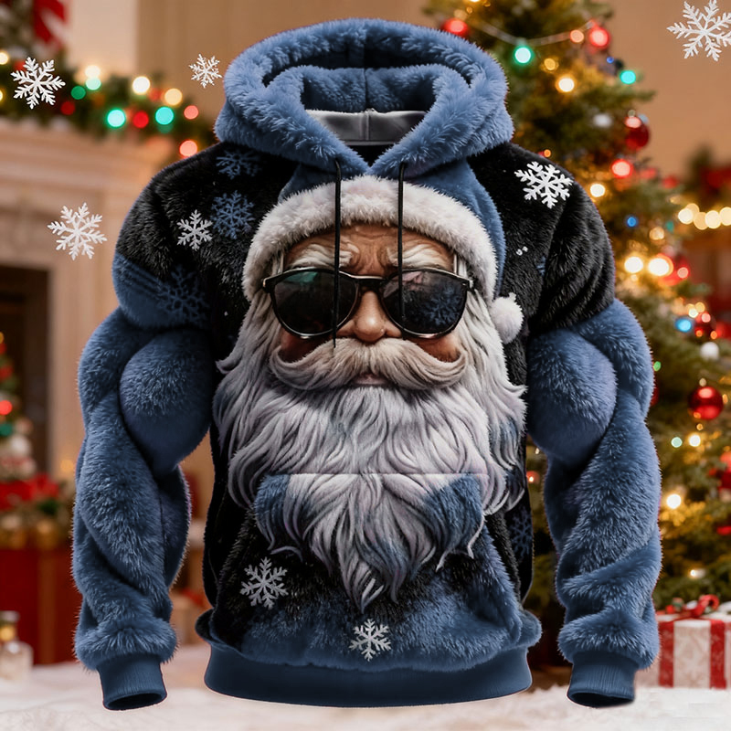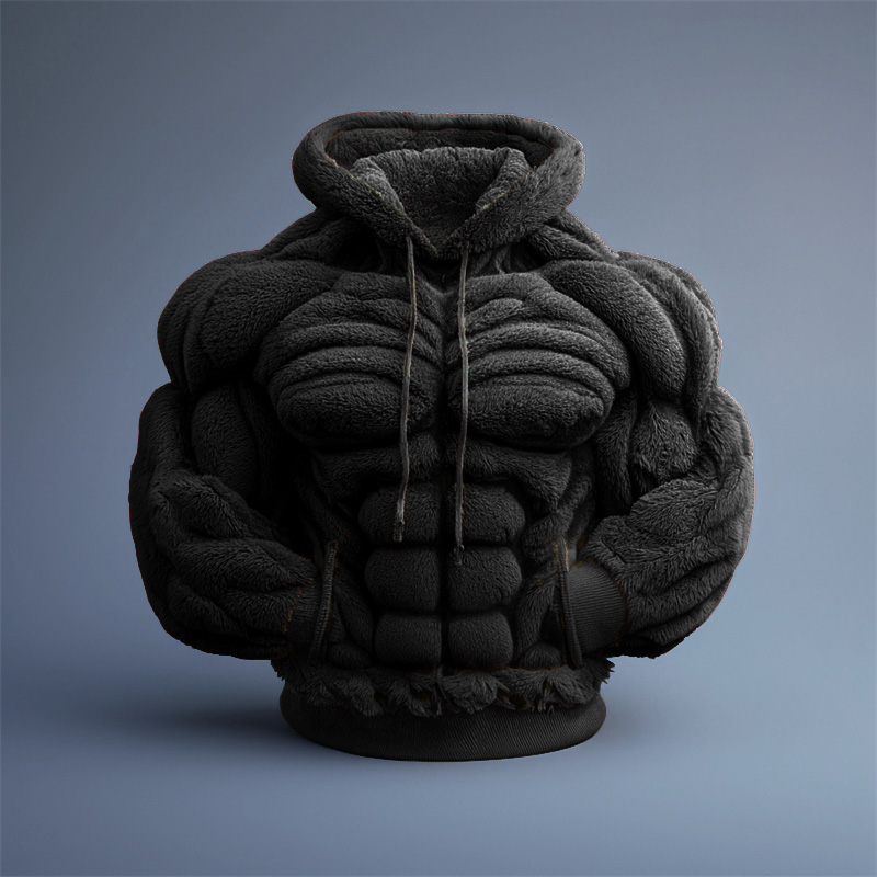 Men's Christmas Muscle Art Flannel Warm Hoodie