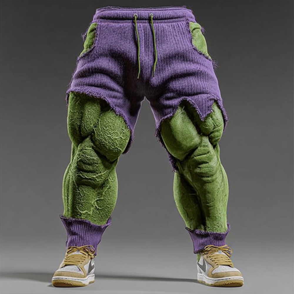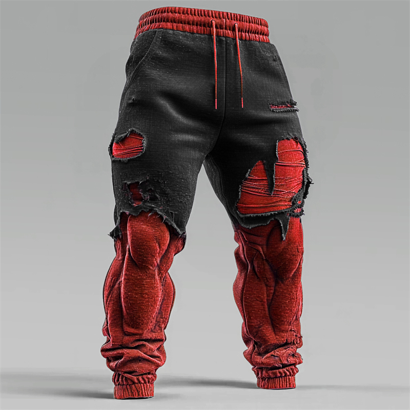 Men's Christmas Season Muscle Line Contrast Distressed Sweatpants