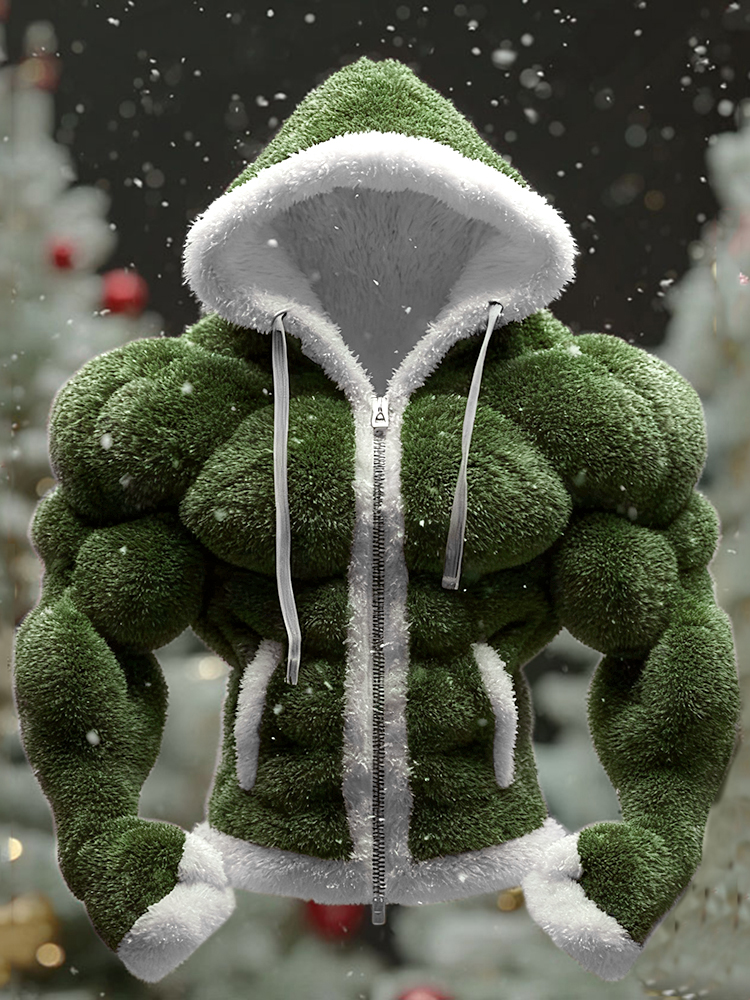 Men's Christmas Green Muscle Line Cozy Plush Full Zip Hoodie