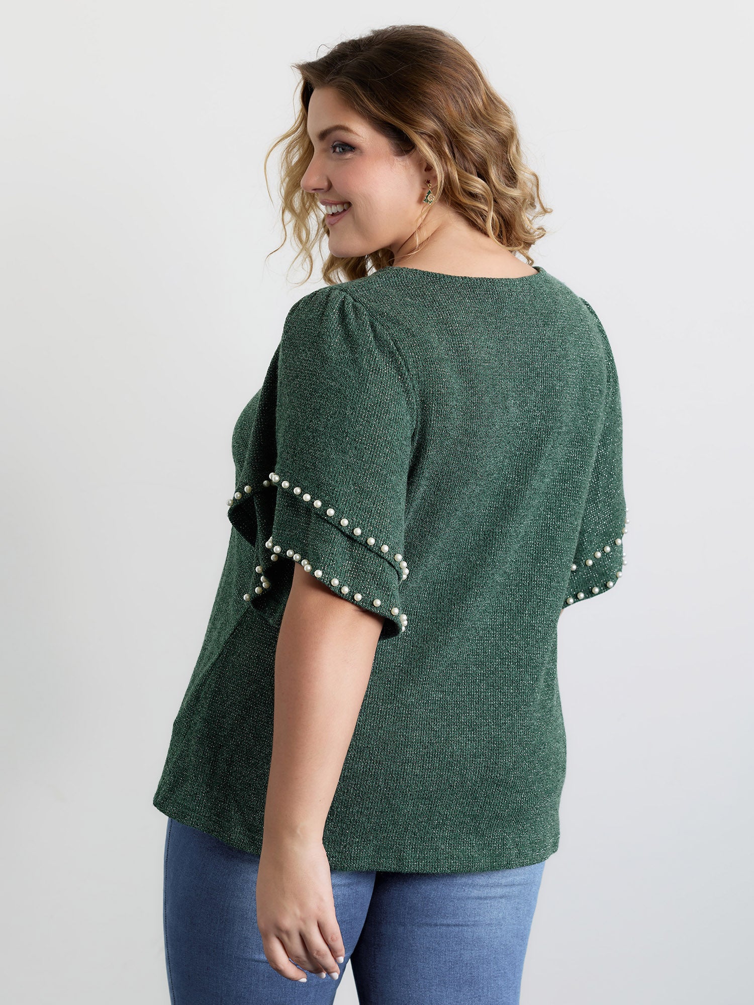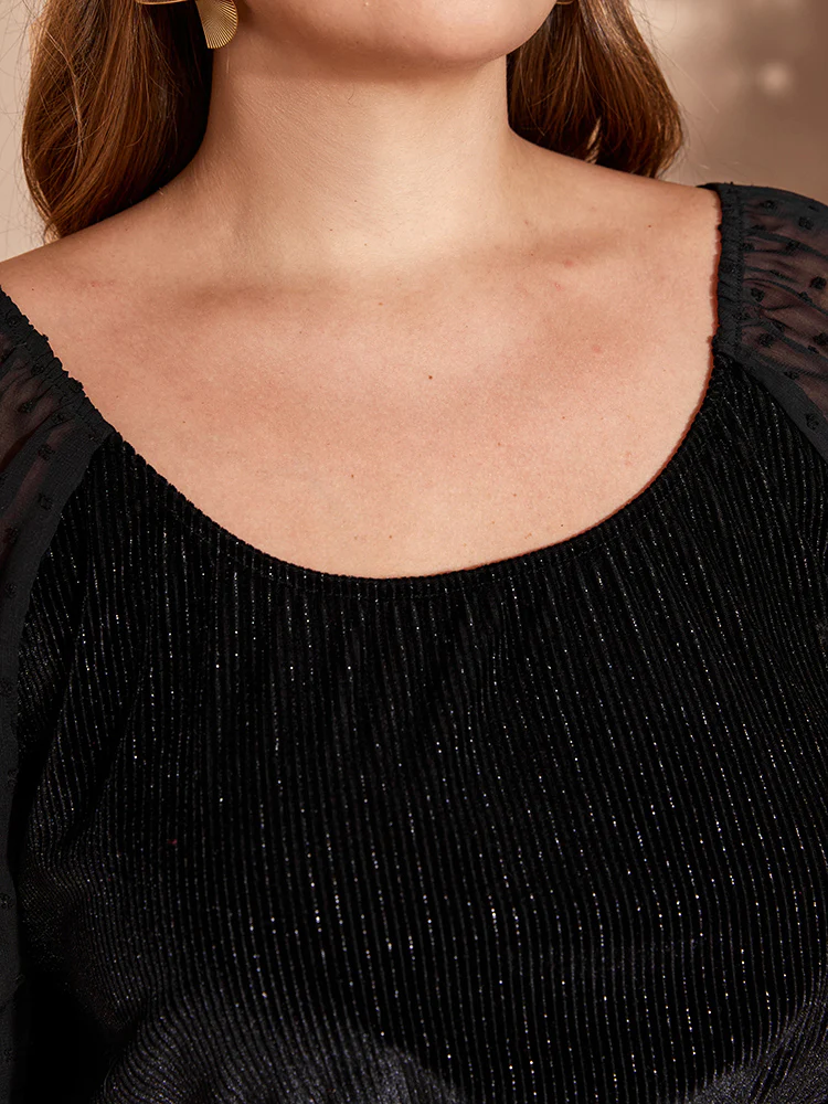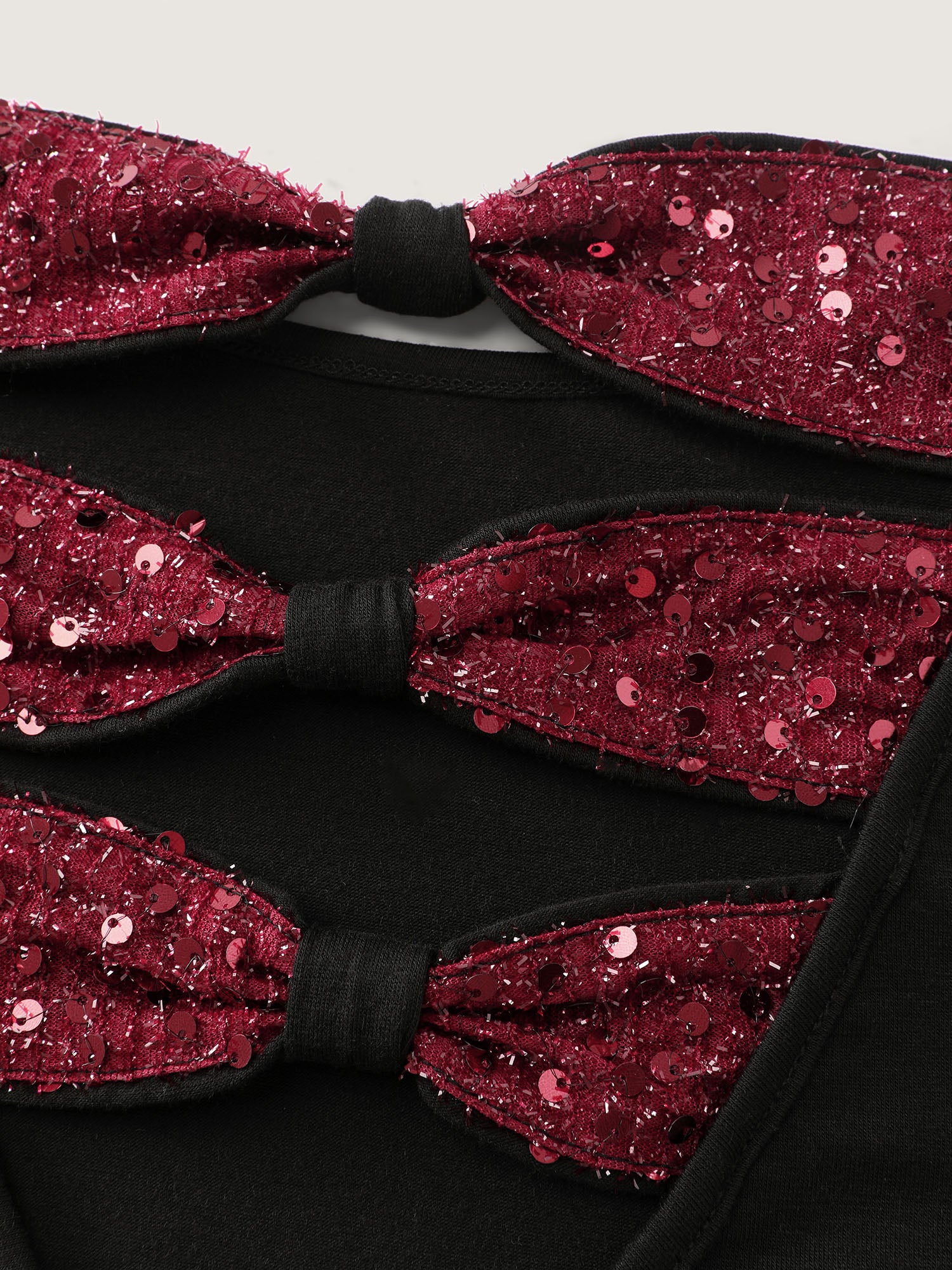 Stretchy Sequin Backless Shirred Cuff T-Shirt