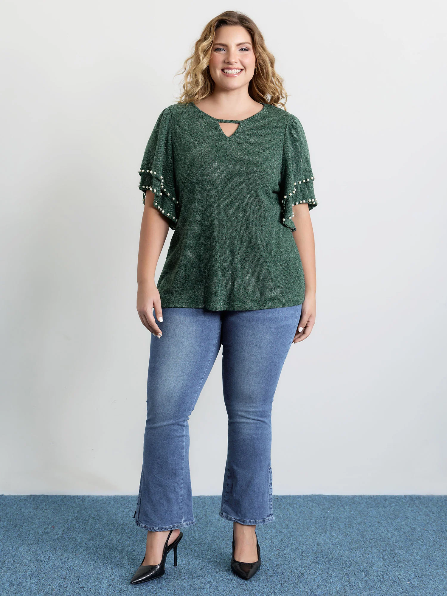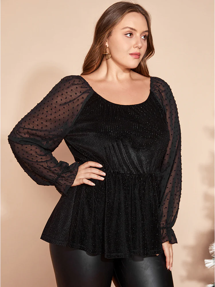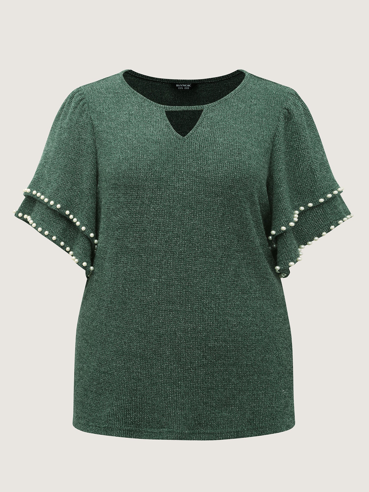 Stretchy Sequin Backless Shirred Cuff T-Shirt