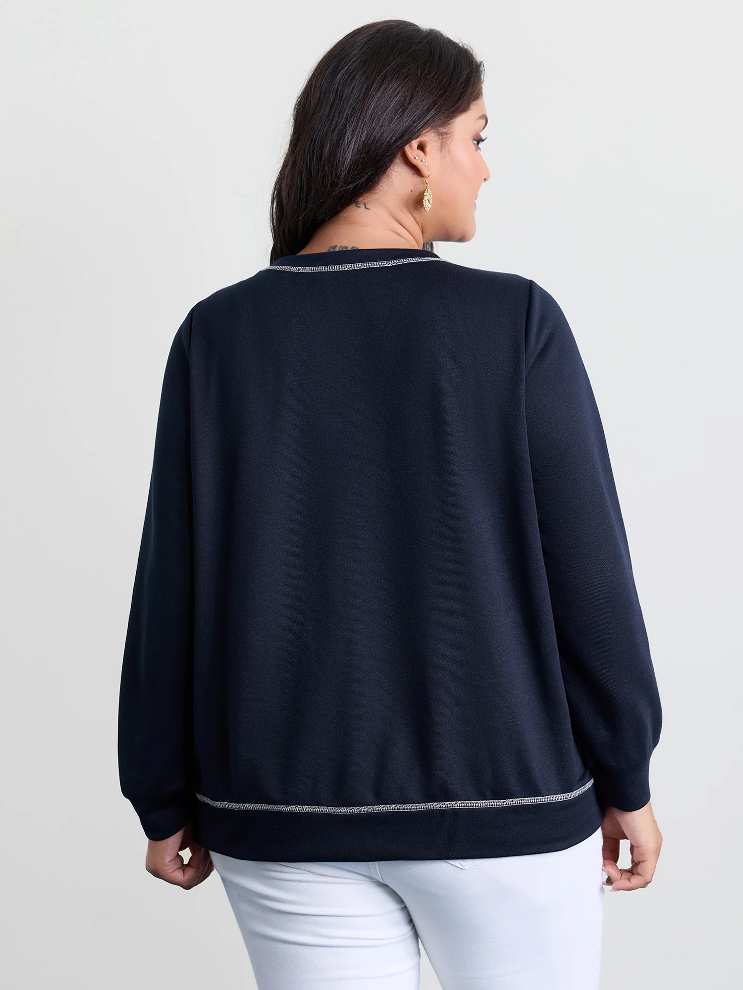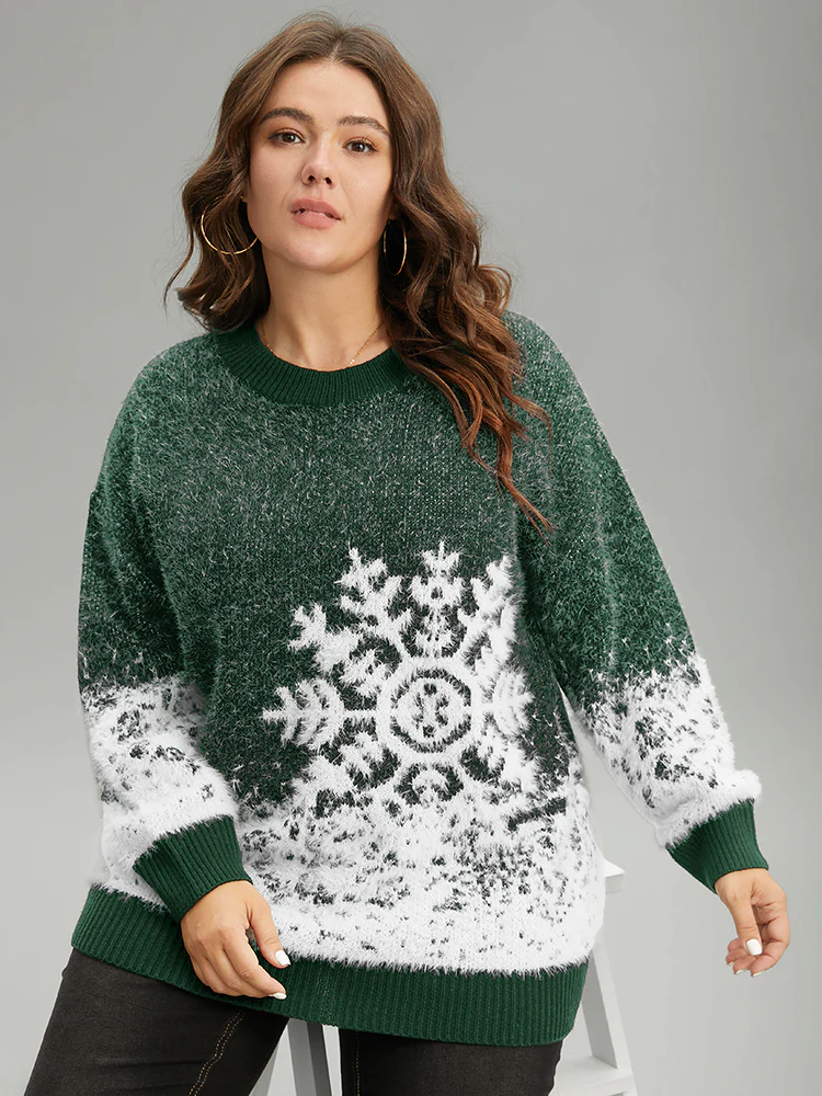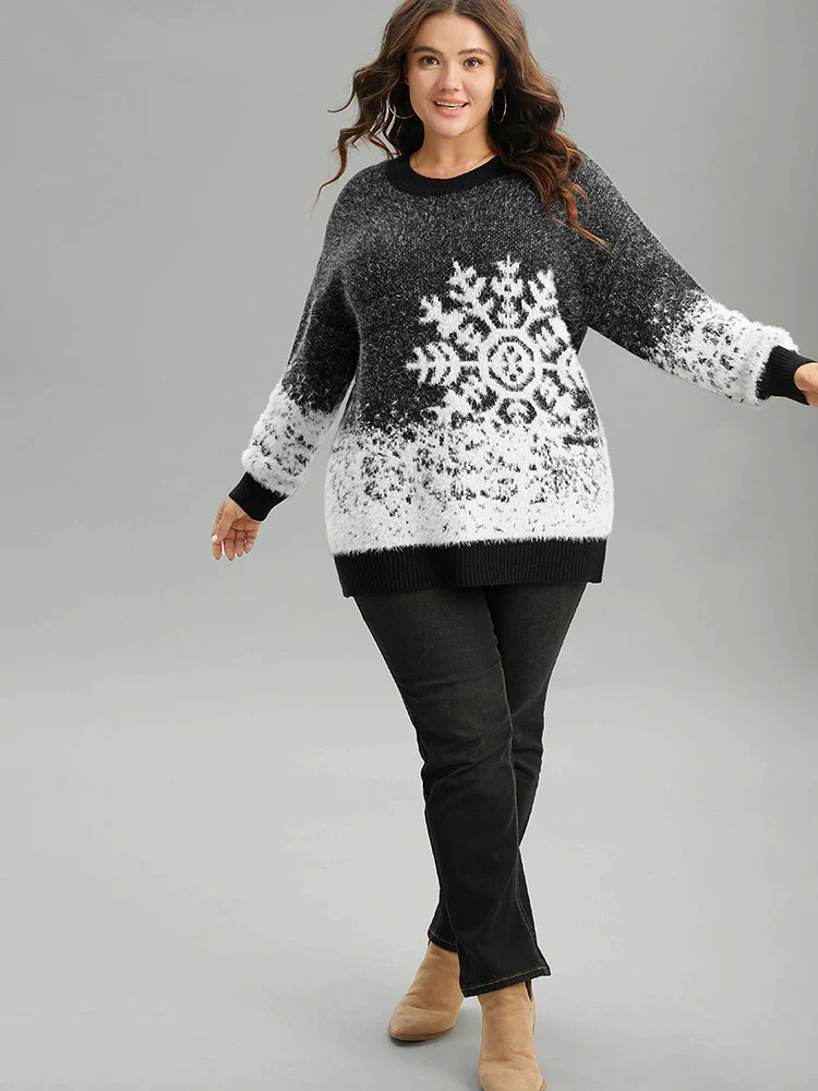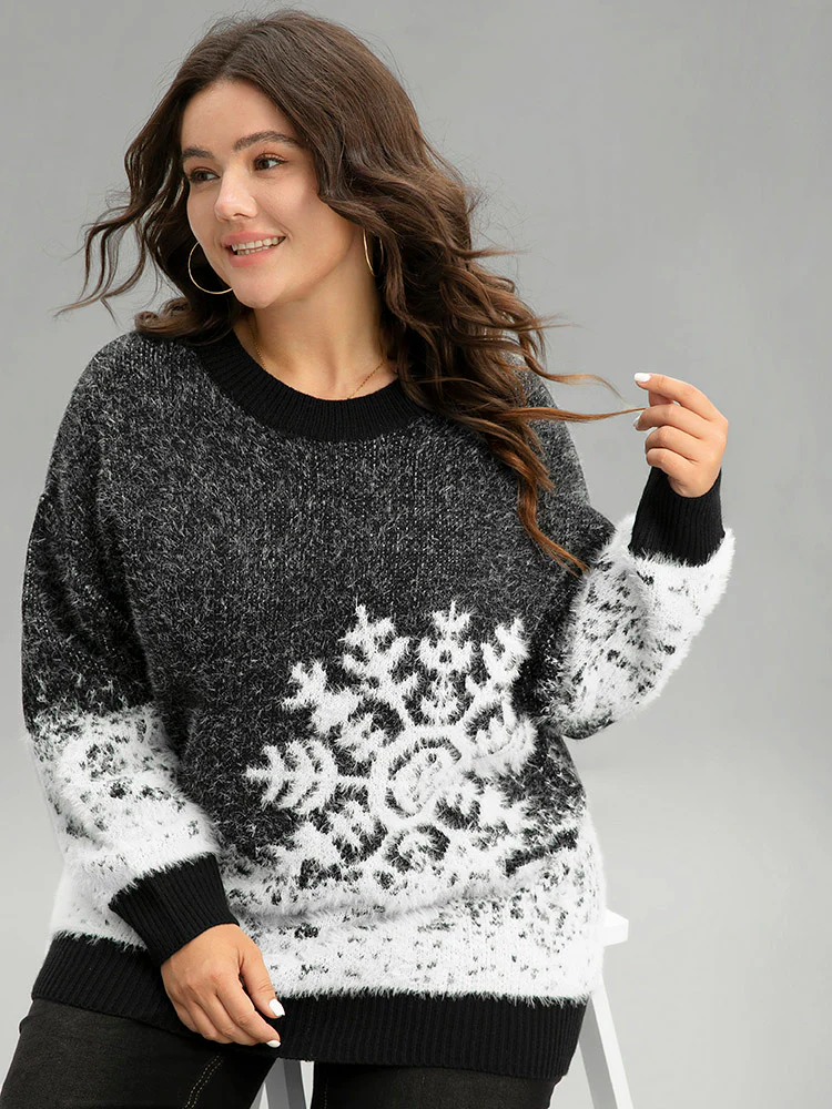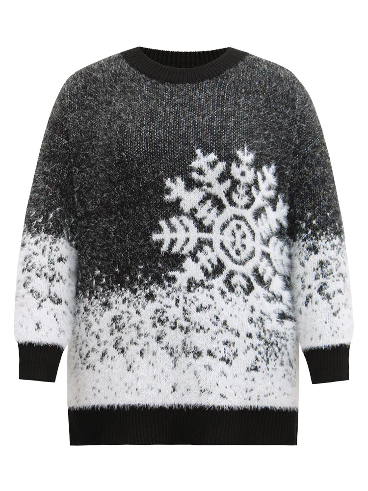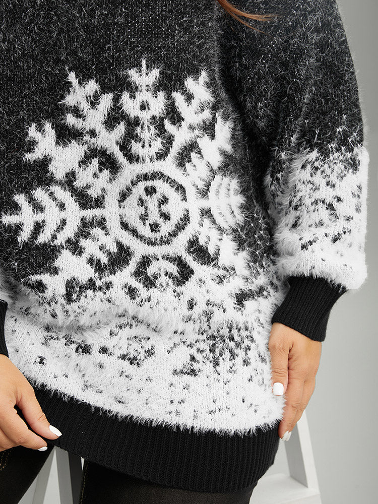 Fuzzy Snowflake Elastic Cuffs Pullover