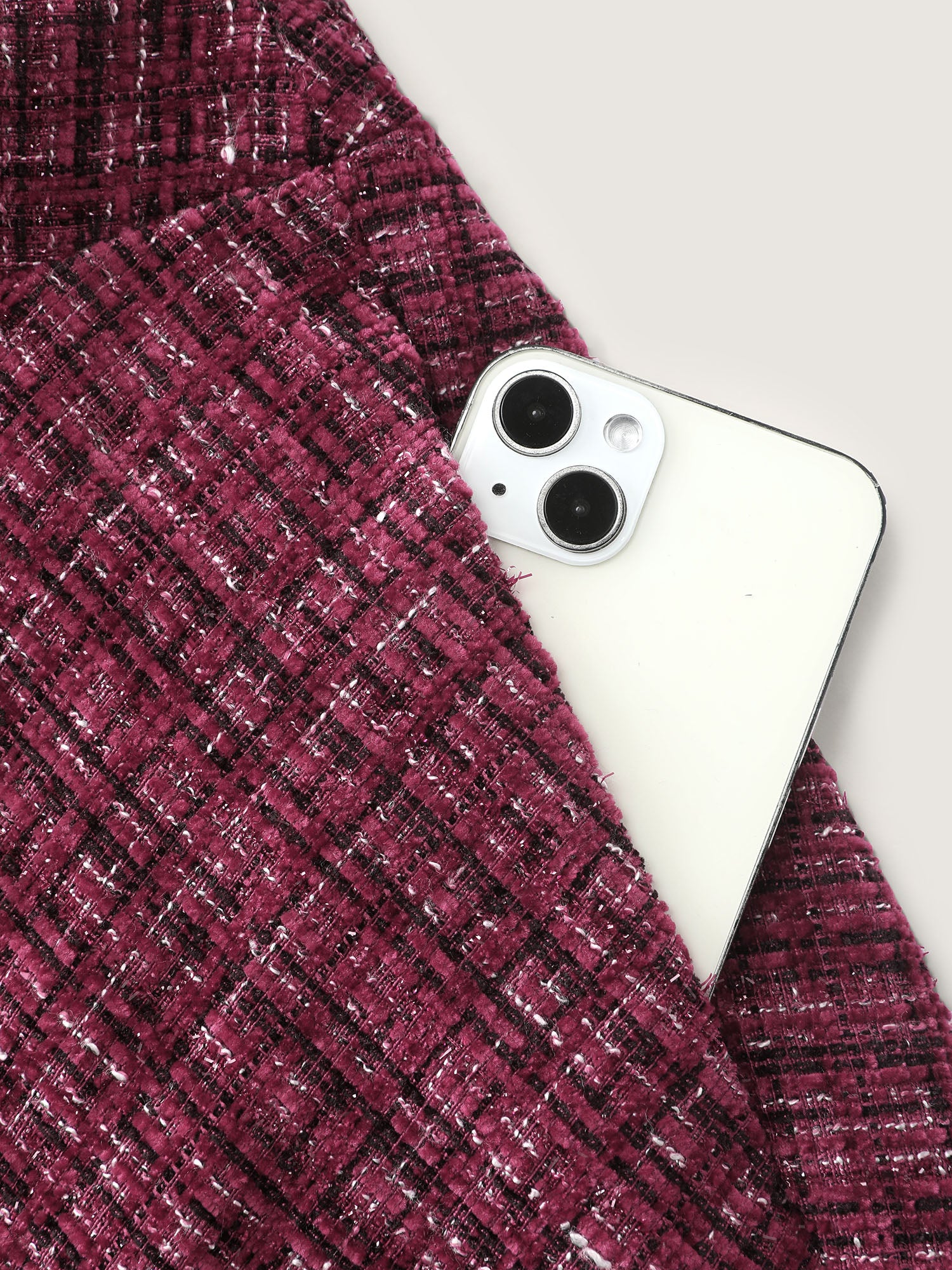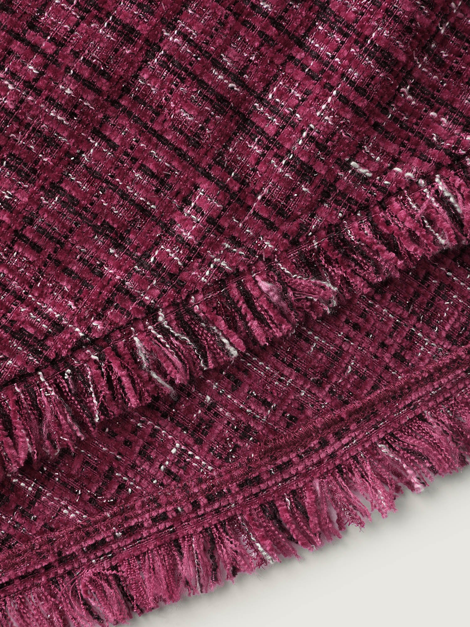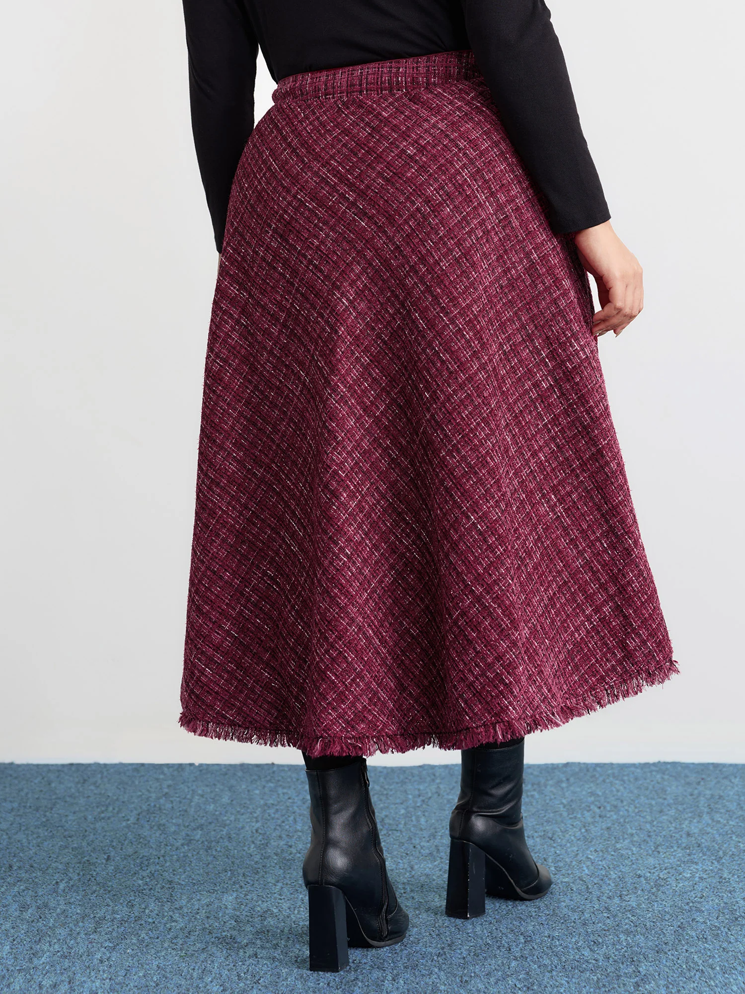 Tweed Stretchy Waist Color Contrast Midi Dress