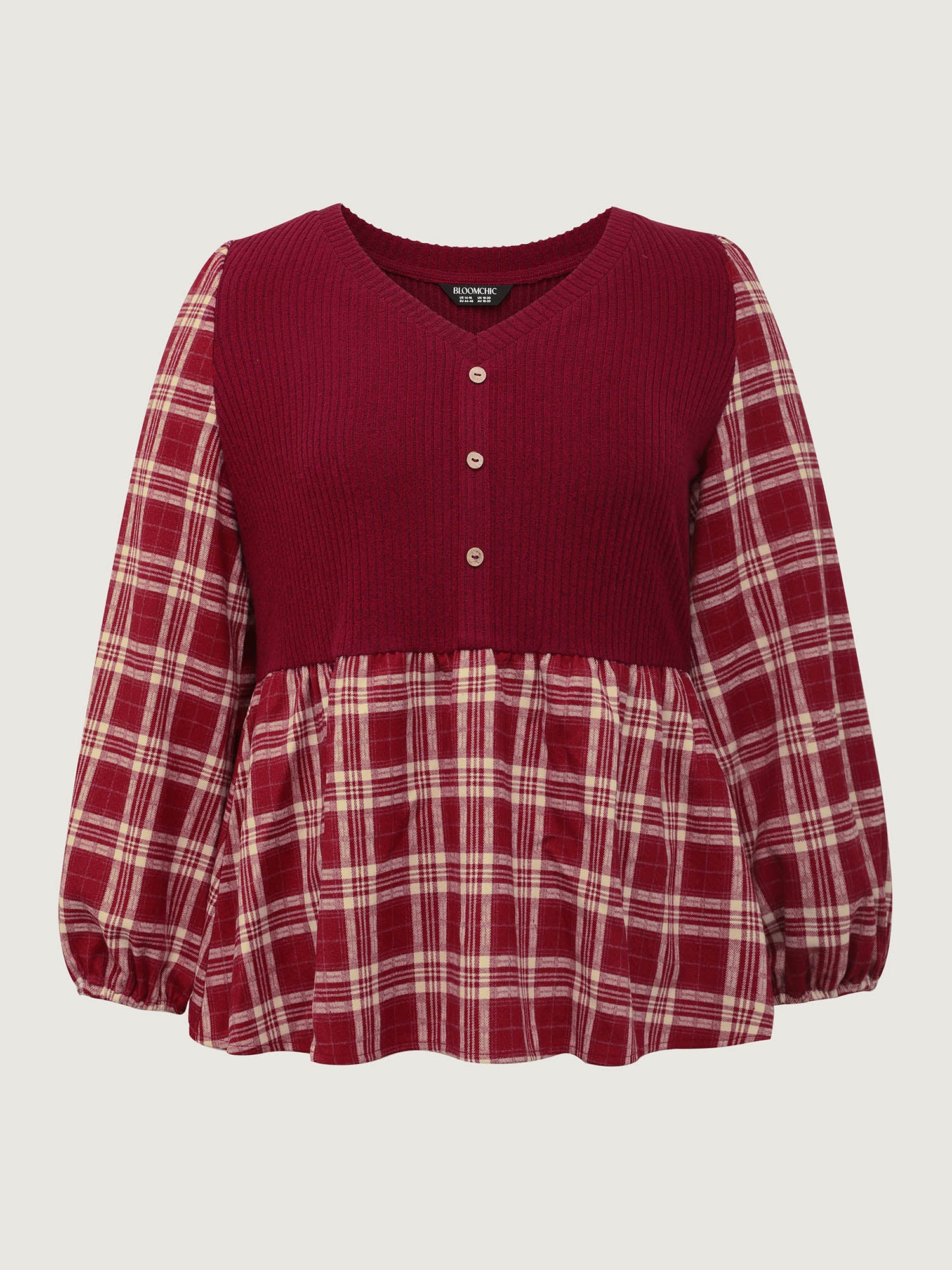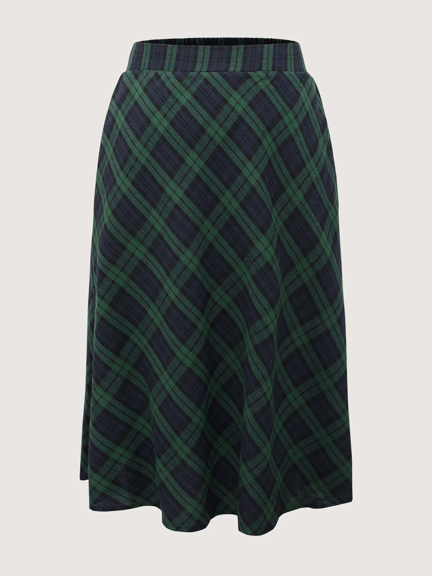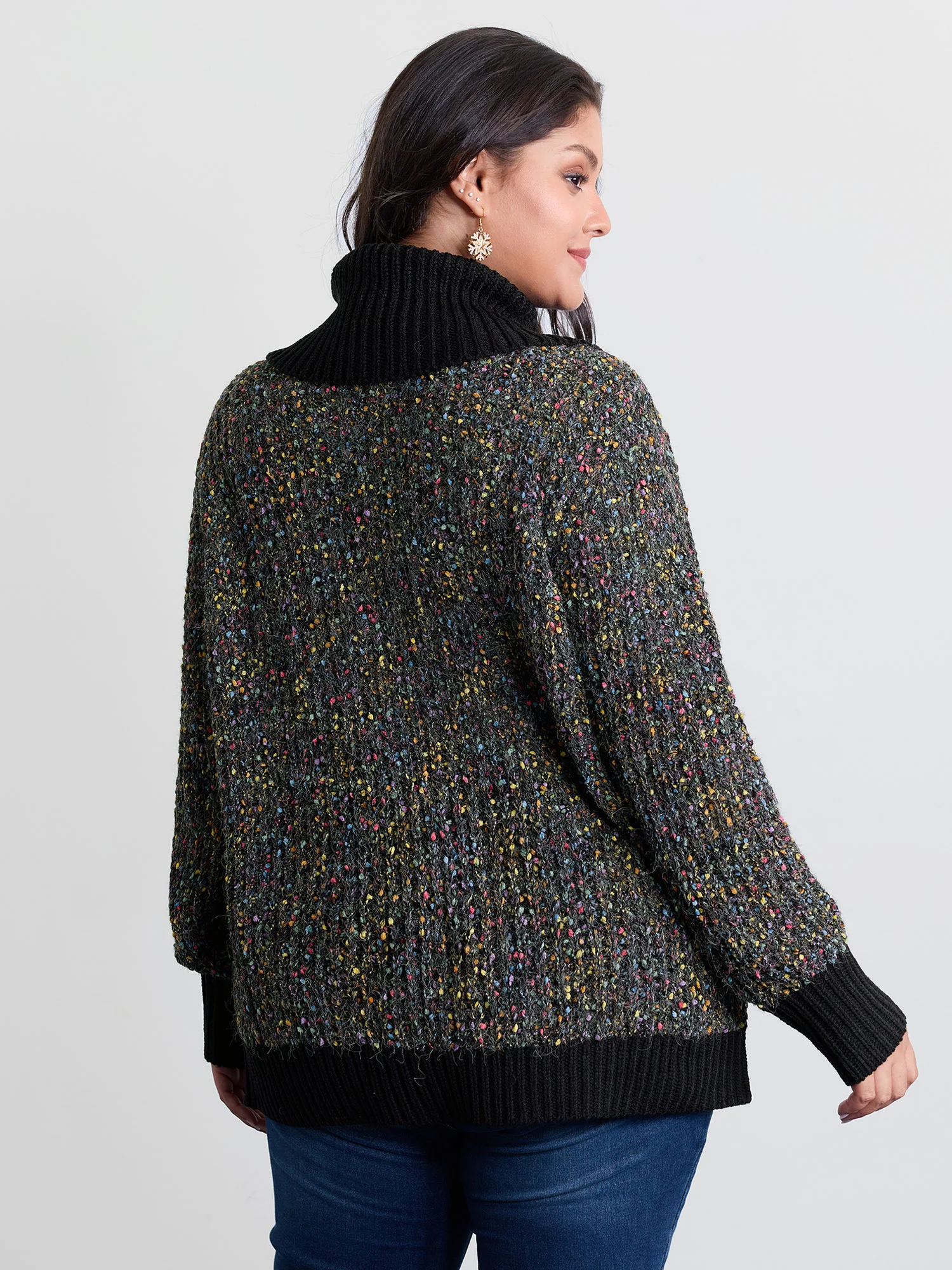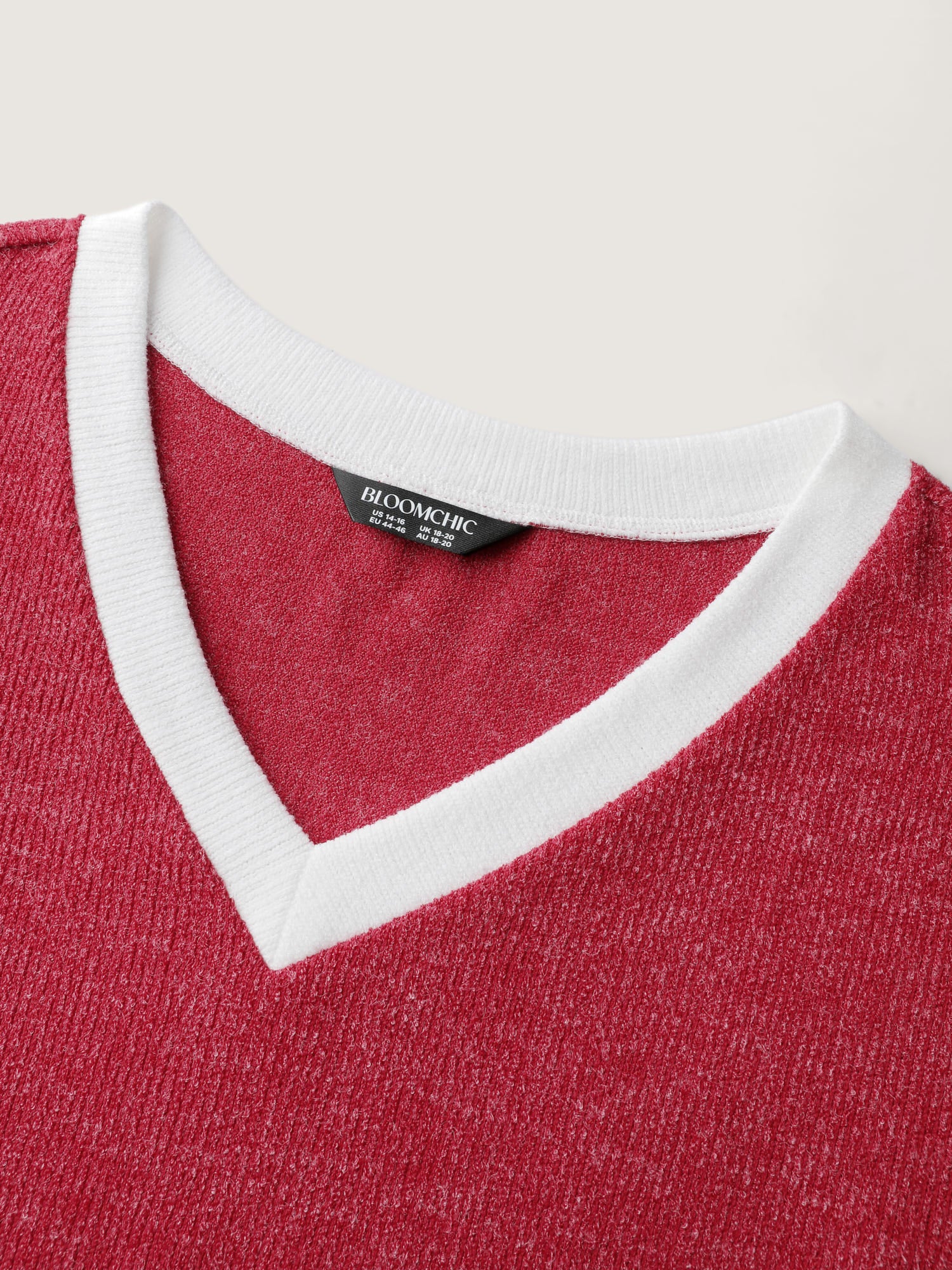 Tweed Stretchy Waist Color Contrast Midi Dress