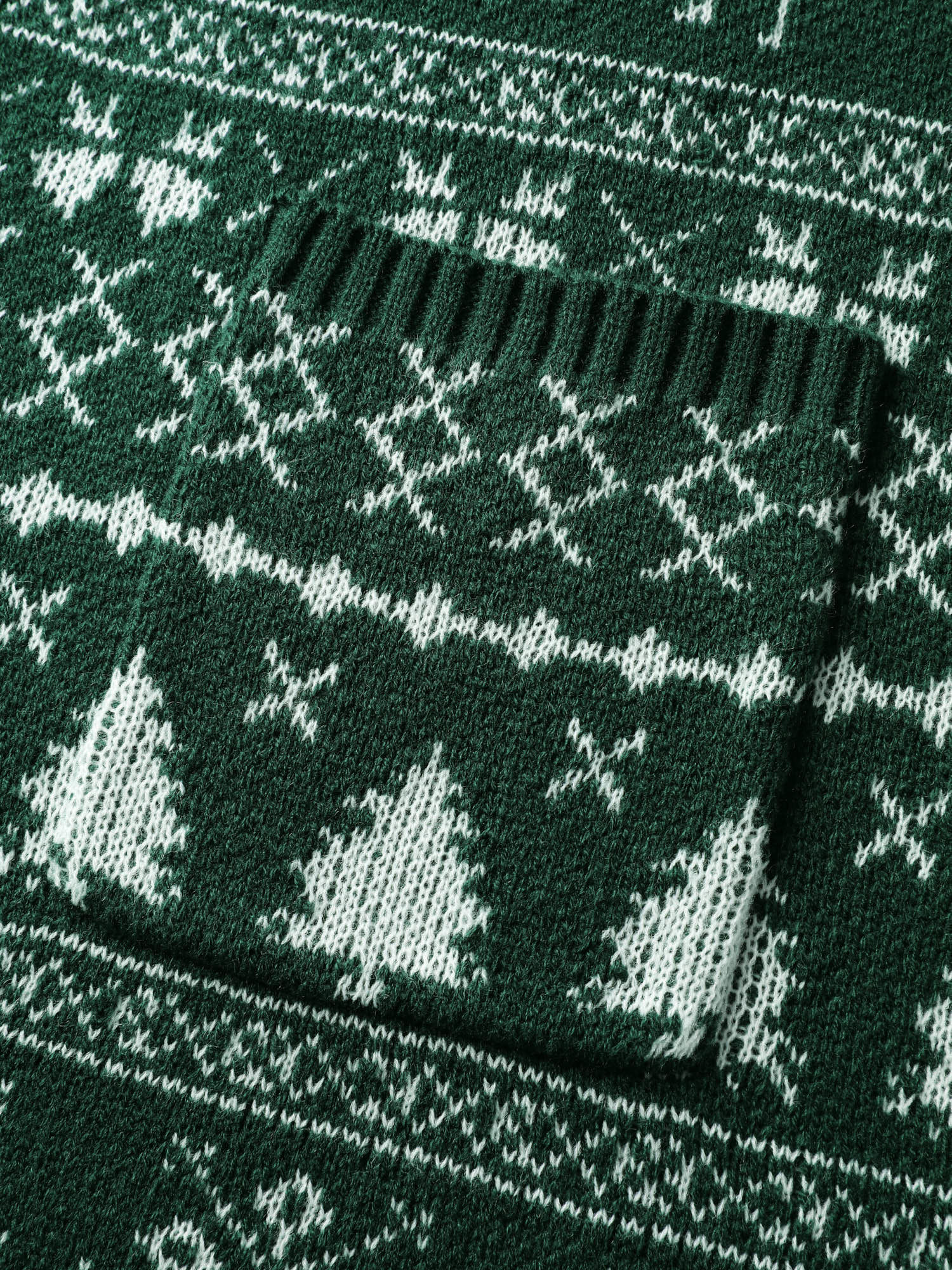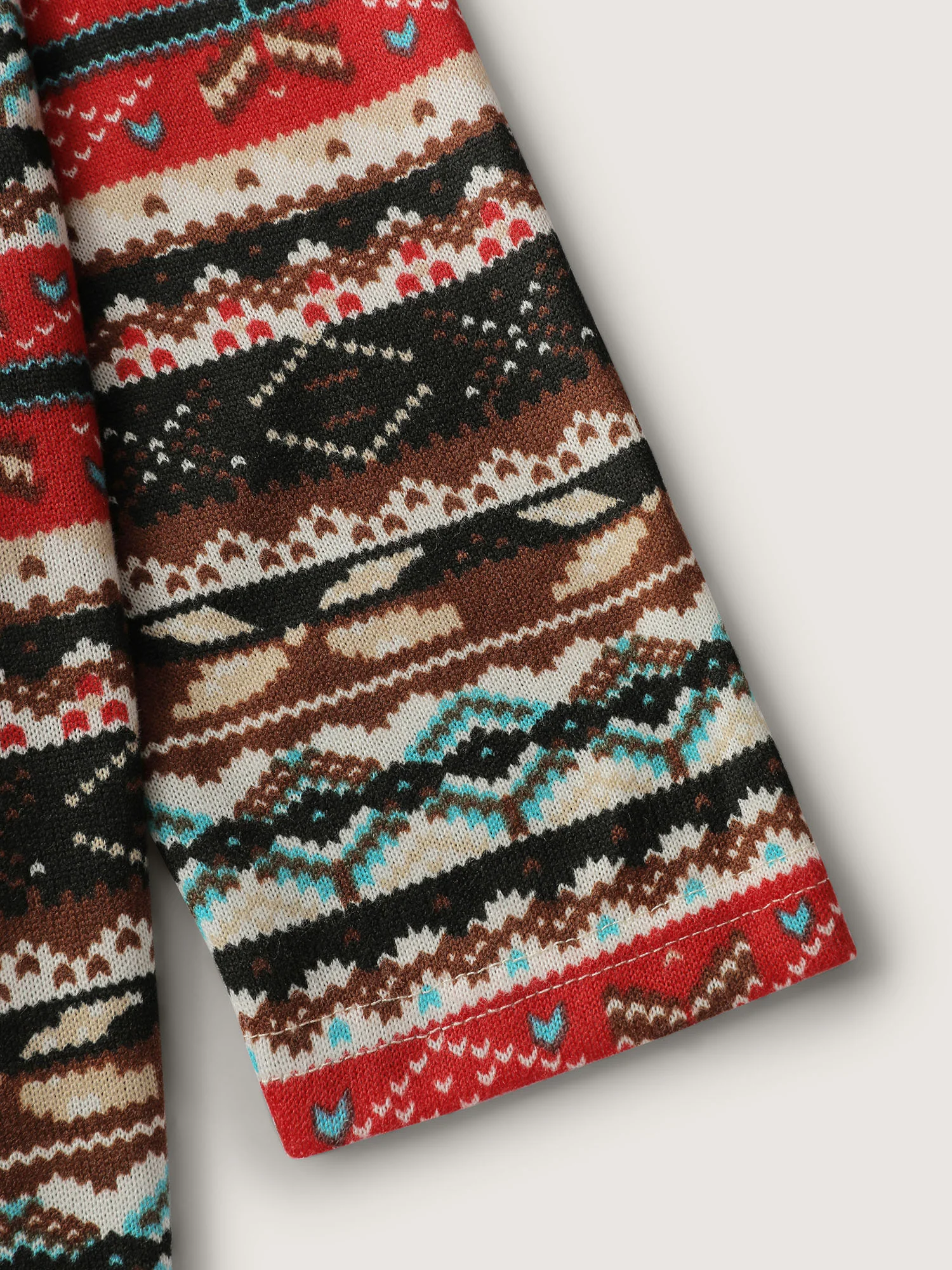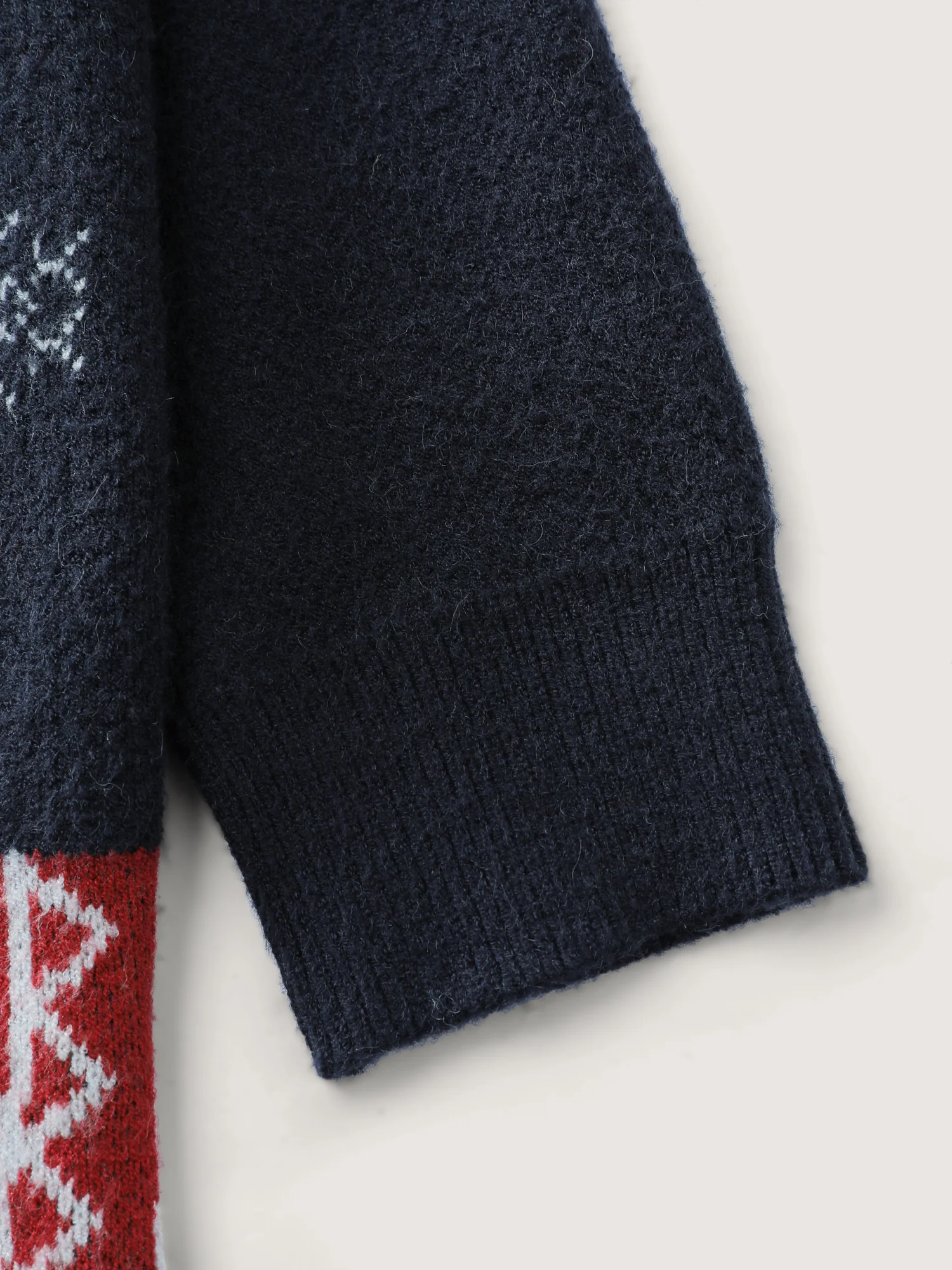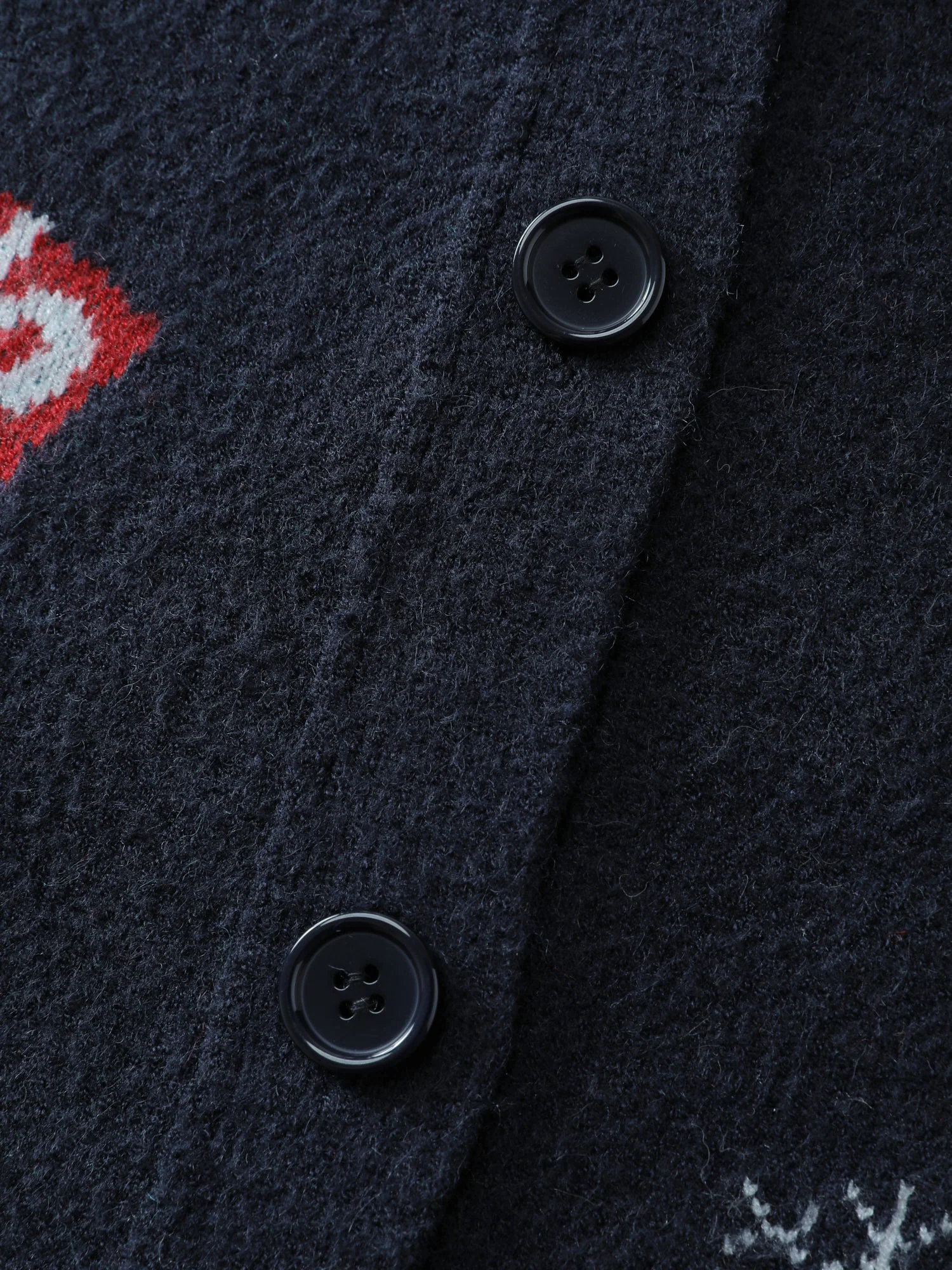 Elk Christmas Print Jacquard Open-Front Knit Cardigan