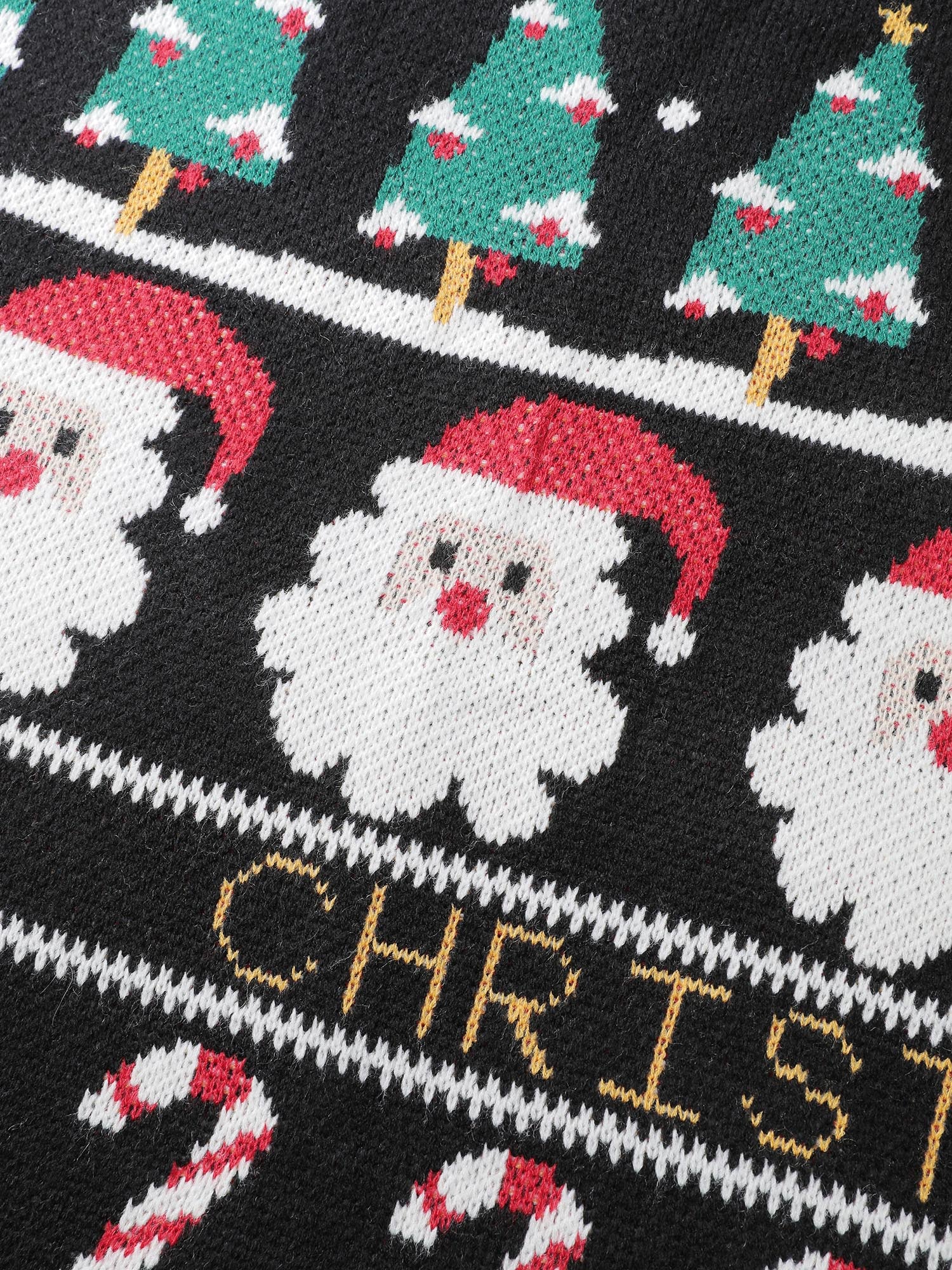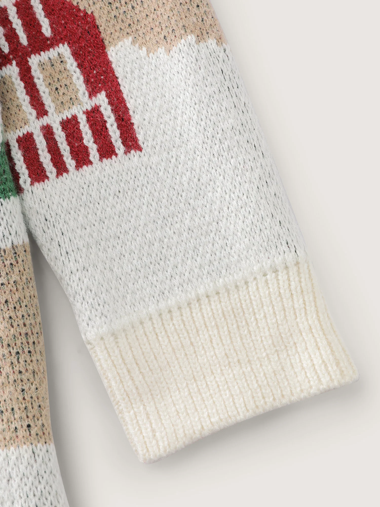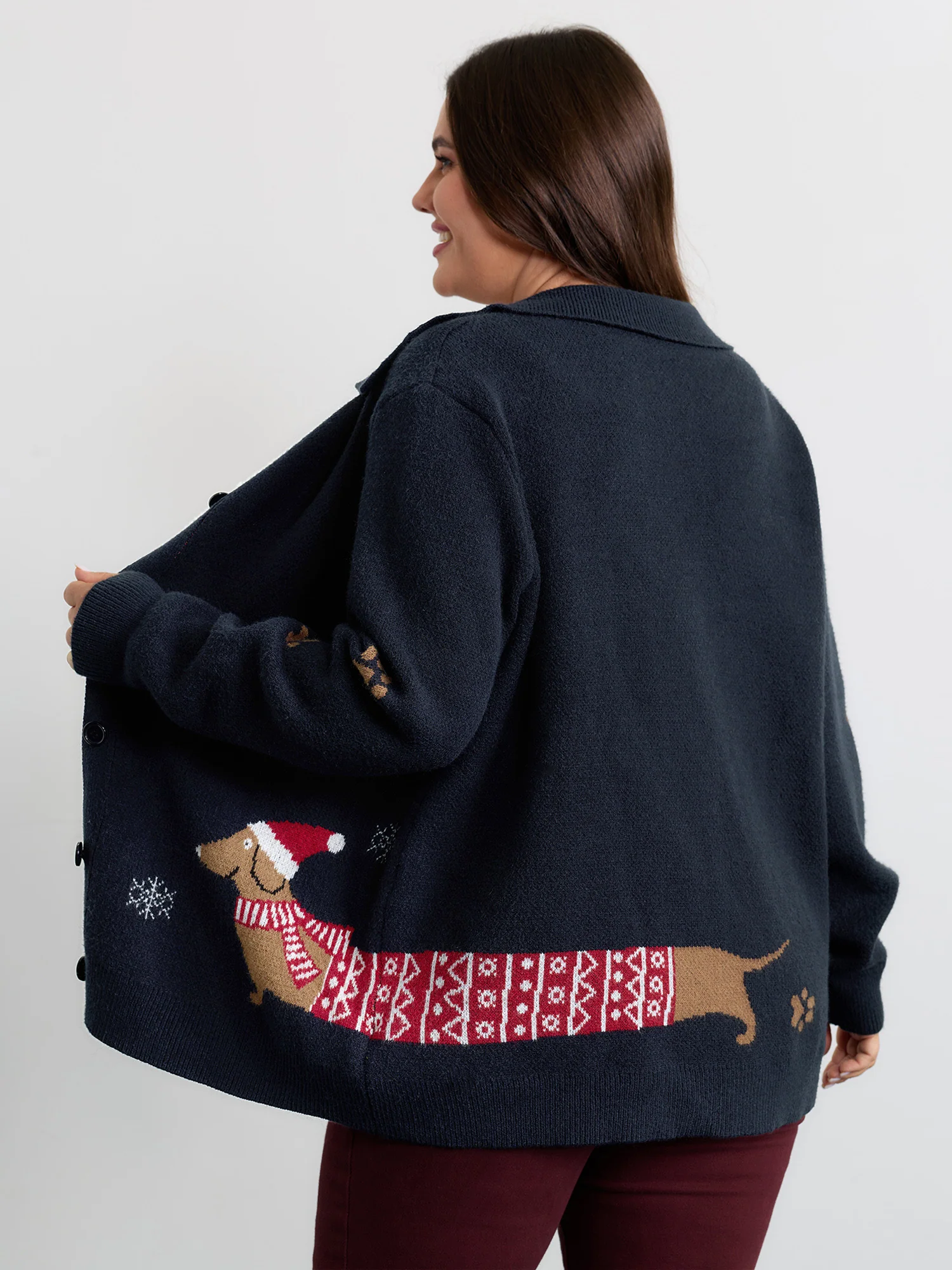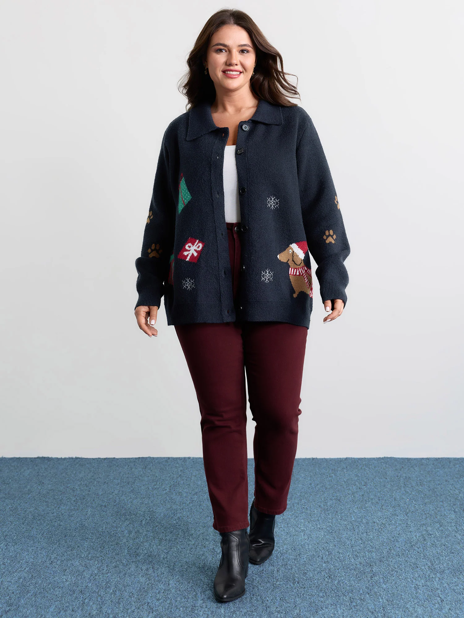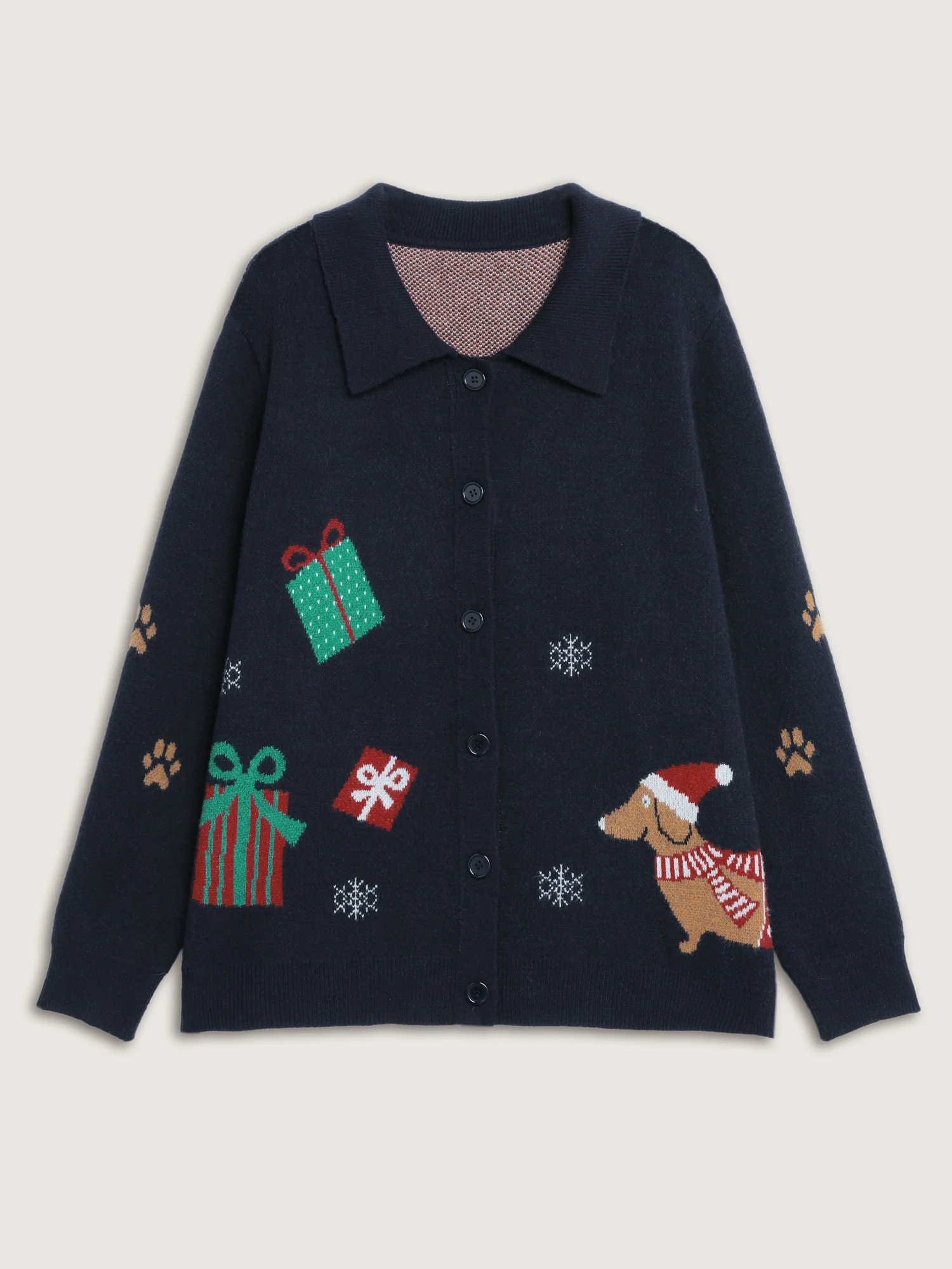Elk Christmas Print Jacquard Open-Front Knit Cardigan