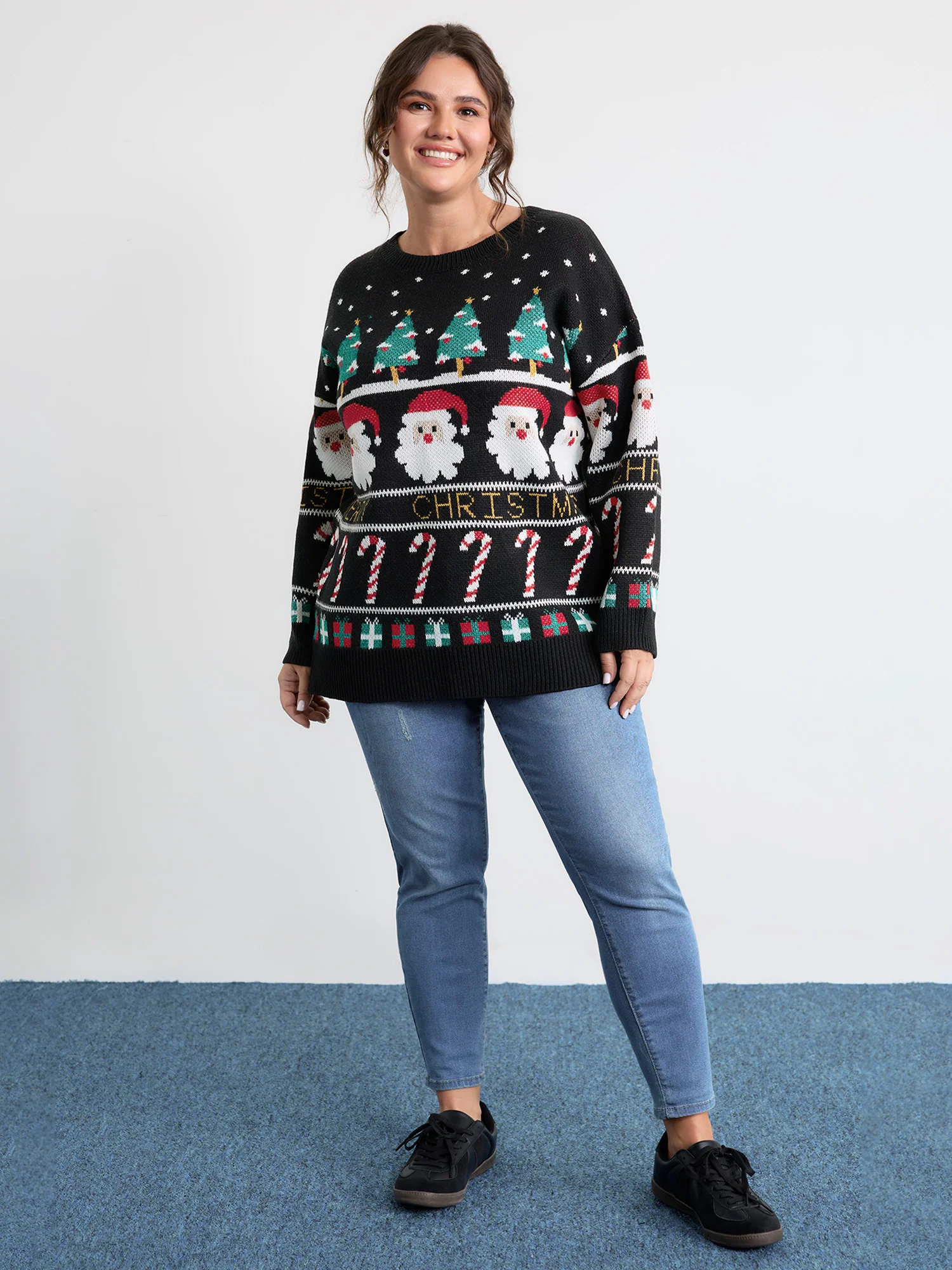 Supersoft Holiday Pattern Drop Shoulder Pullover