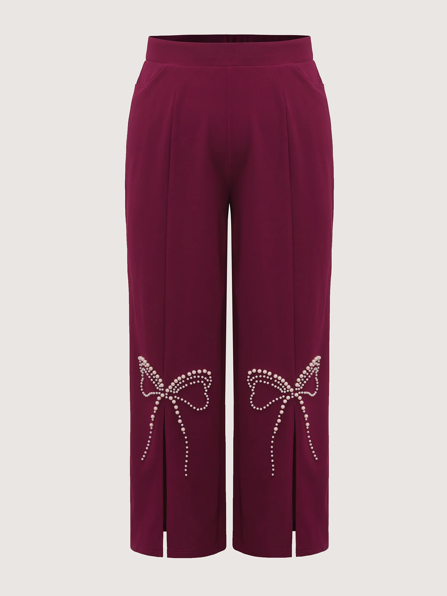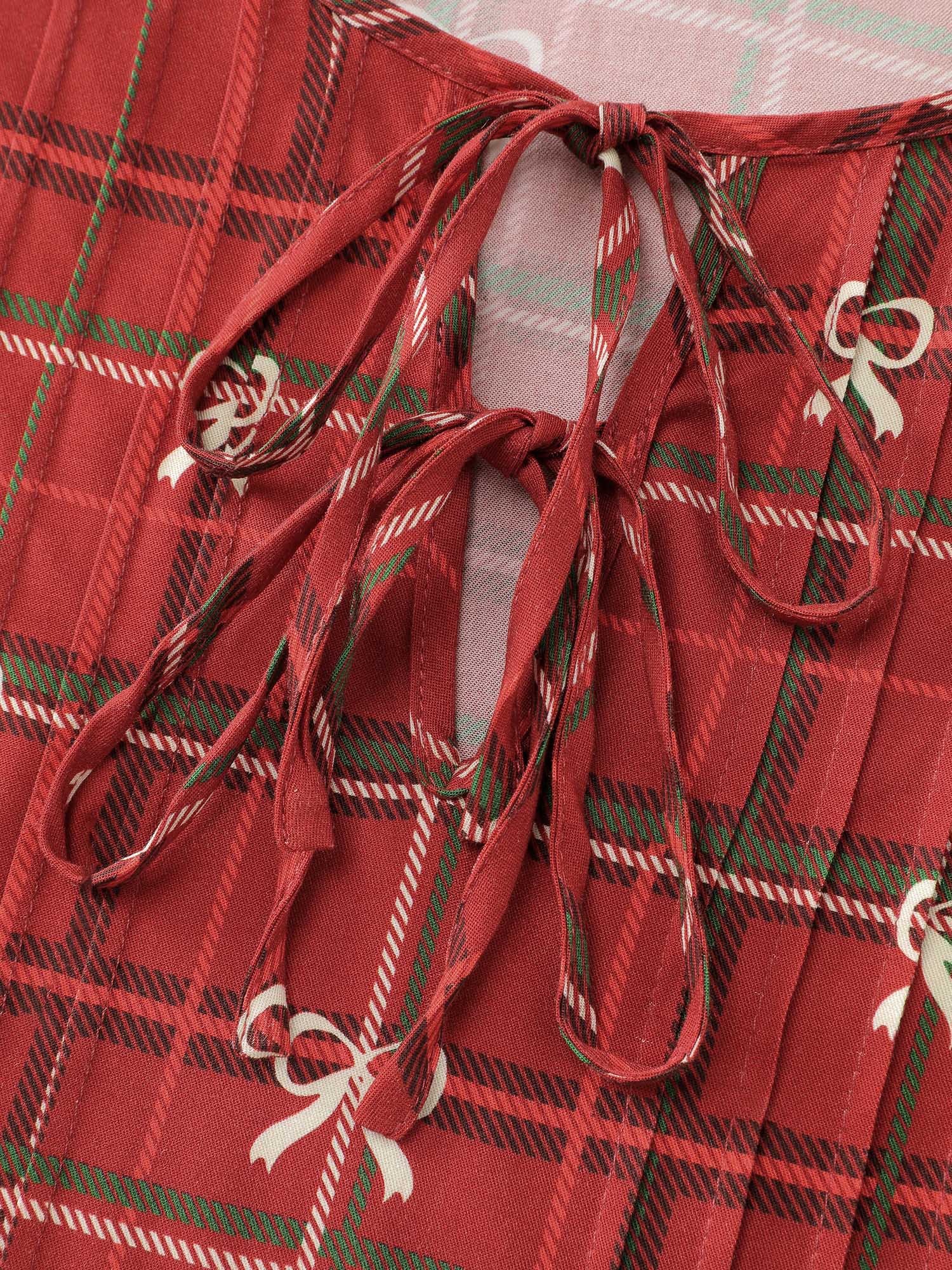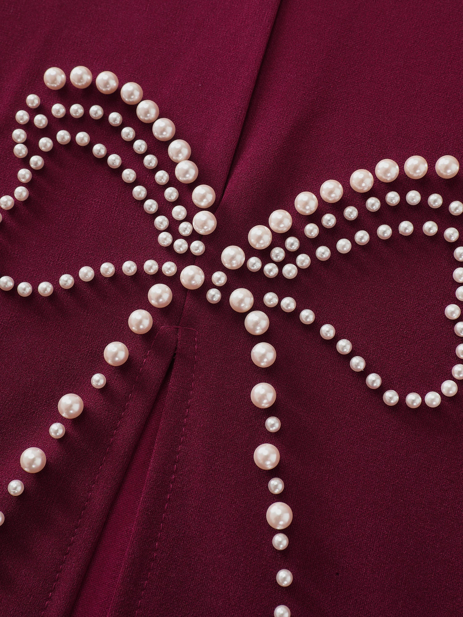 Bowknot Jacquard Stretchy Waist Knee-Length Dress