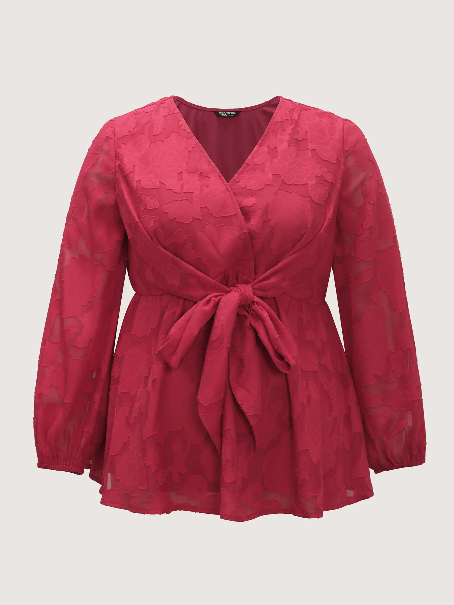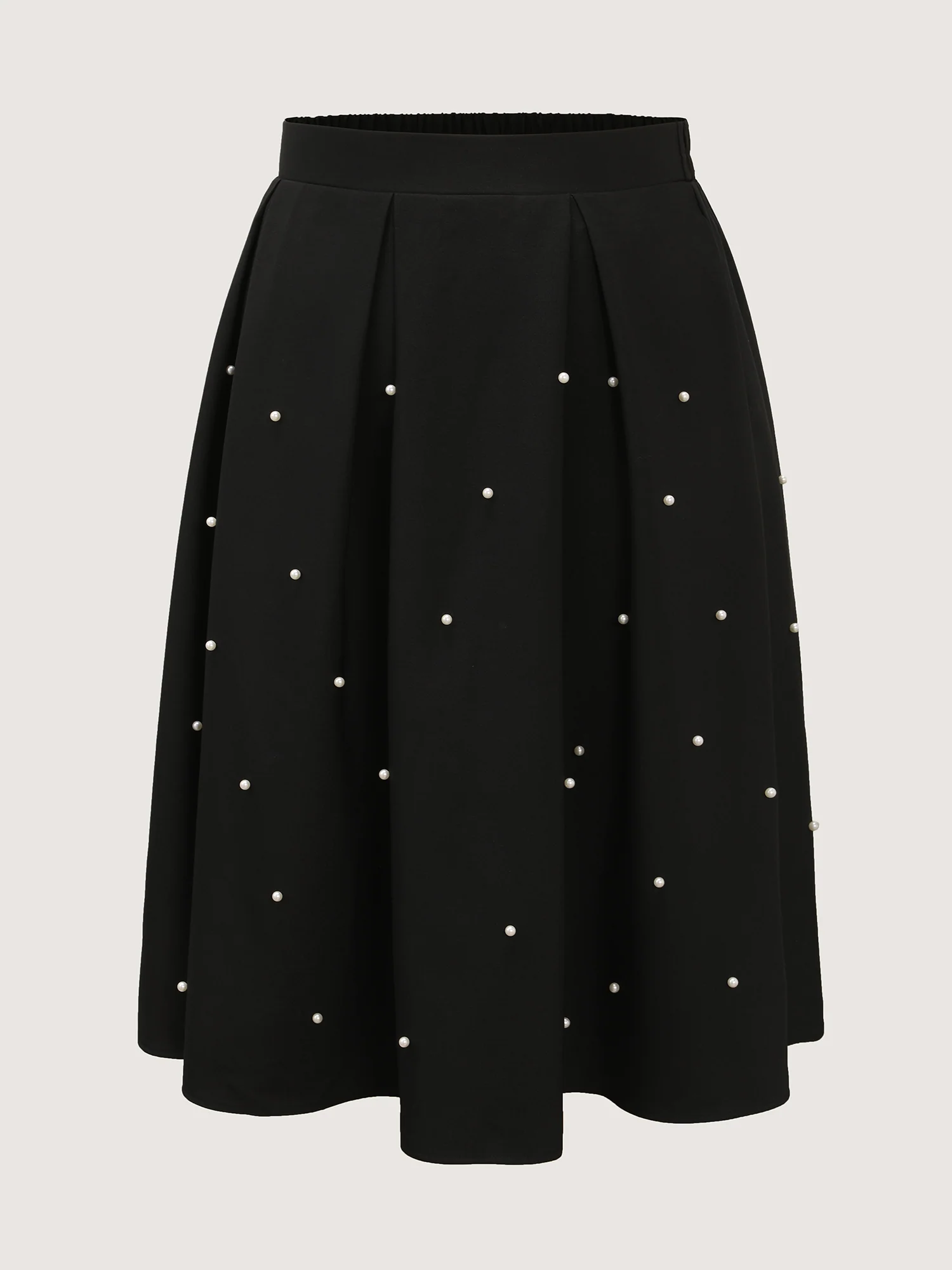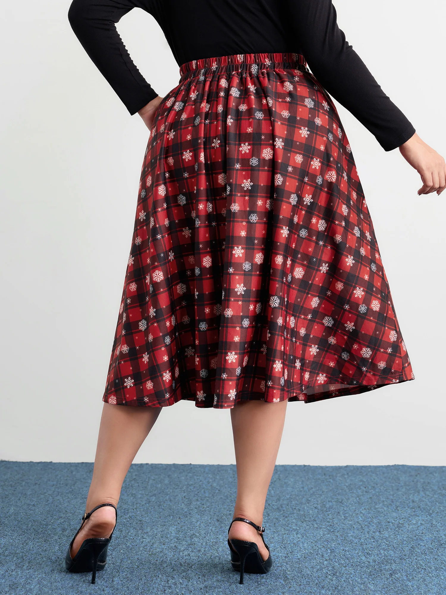 Bowknot Jacquard Stretchy Waist Knee-Length Dress