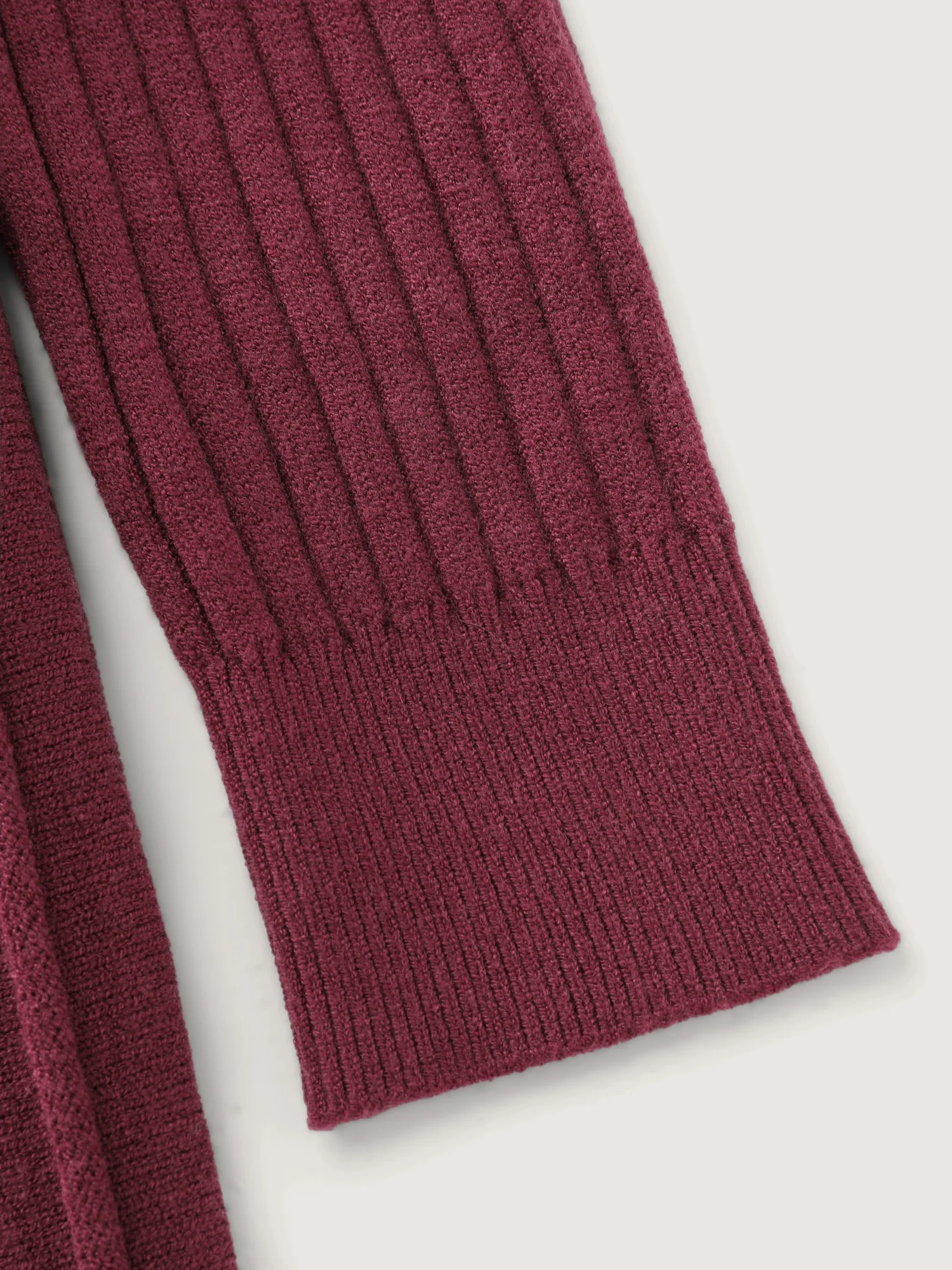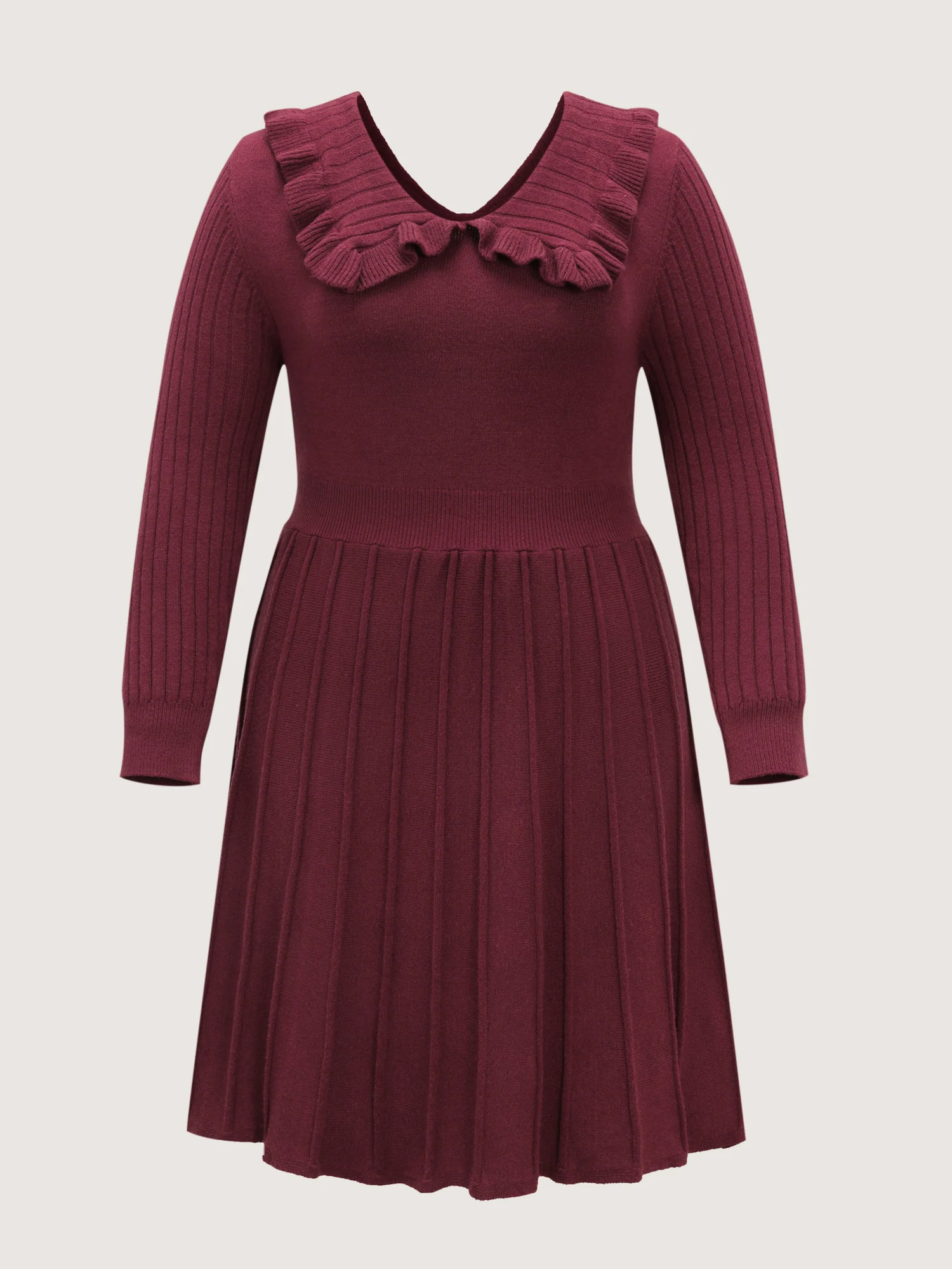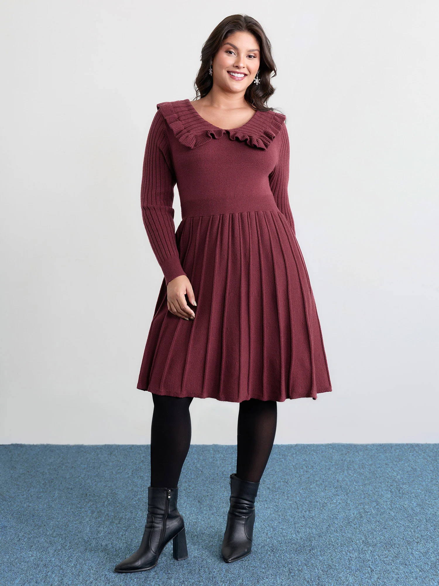 Supersoft Ruffled Neckline Cinched-Waist Sweater Dress