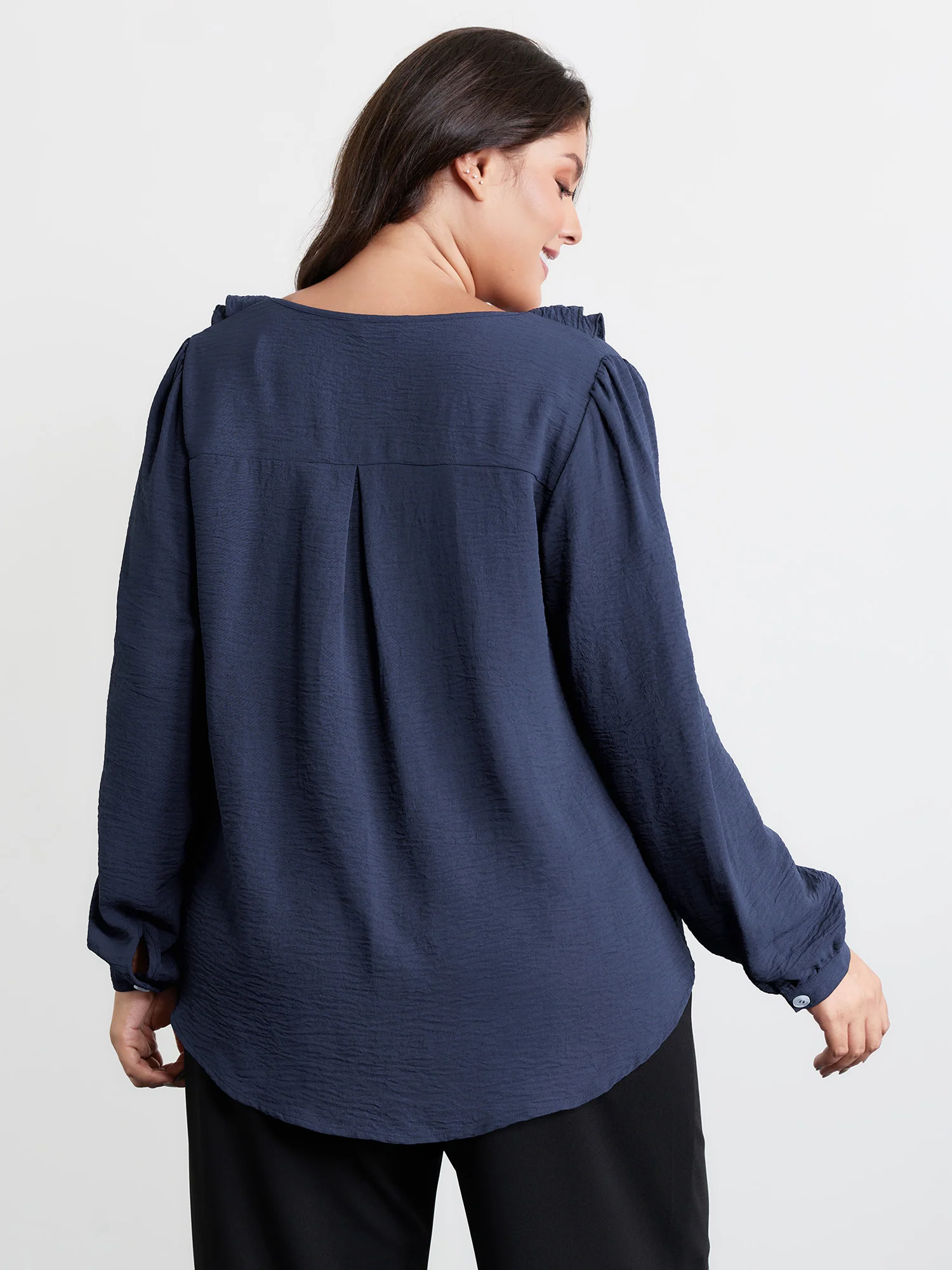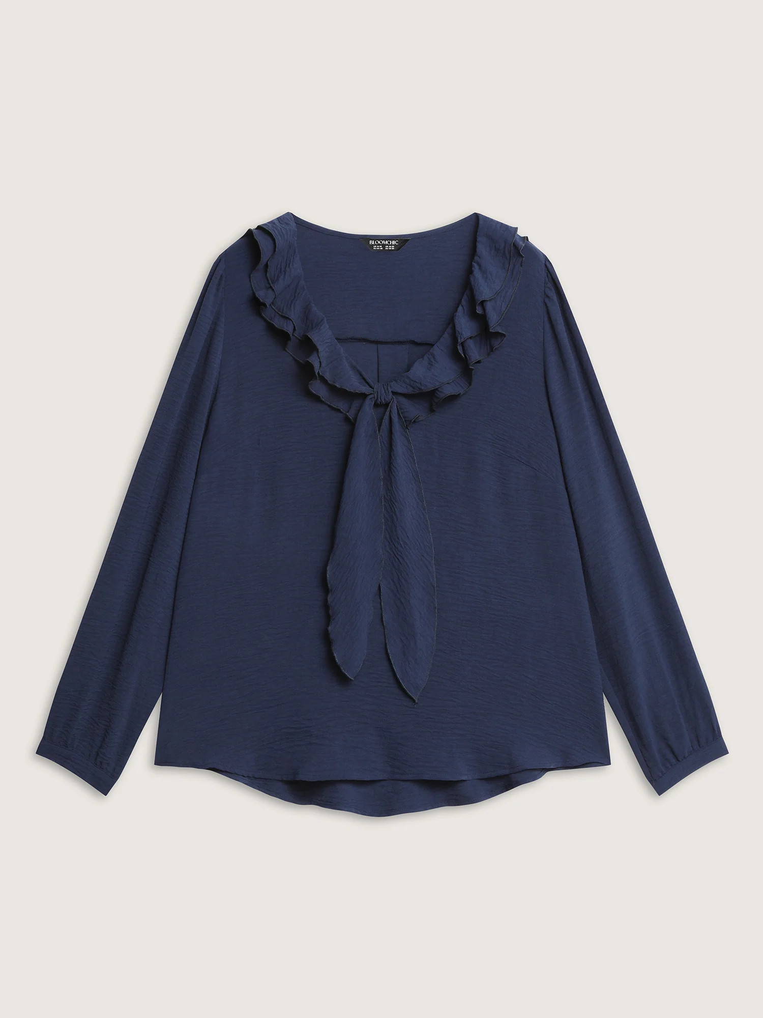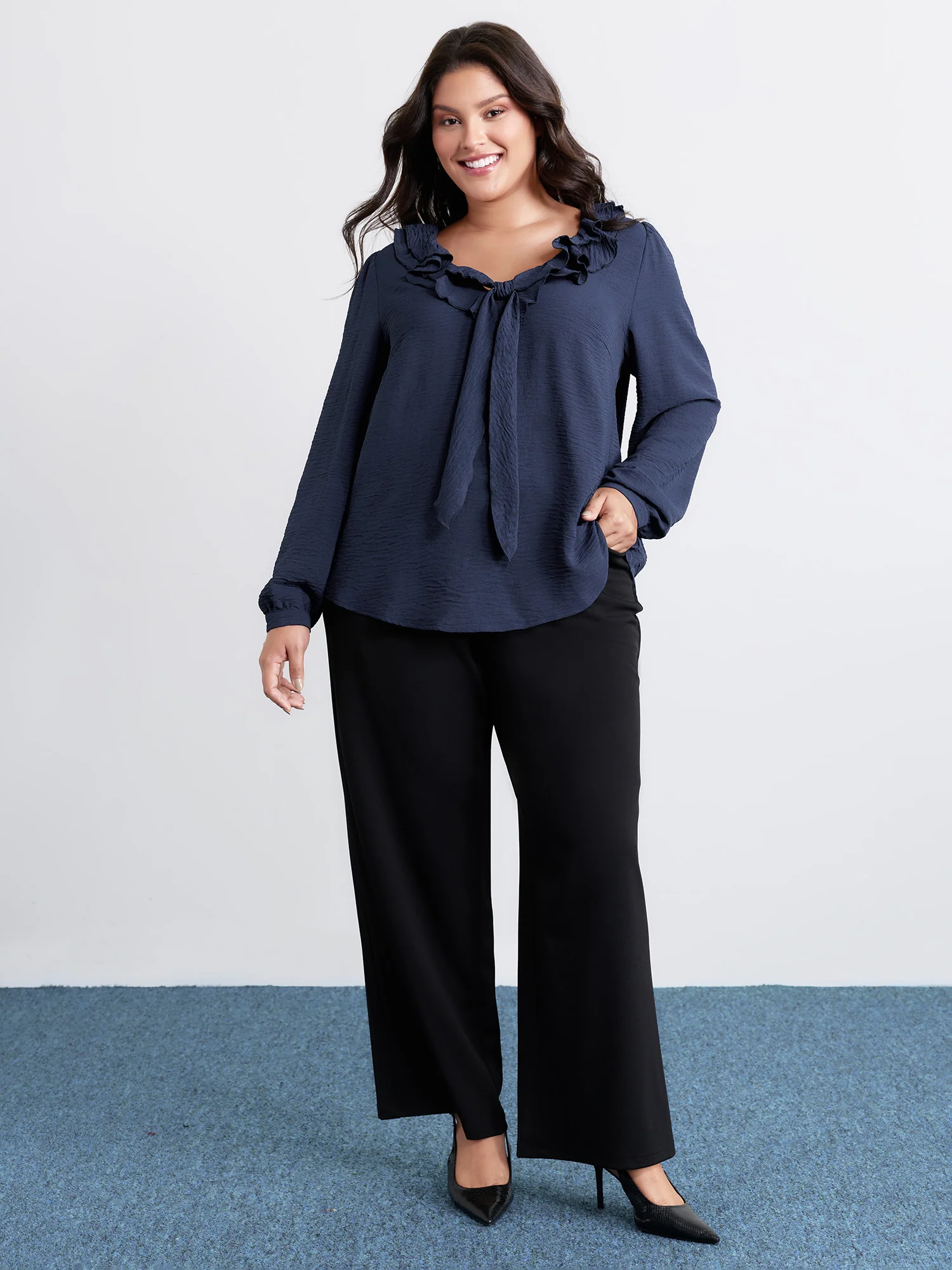 Supersoft Ruffled Neckline Cinched-Waist Sweater Dress
