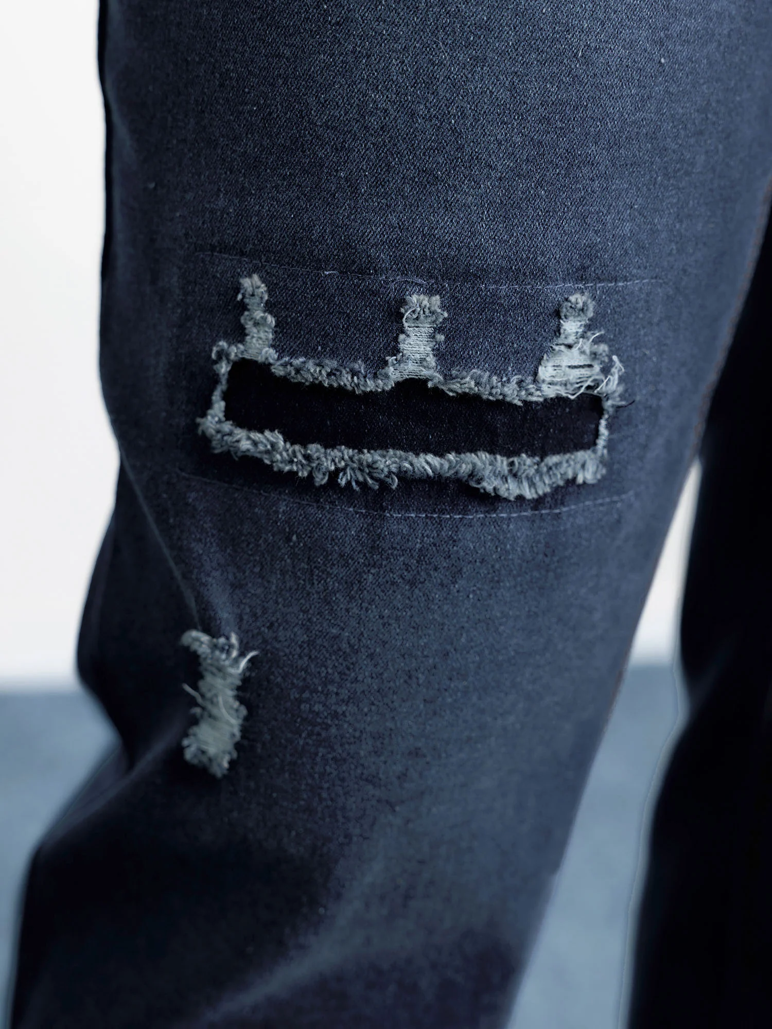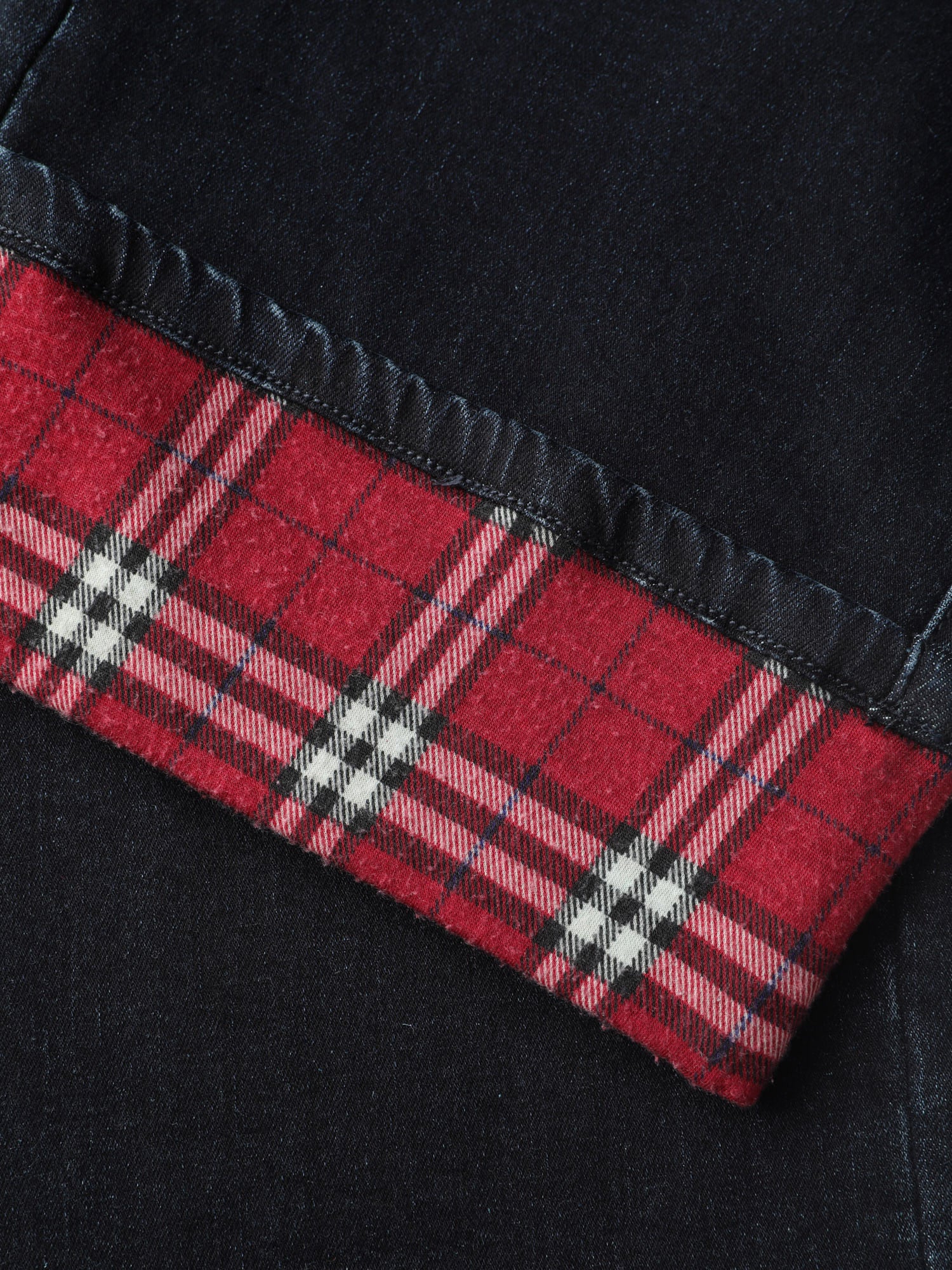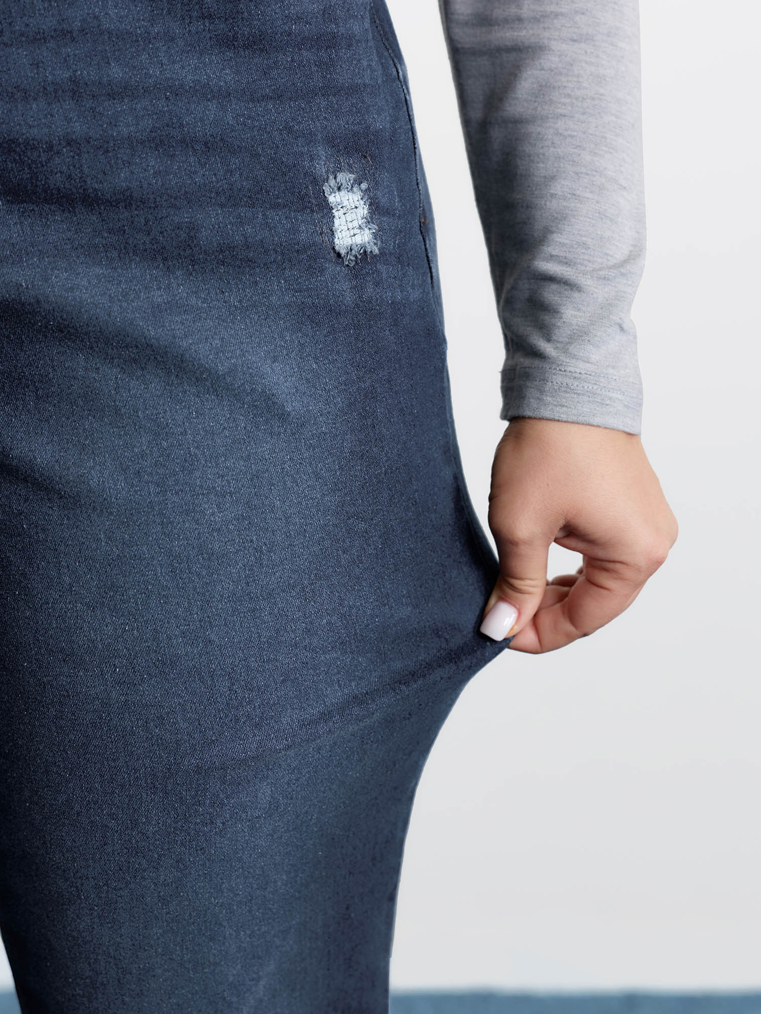 Corduroy Embroidered Adjustable Straps Knee Dress