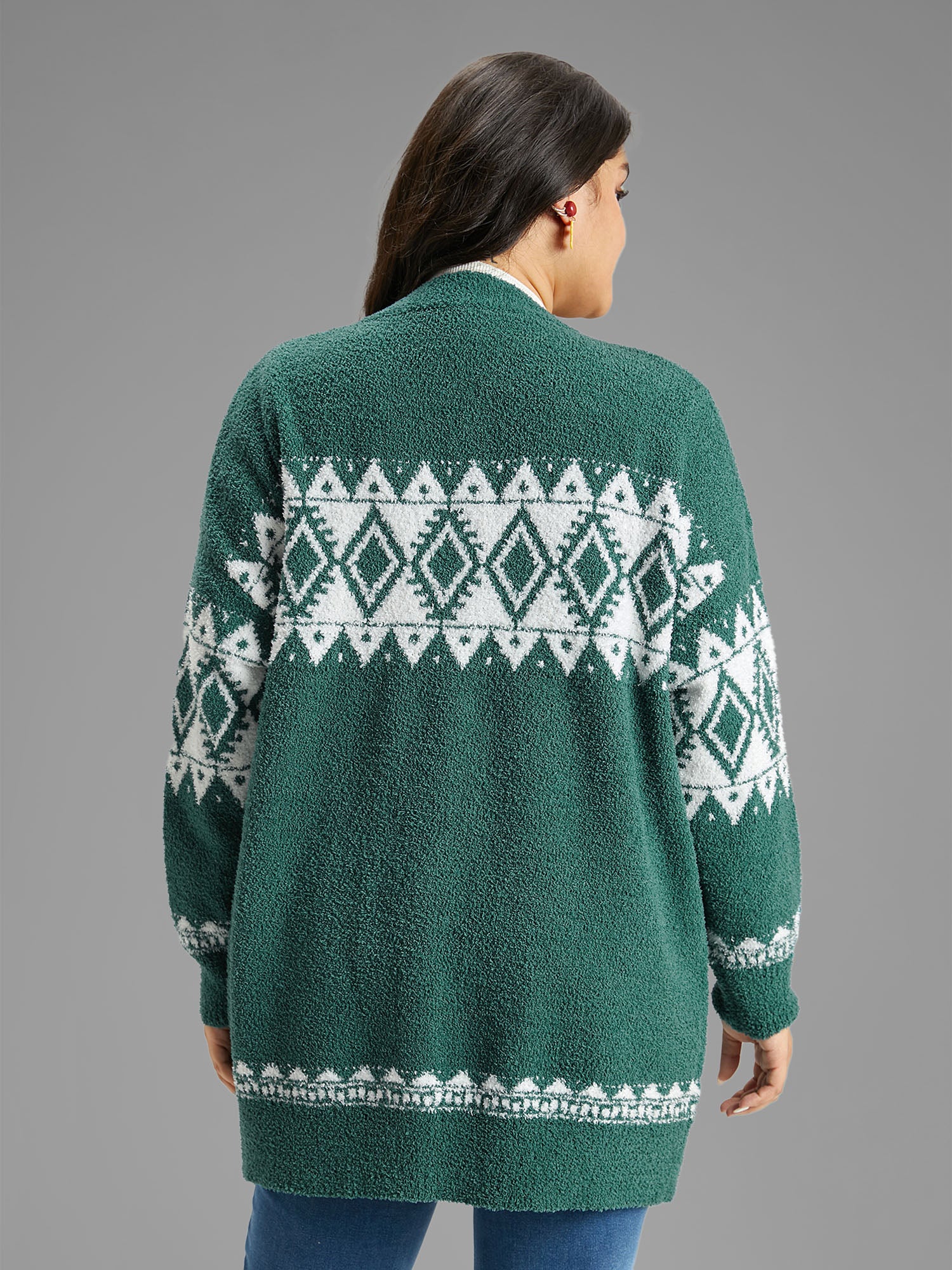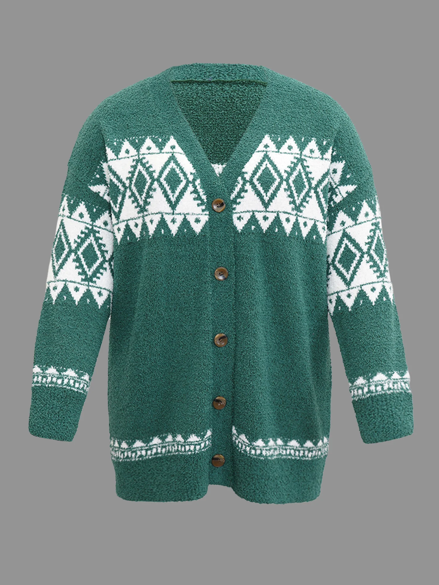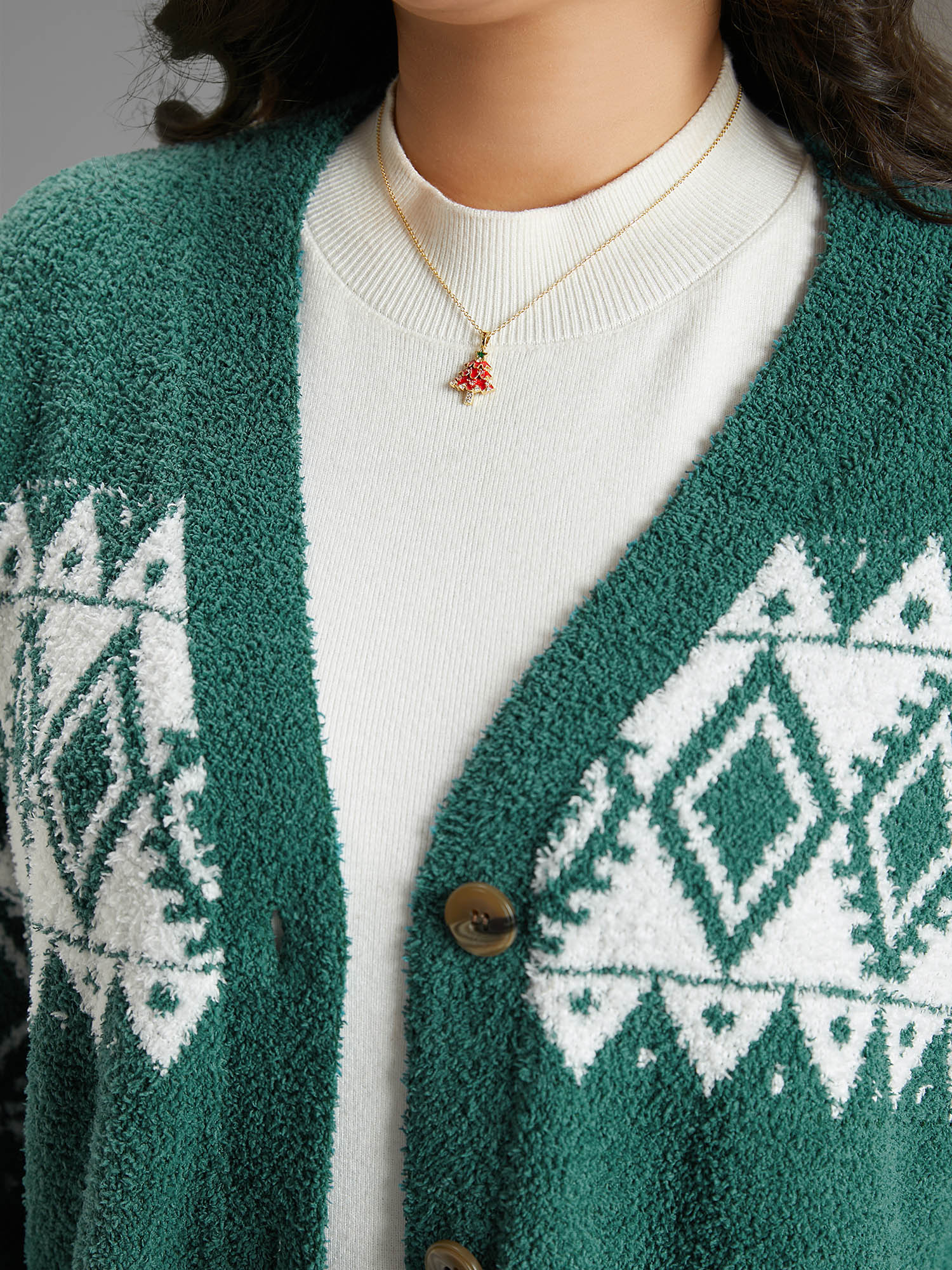 Supersoft Snowflake Jacquard Pattern Pockets Knit Cardigan