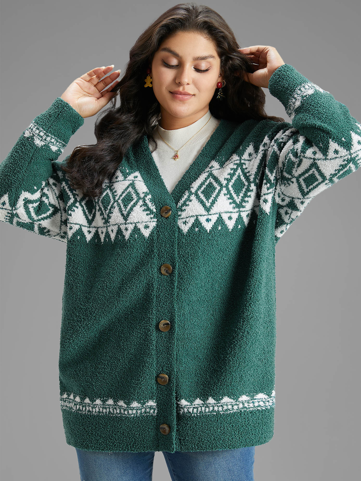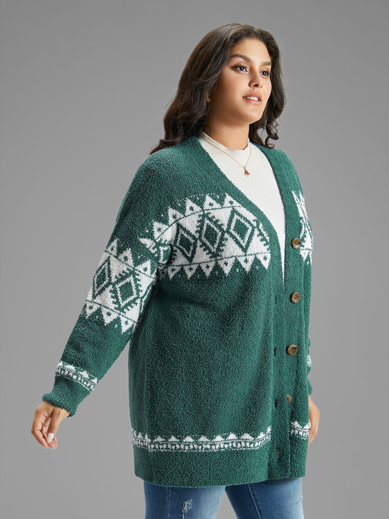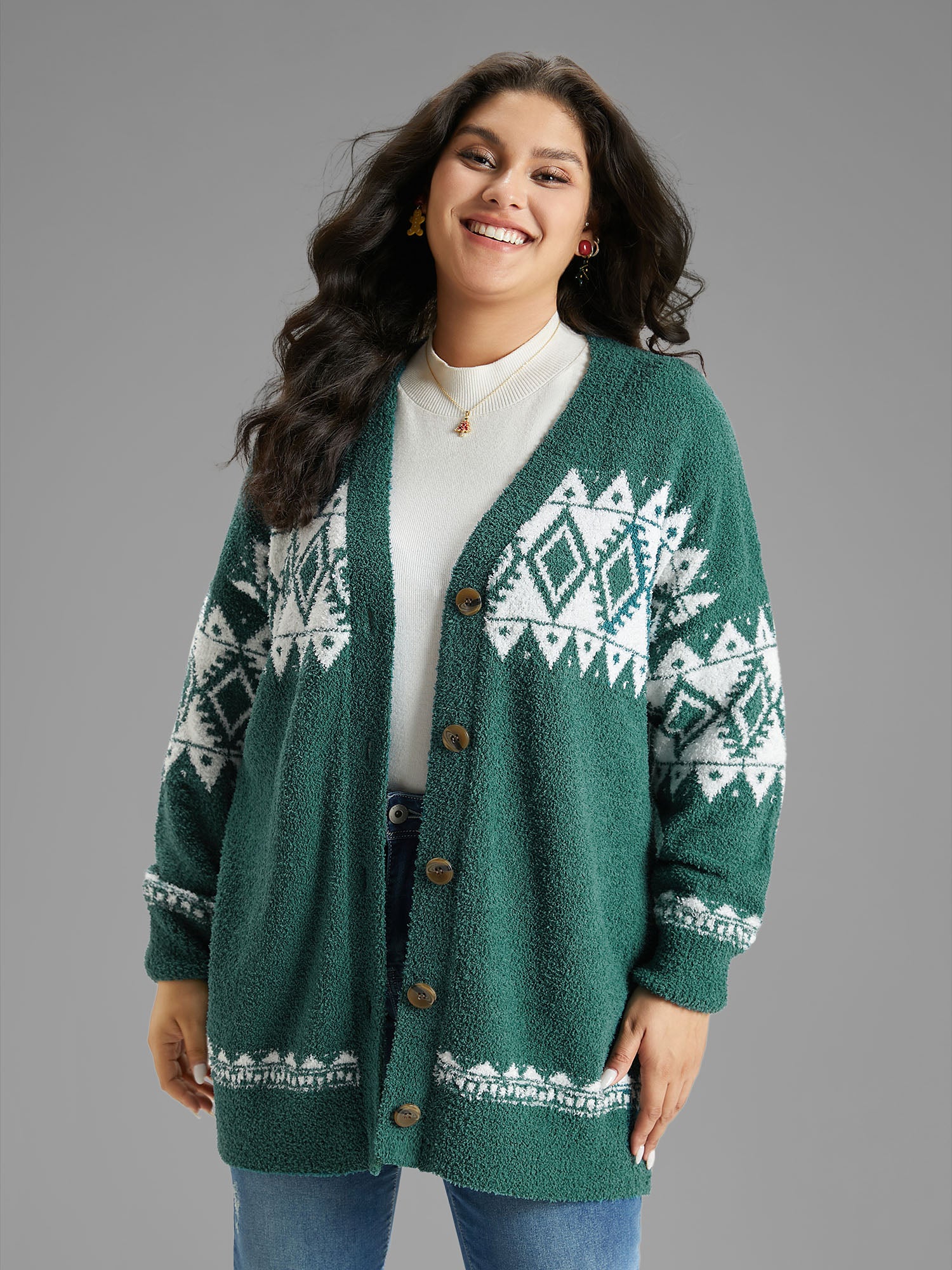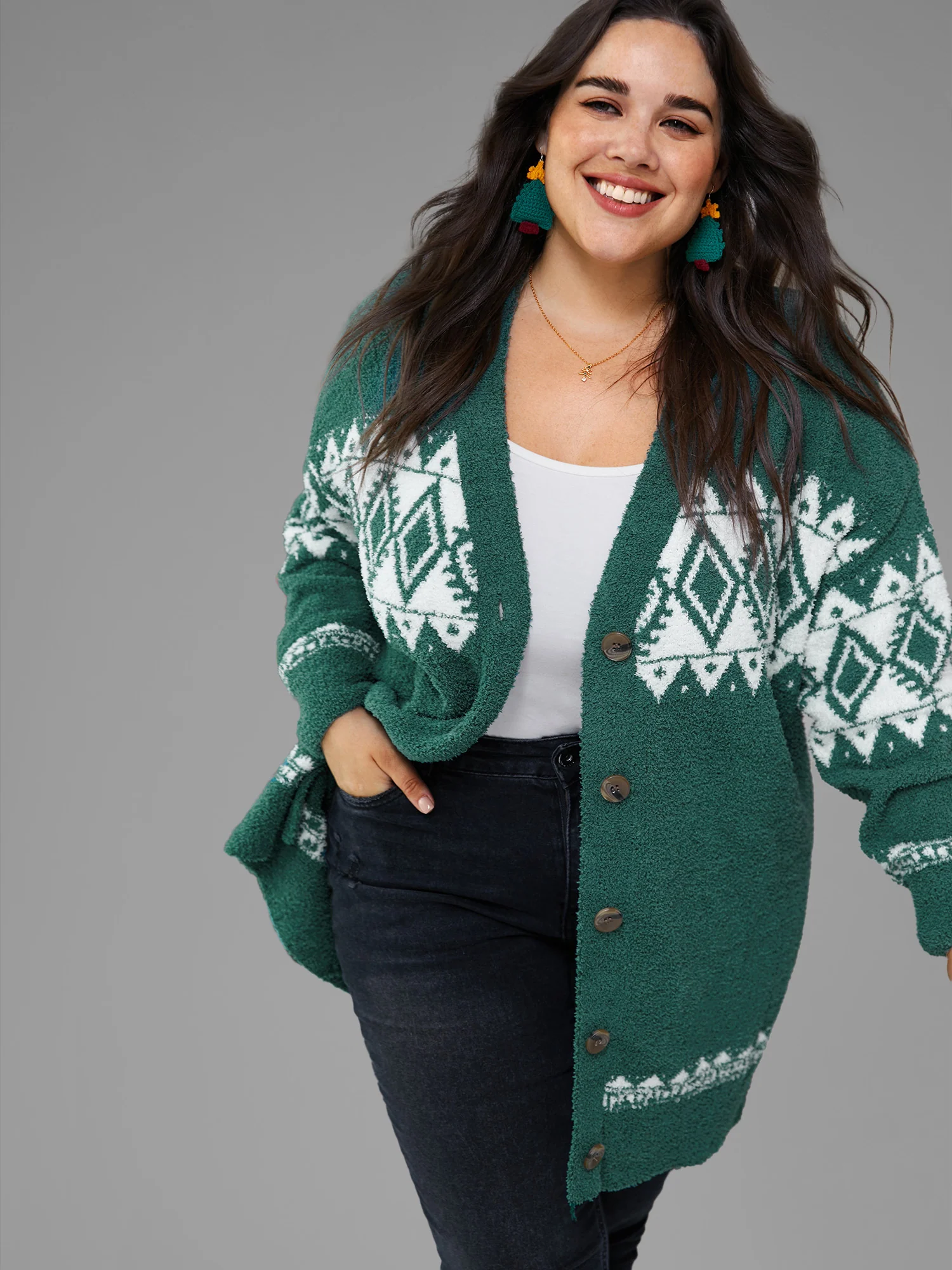 Supersoft Snowflake Jacquard Pattern Pockets Knit Cardigan