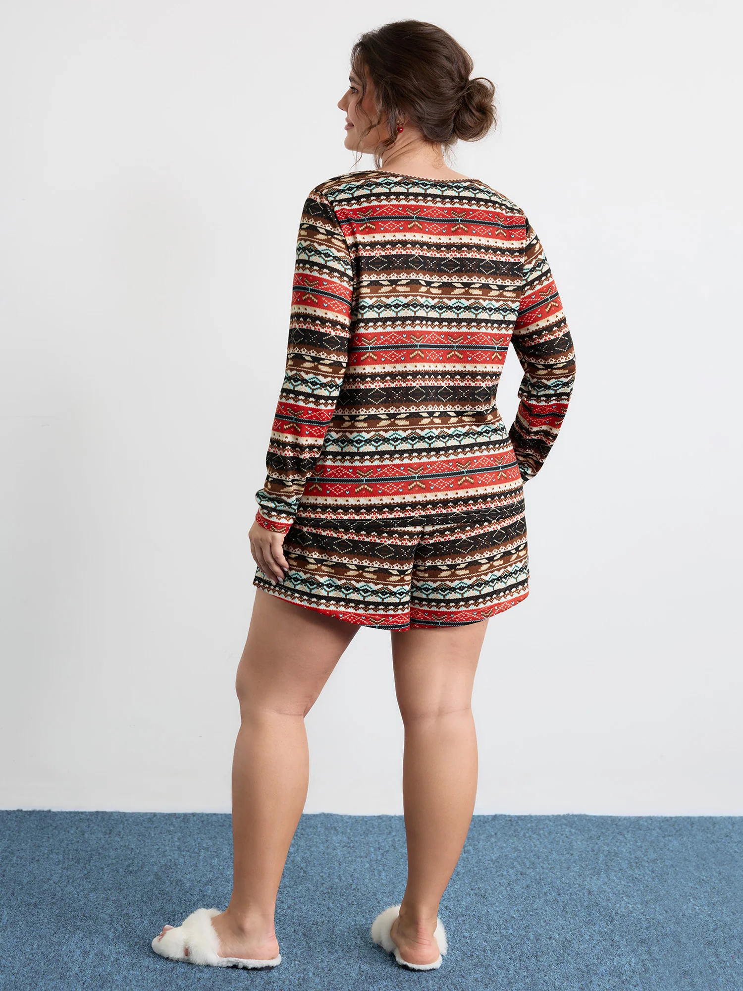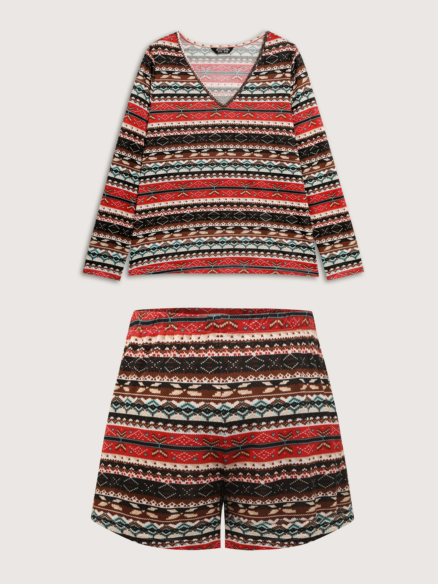 Boho Stripes V-Neck Co-Ord Lounge Set
