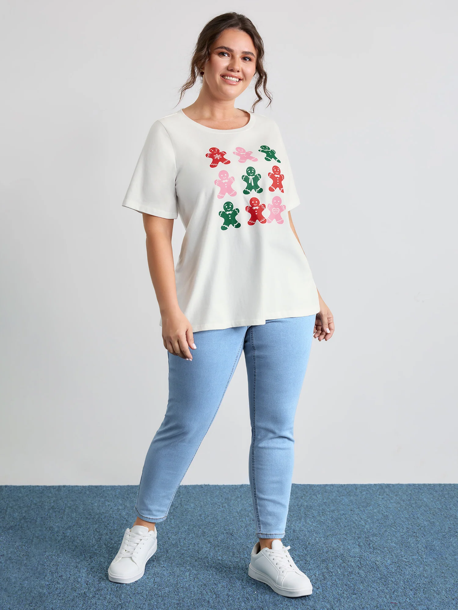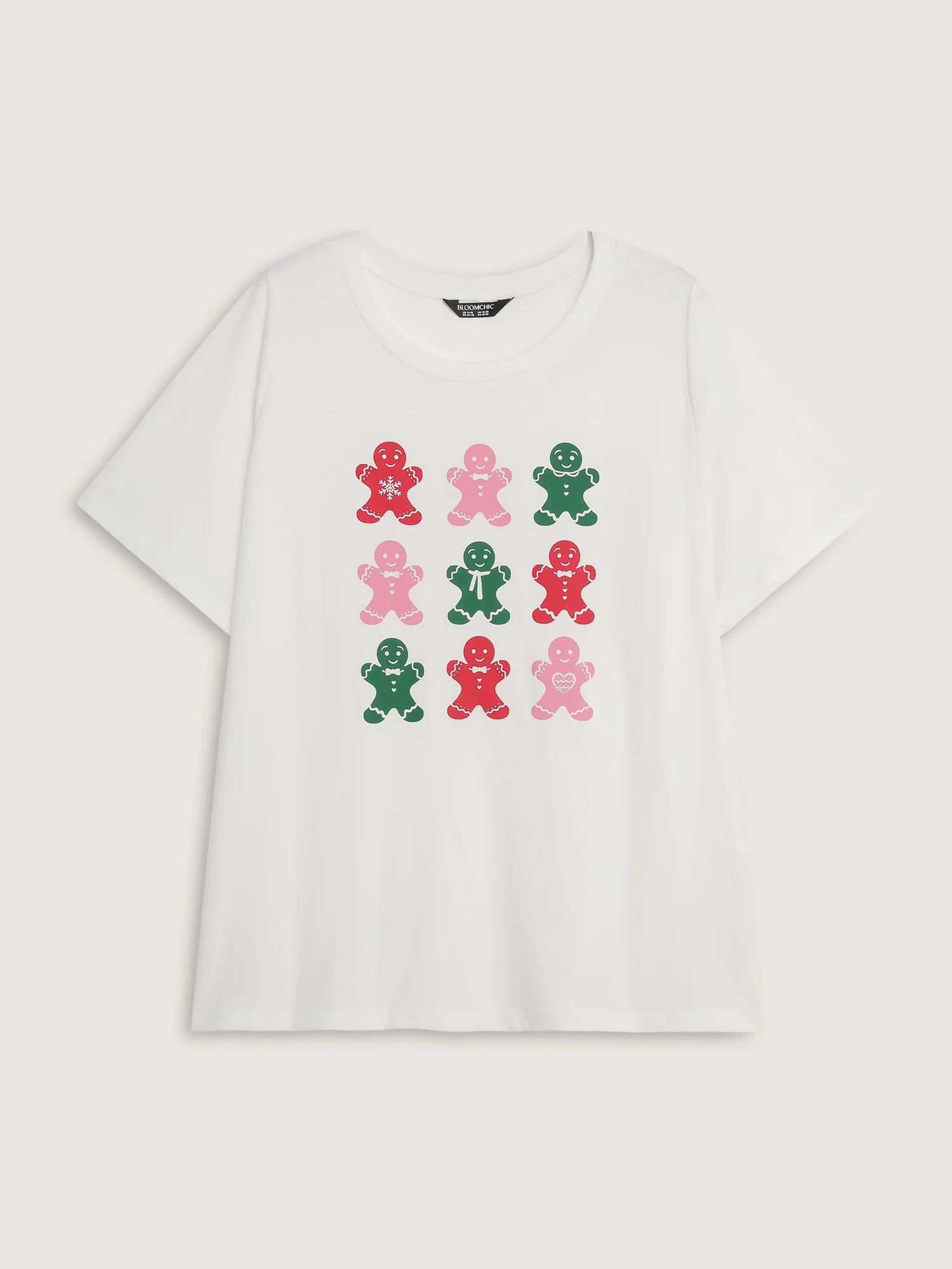 Cotton Gingerbread Man Colorful Print T-Shirt