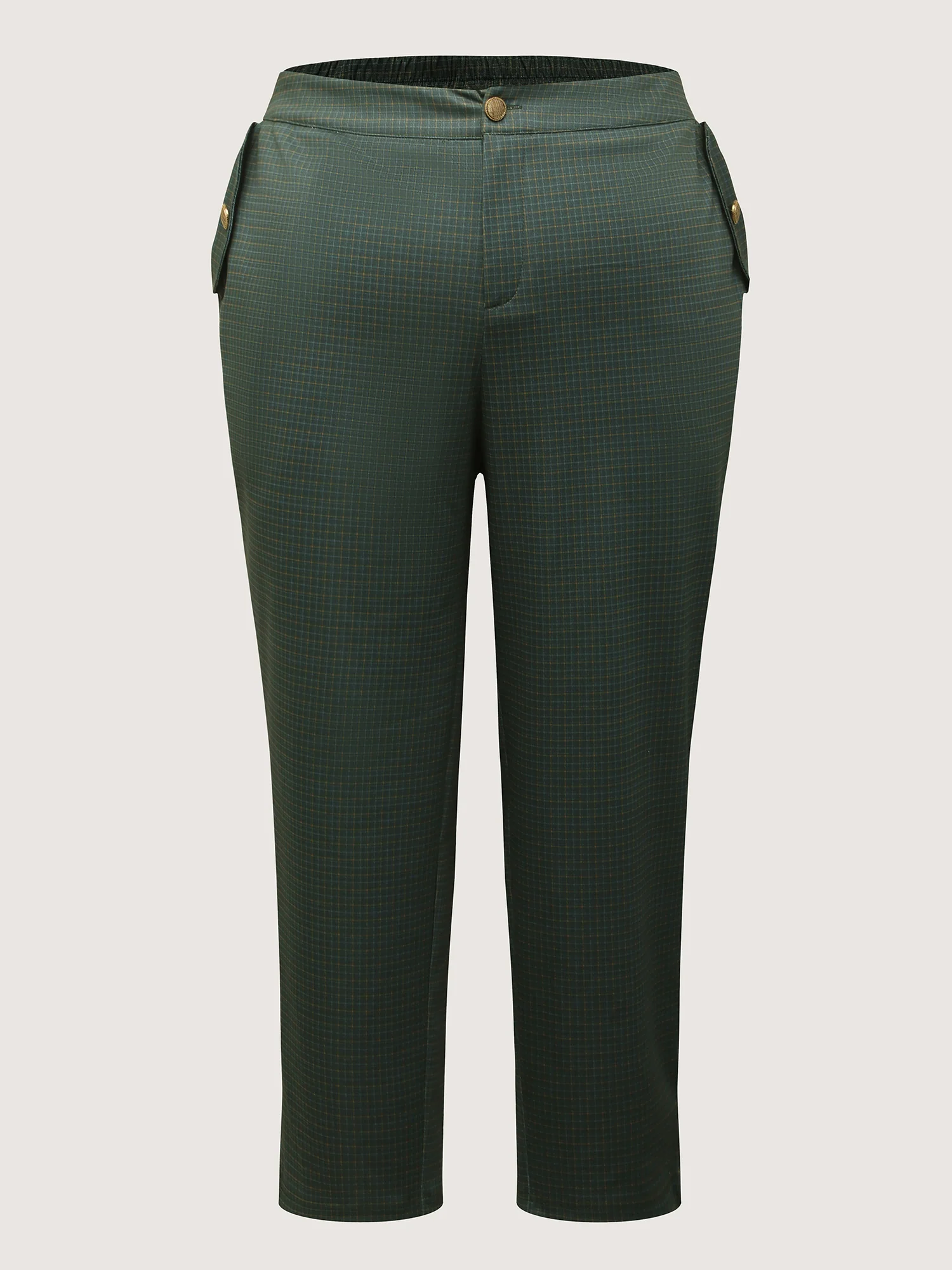 Houndstooth Pattern Stretchy Waist Pockets Jumpsuit
