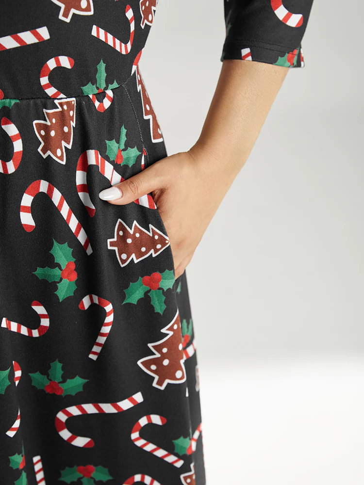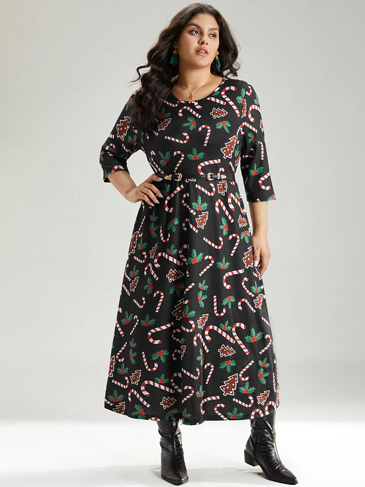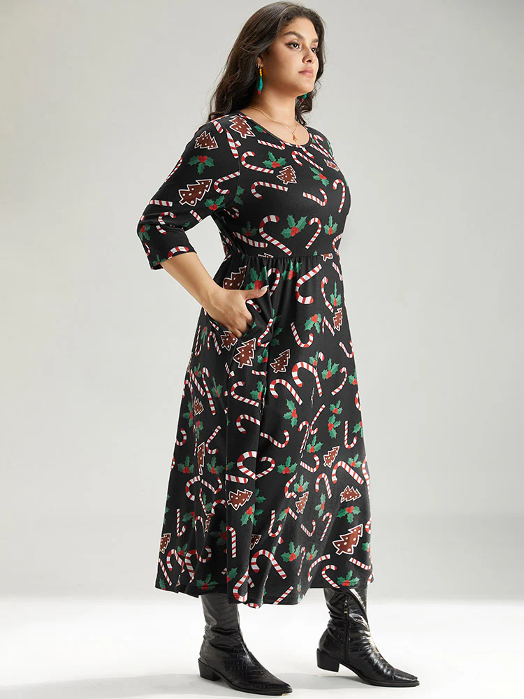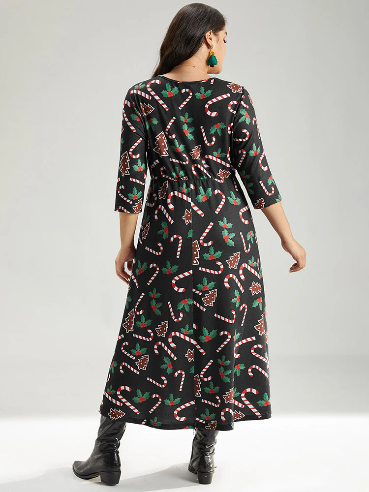 Holiday Lights Triple Elastic Waistband Midi Dress