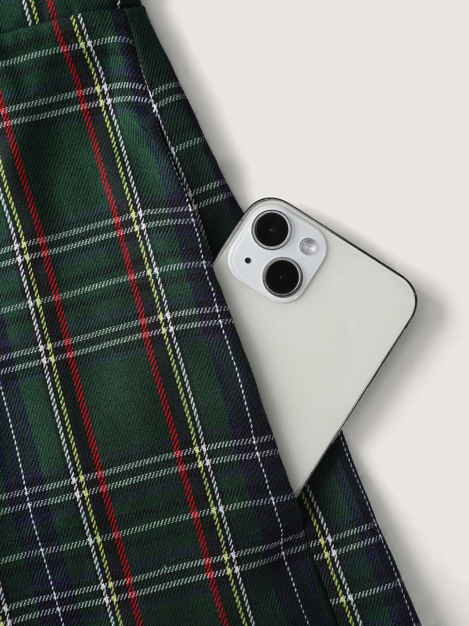 Plaid Print V-Neck Straight-Leg Jumpsuit