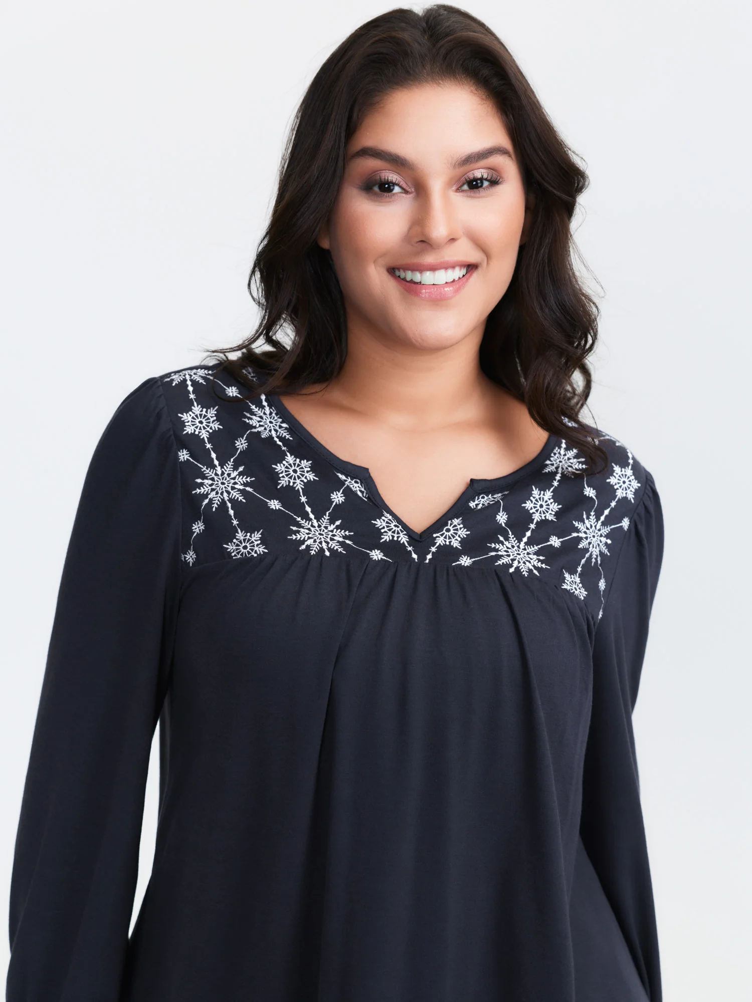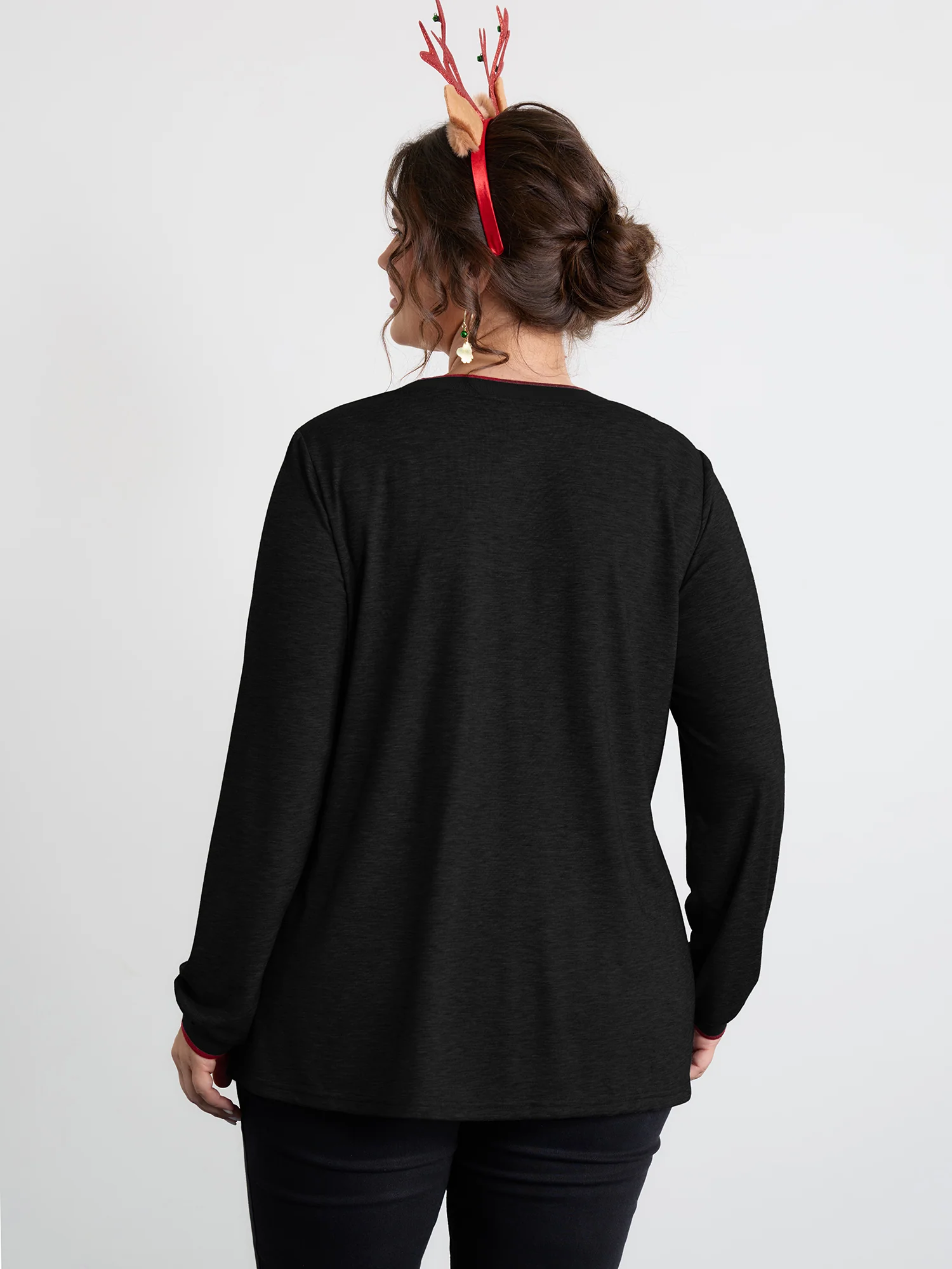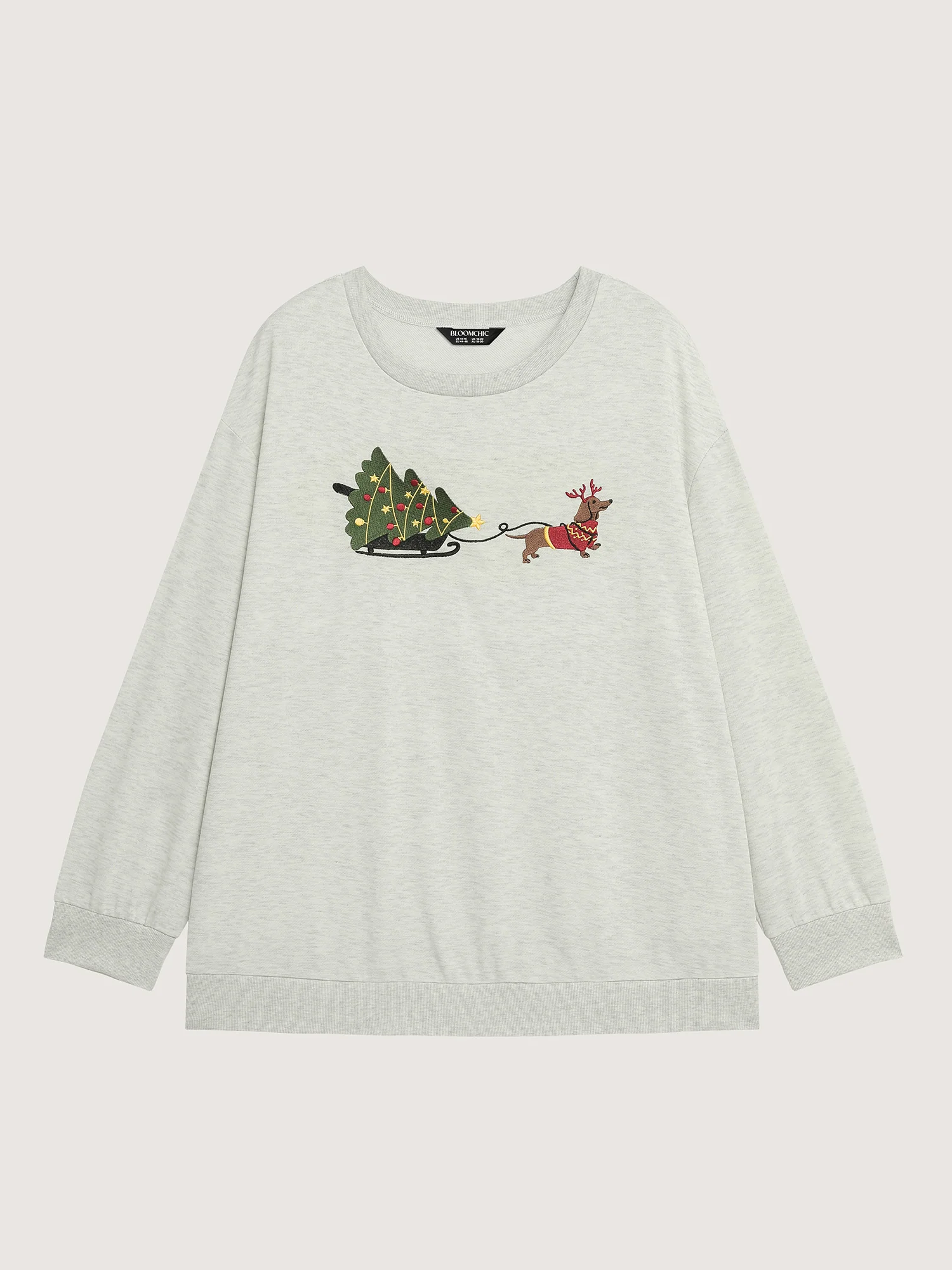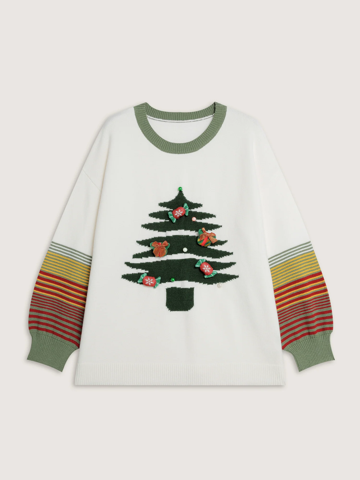 Stretchy Holiday Tree Sequin Embroidery Pullover
