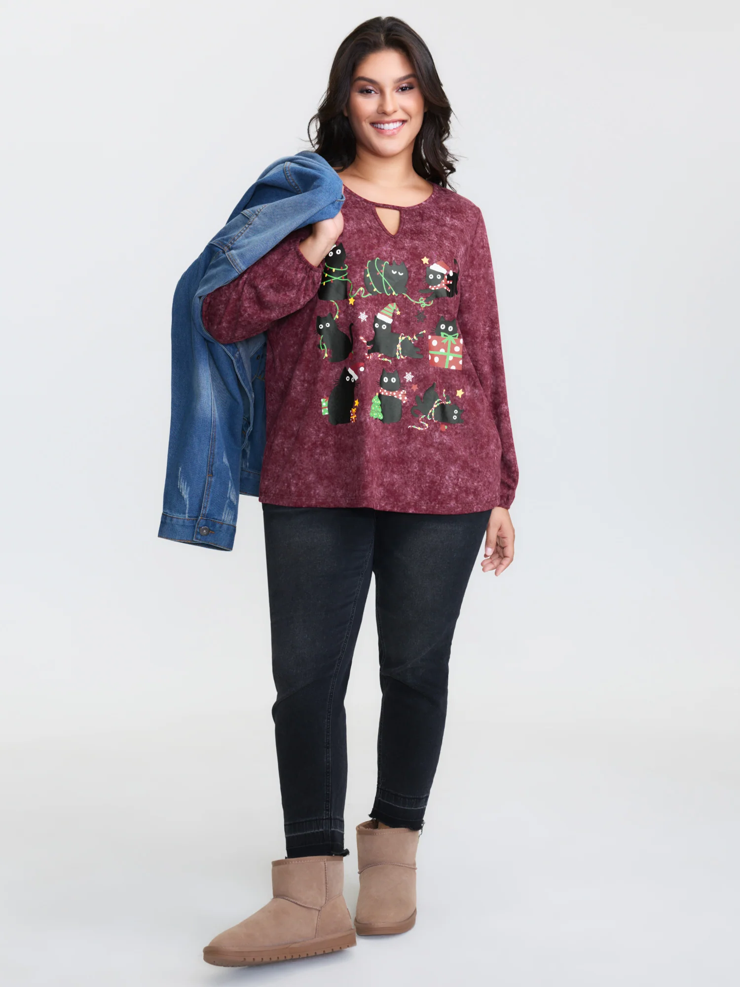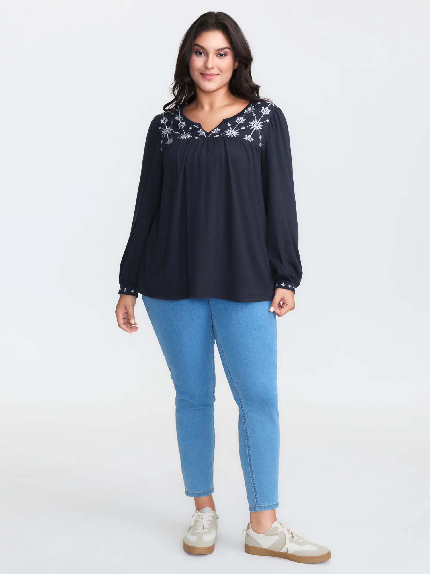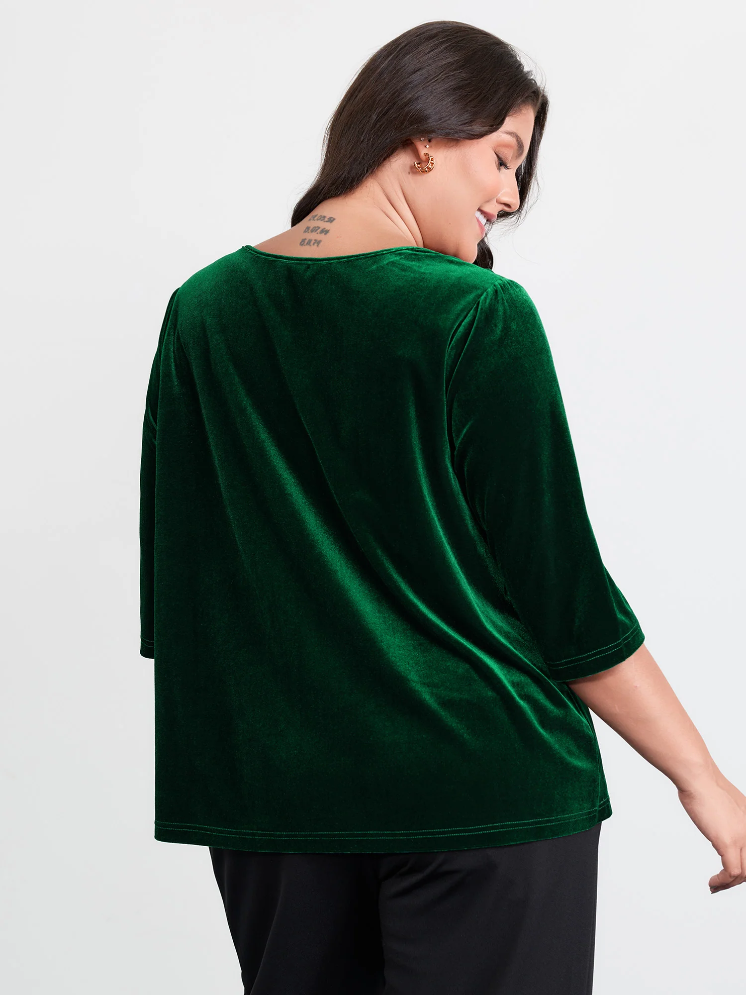Stretchy Holiday Tree Sequin Embroidery Pullover