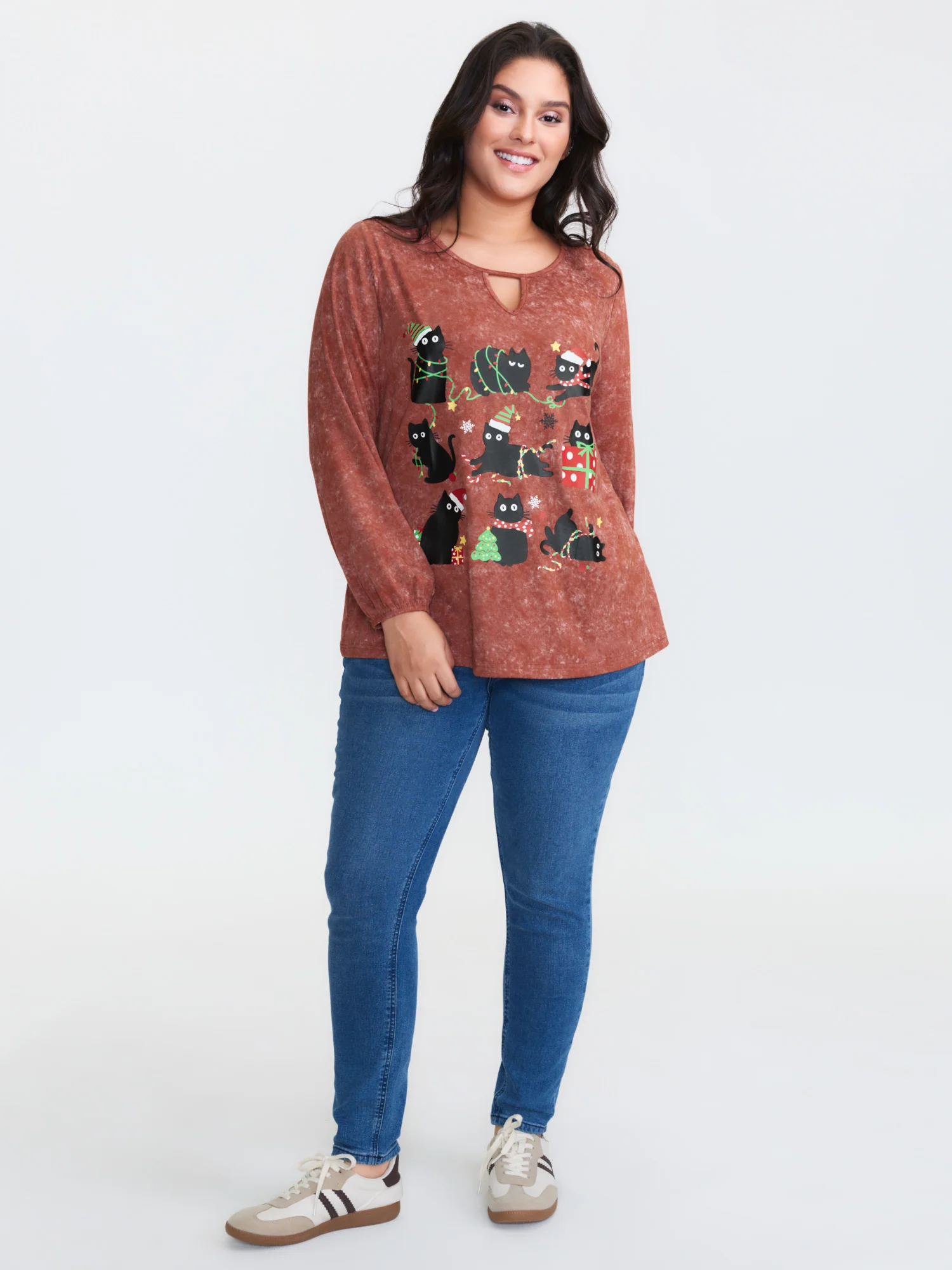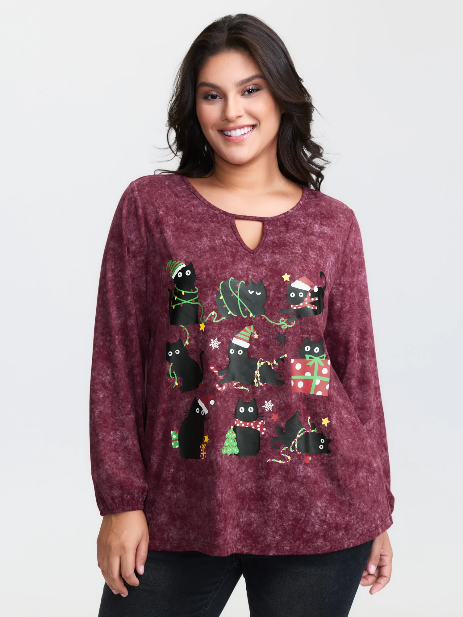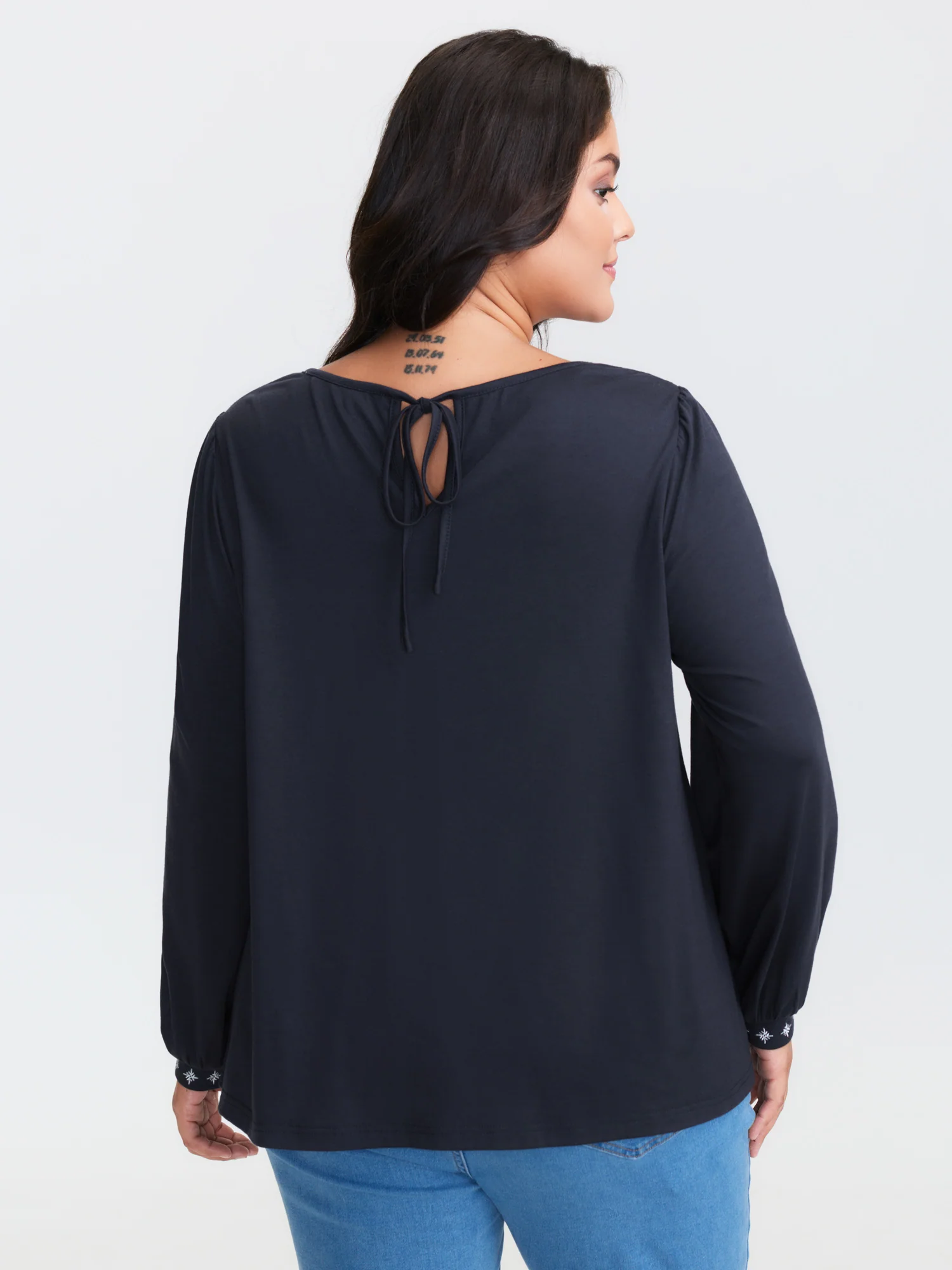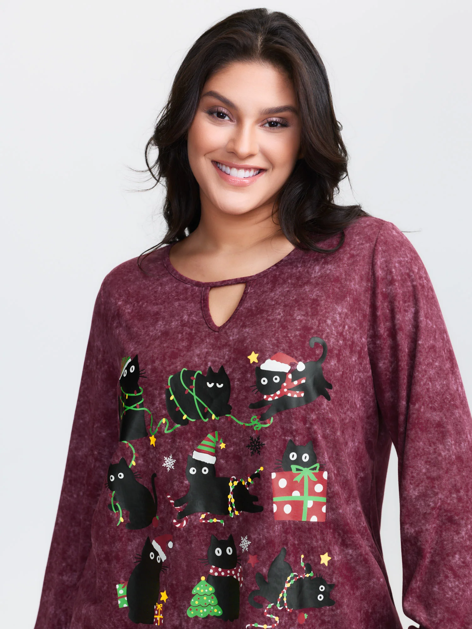 Stretchy Holiday Tree Sequin Embroidery Pullover