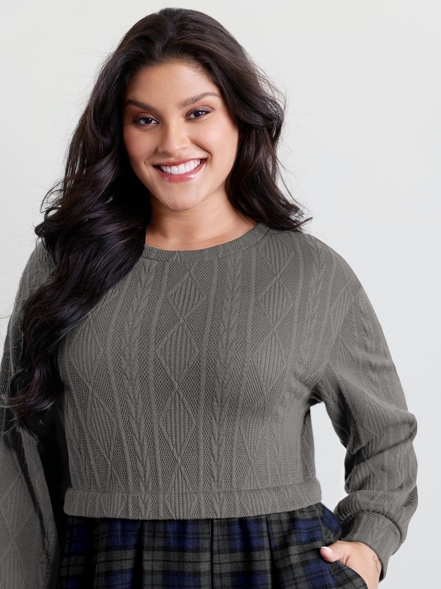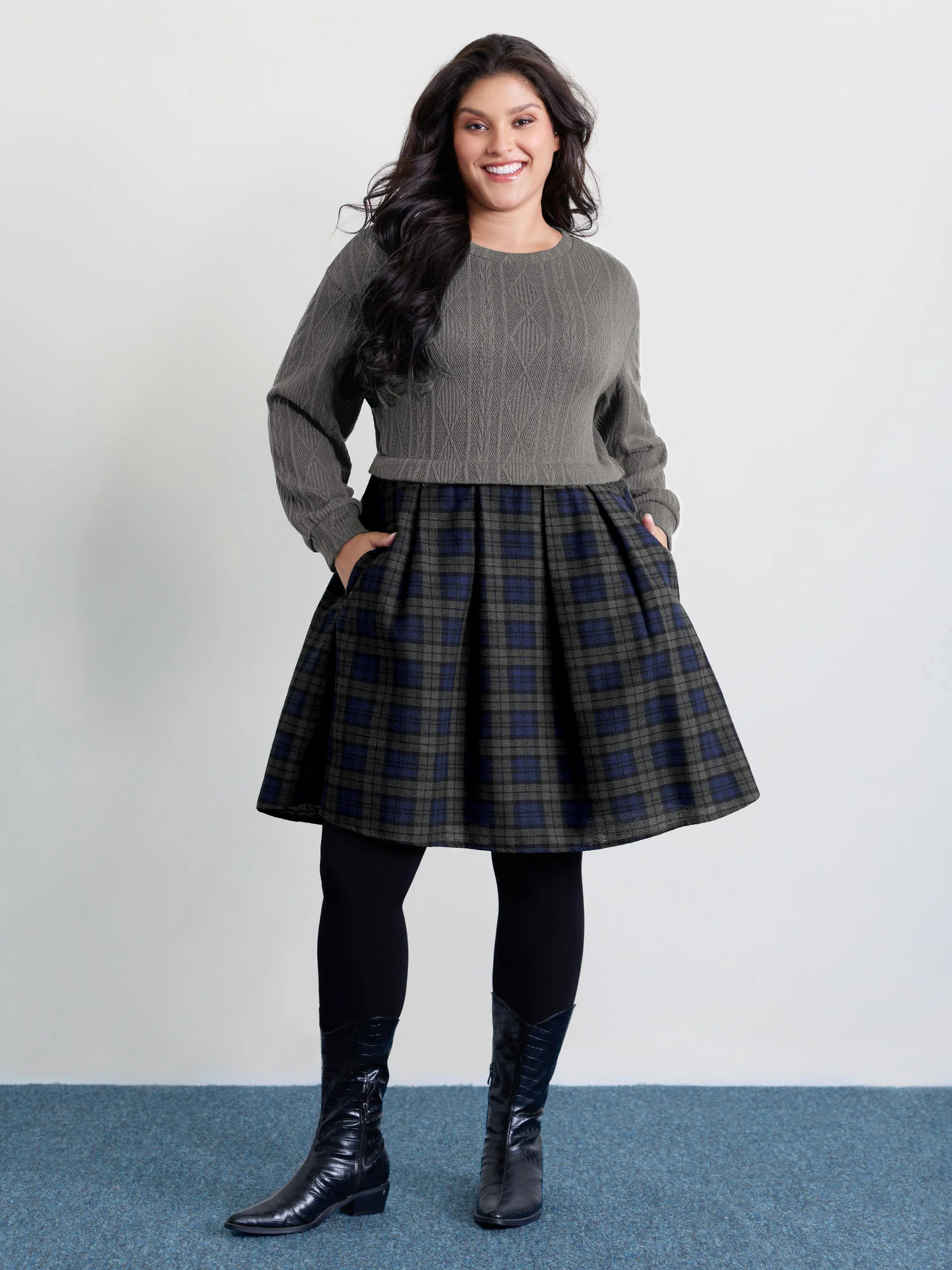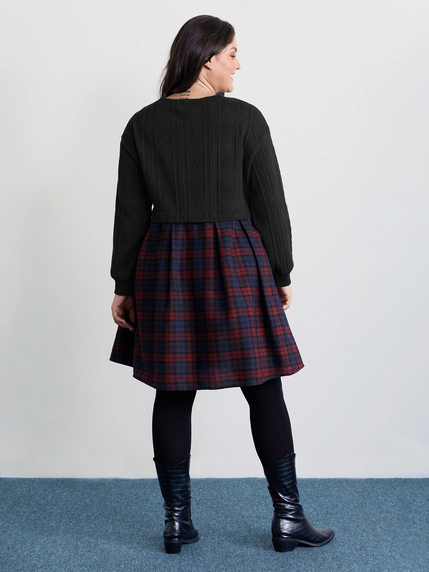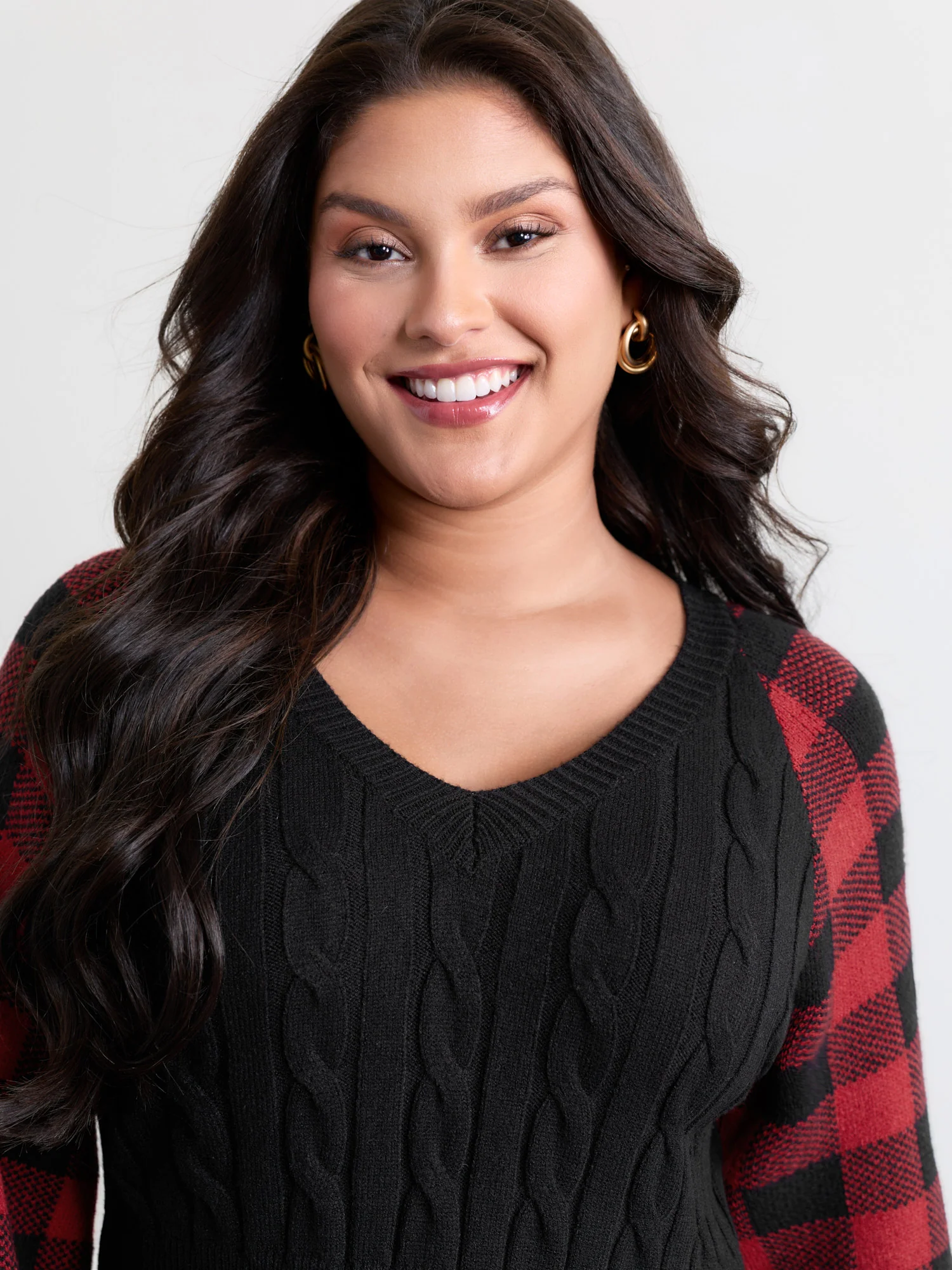 Supersoft Check Jacquard Cableknit Cinched-Waist Pullover