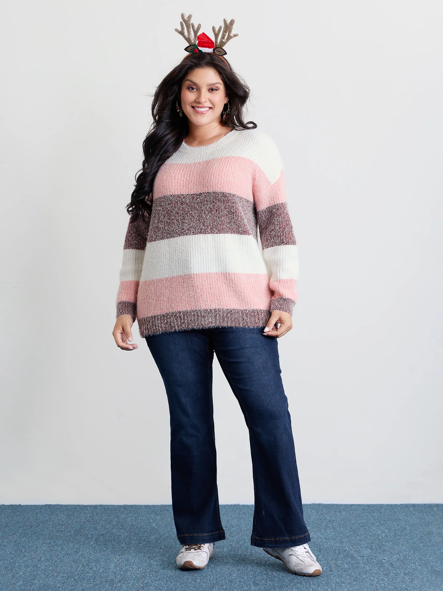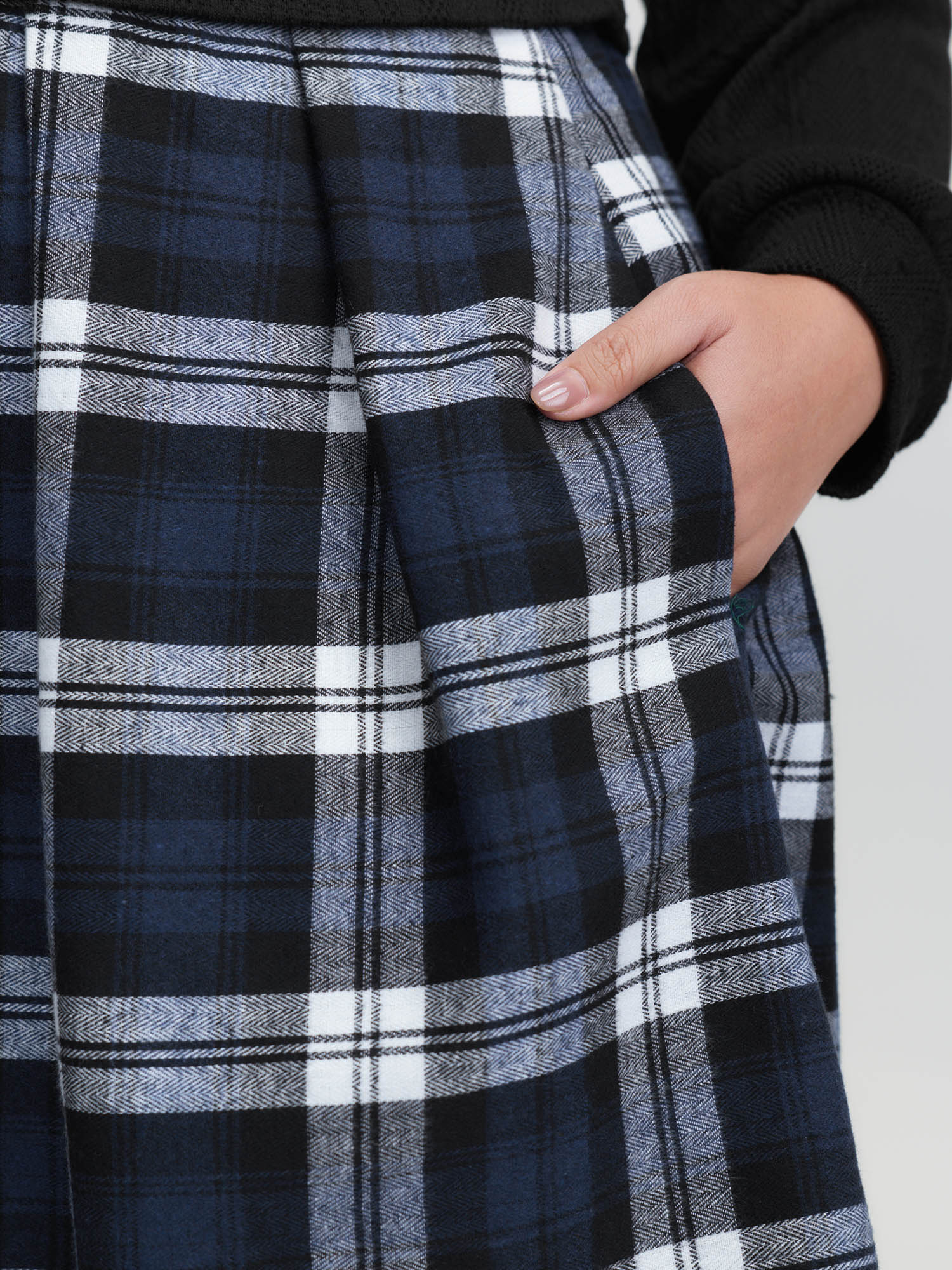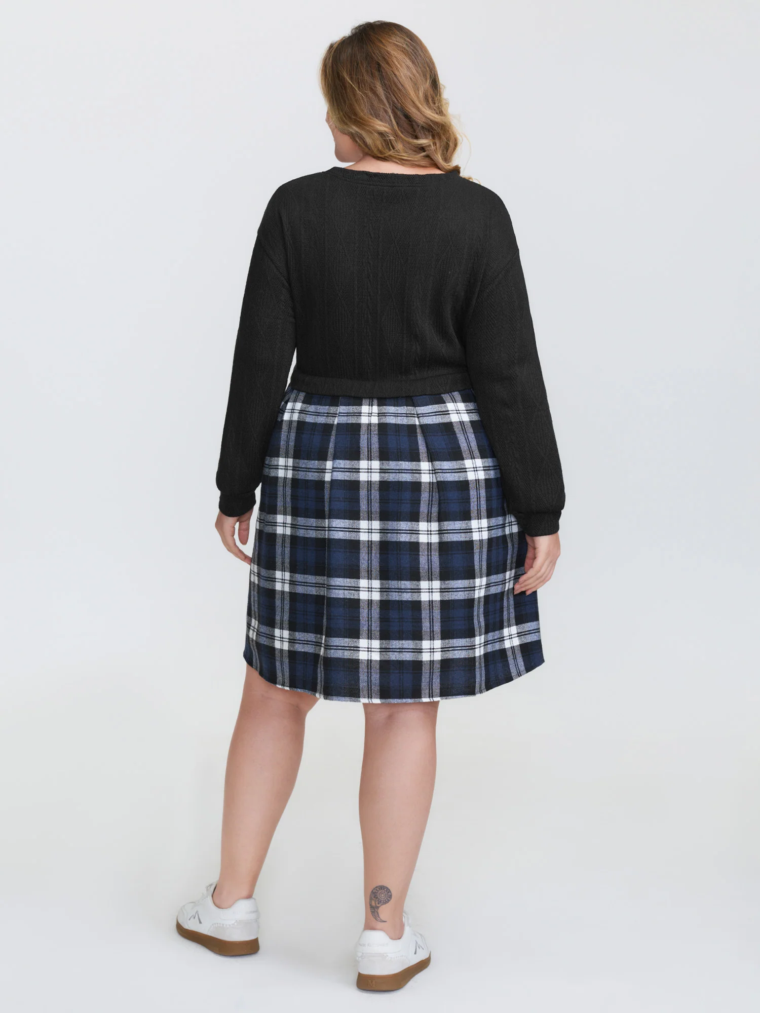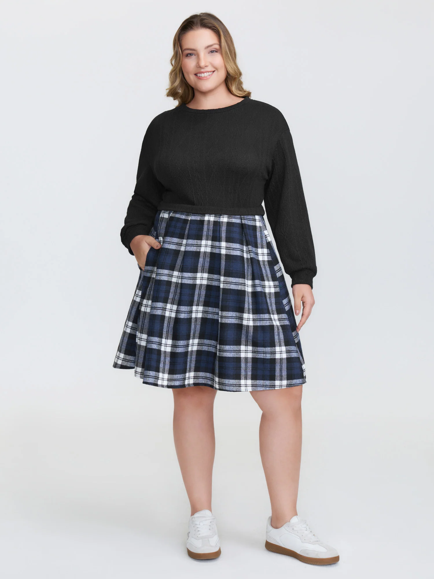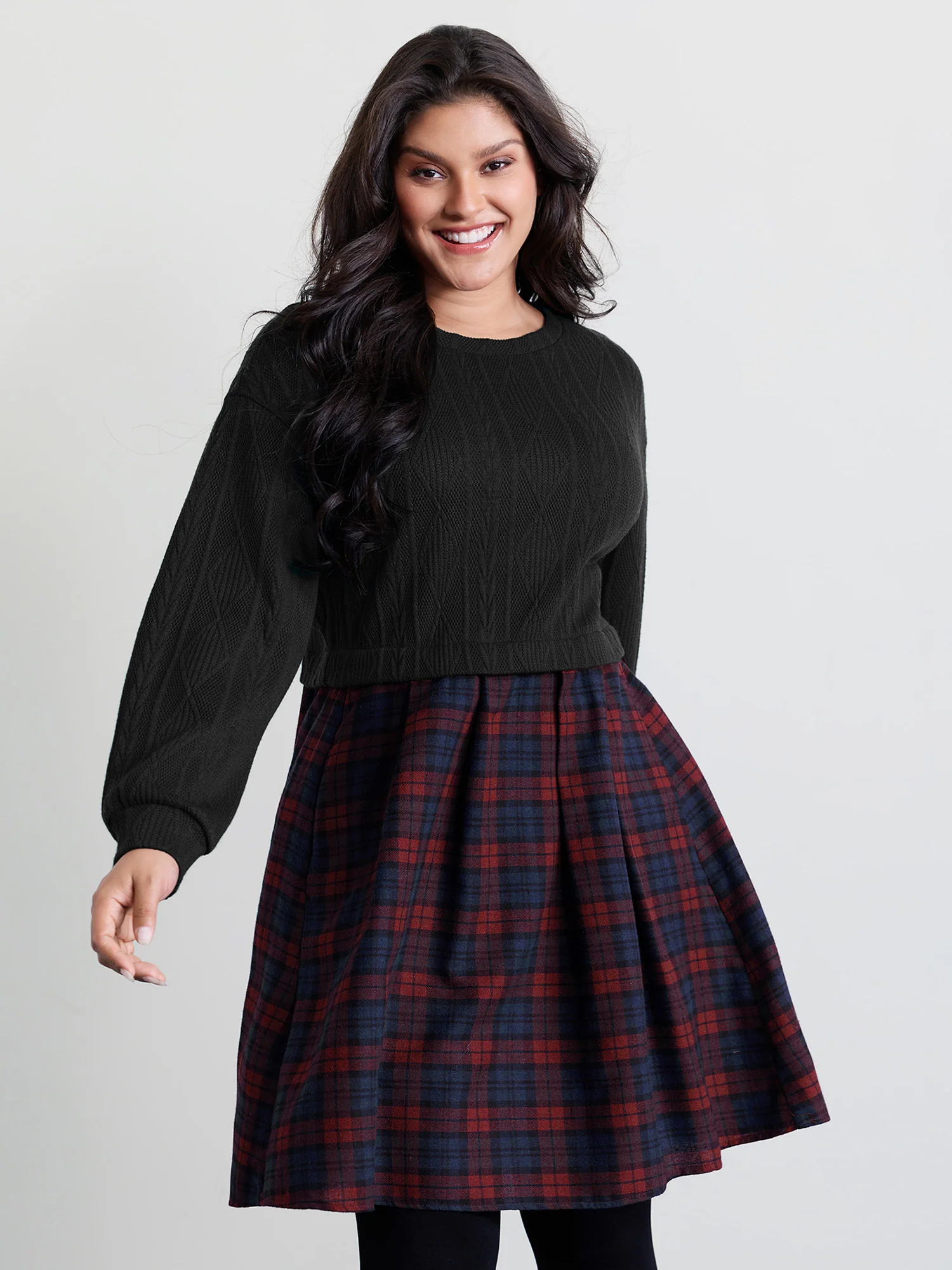 Supersoft Check Jacquard Cableknit Cinched-Waist Pullover