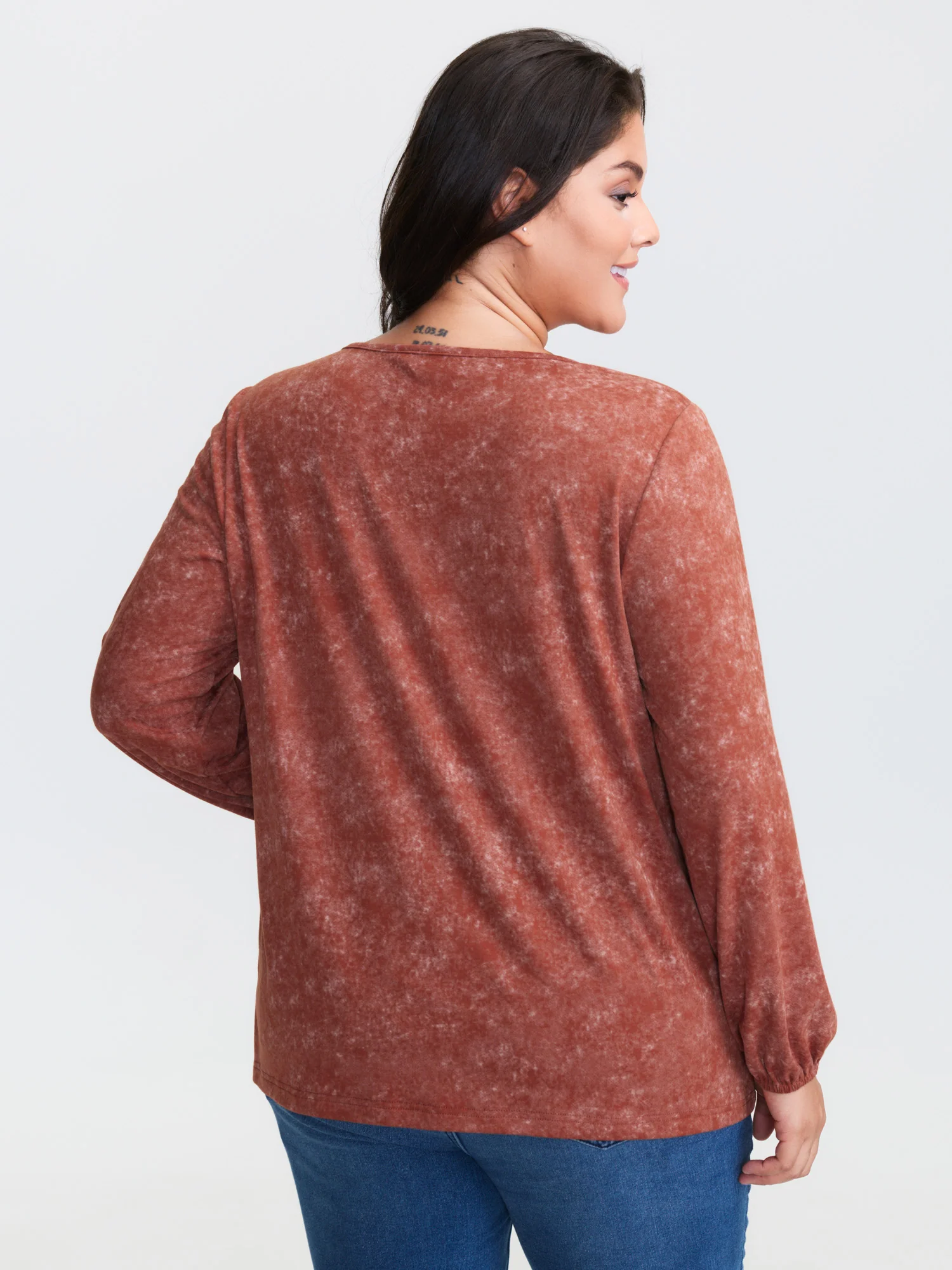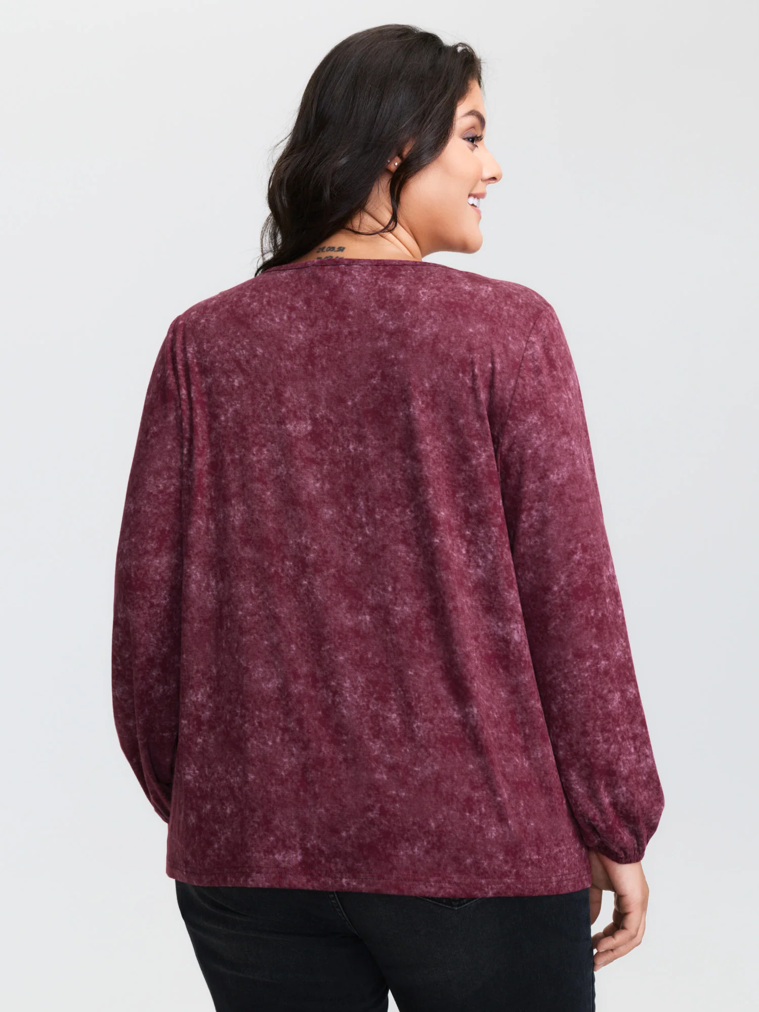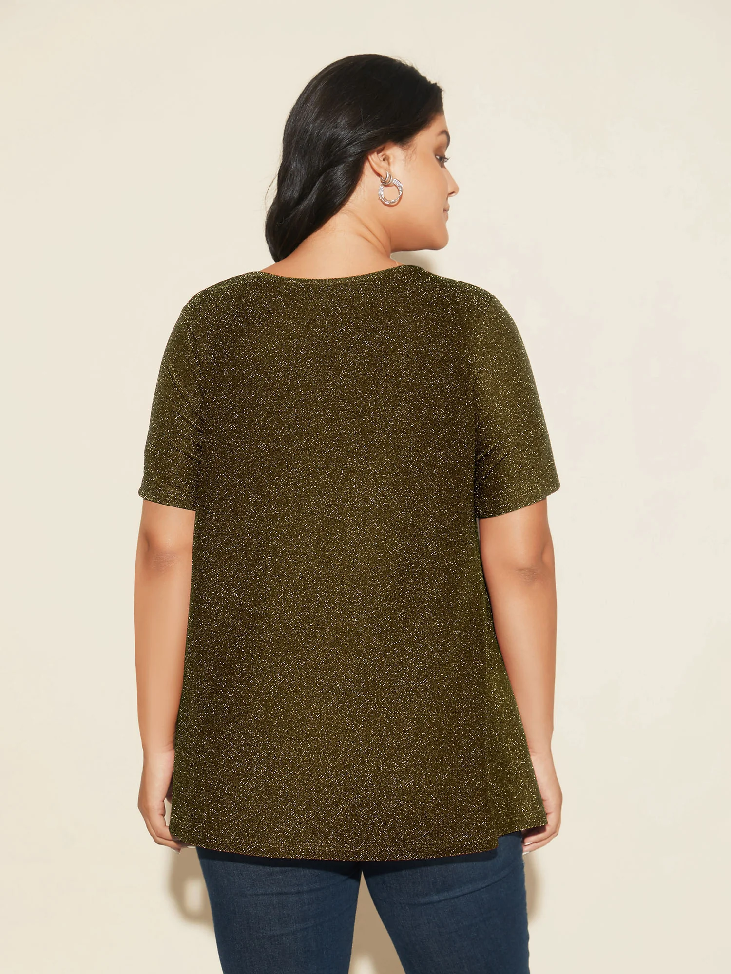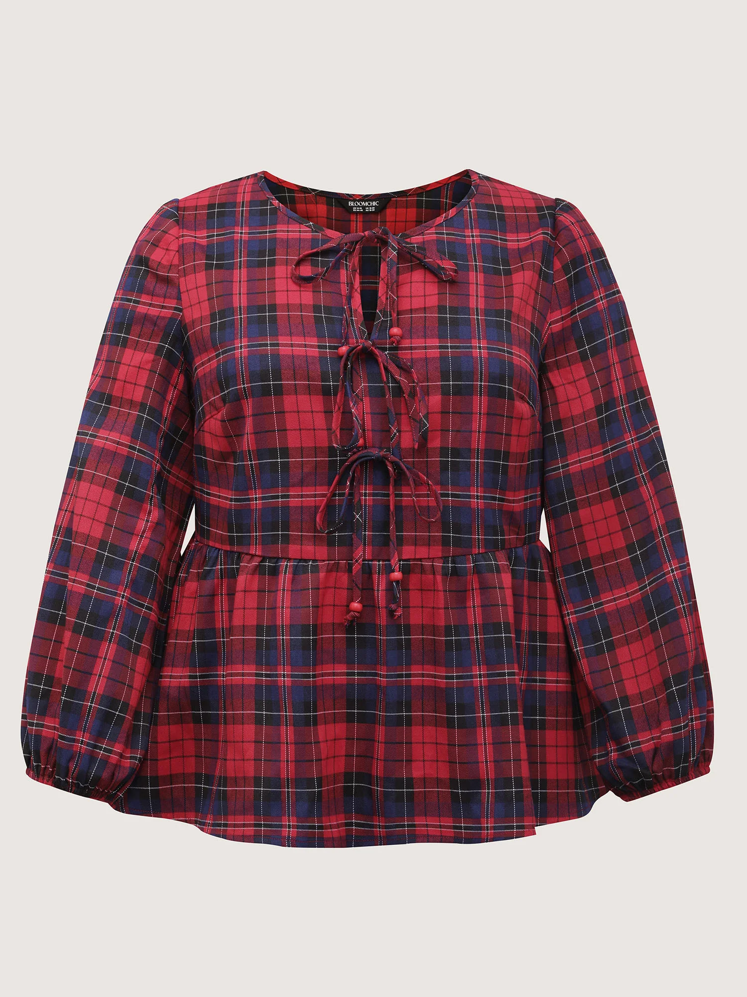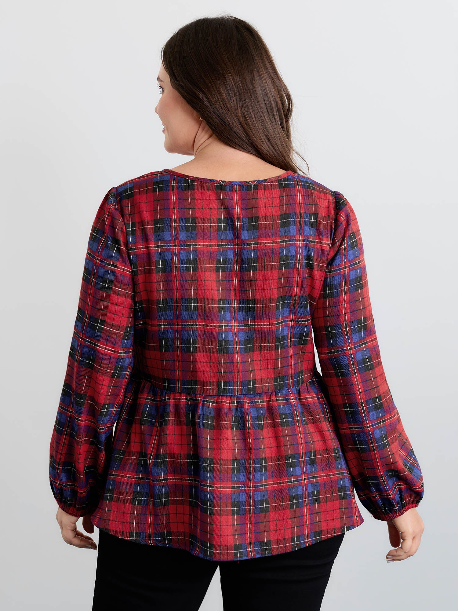 Plaid Contrast Notched Raglan Sleeve T-shirt