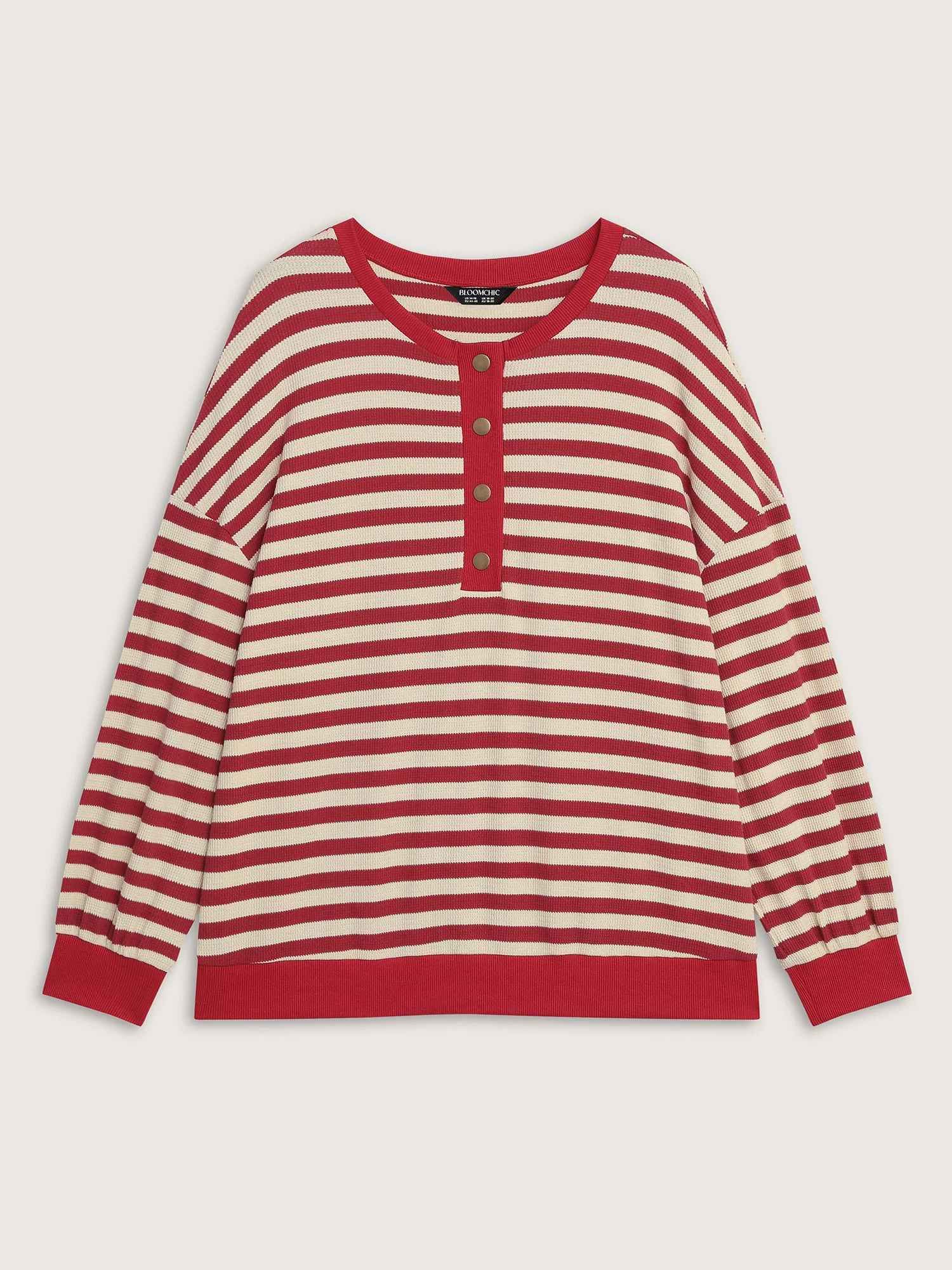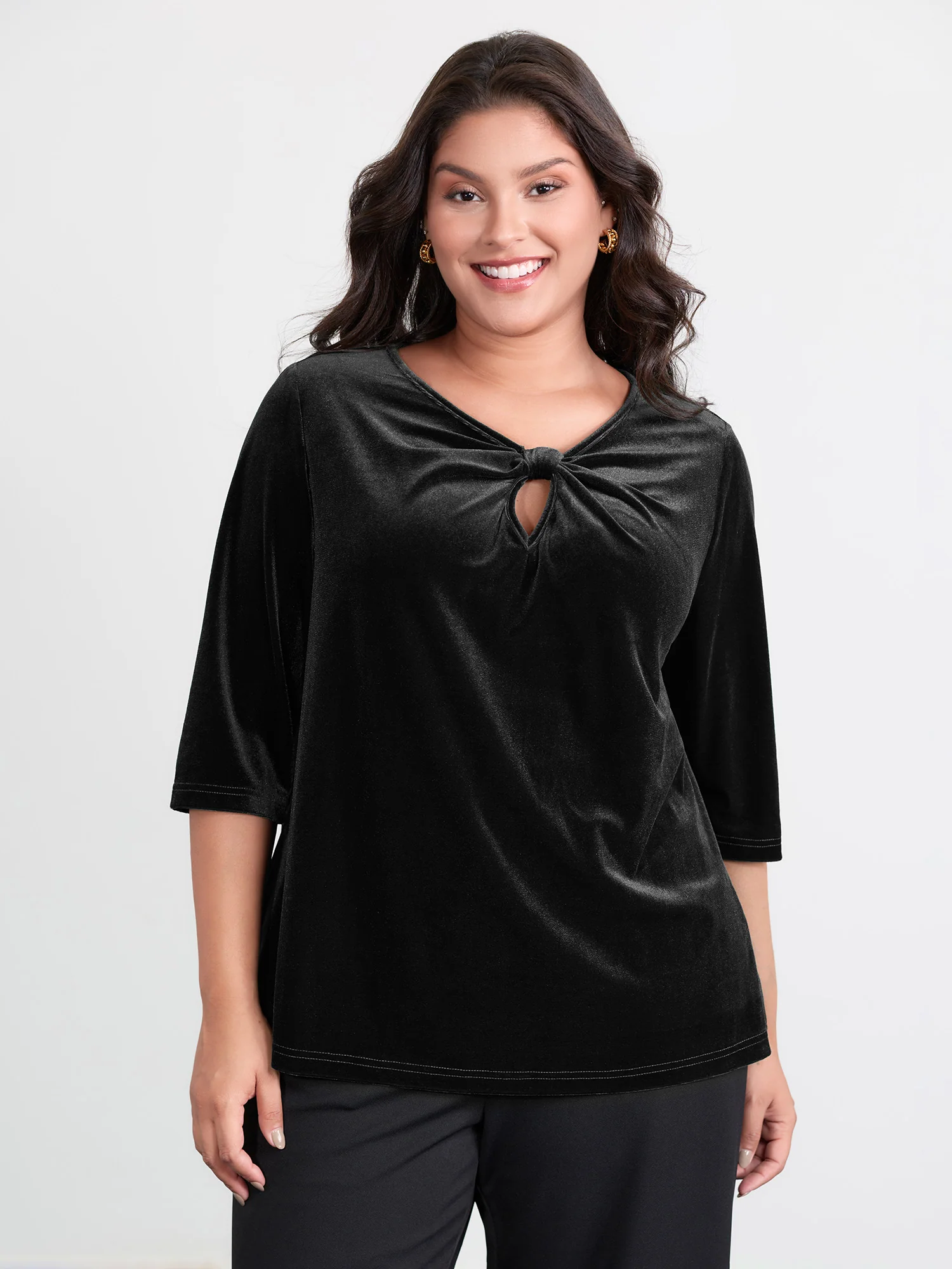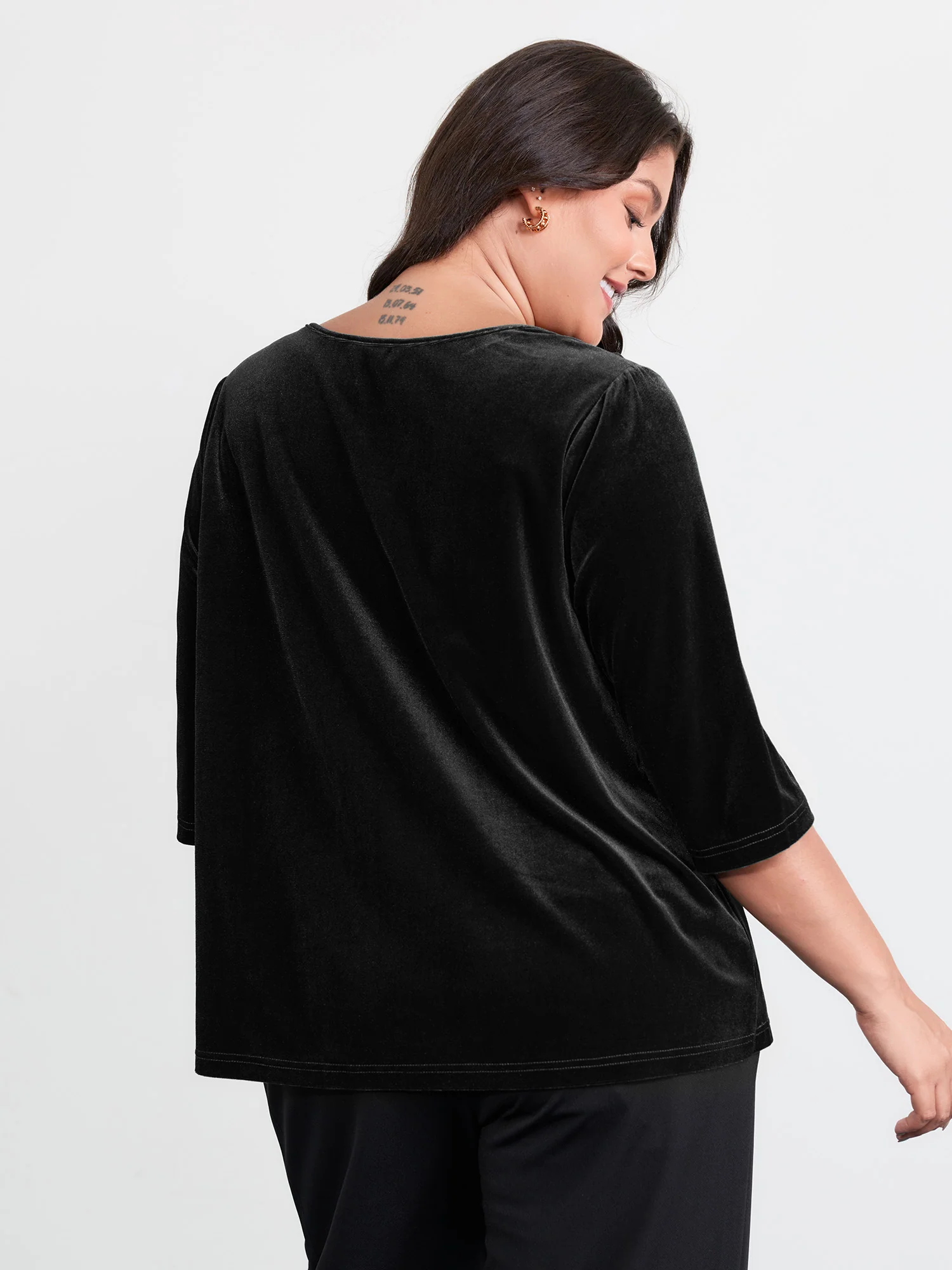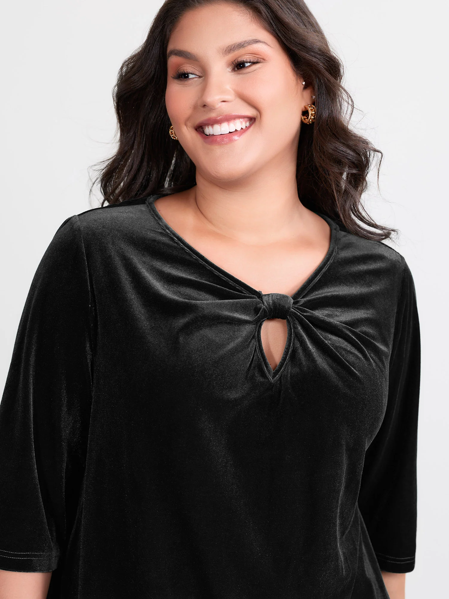 Plaid Contrast Notched Raglan Sleeve T-shirt