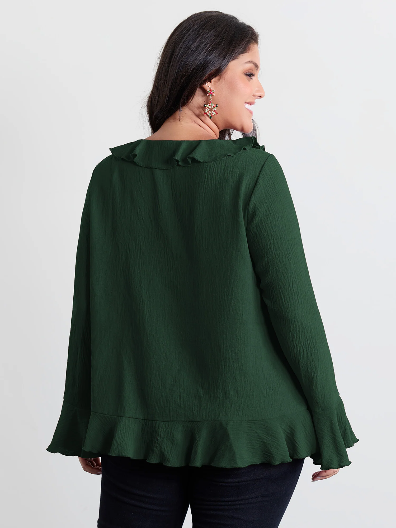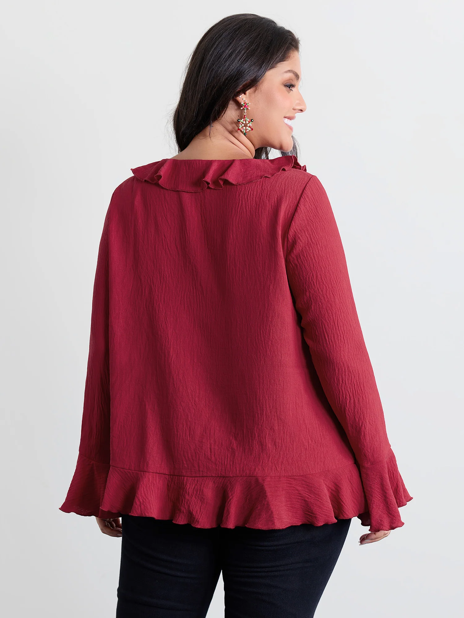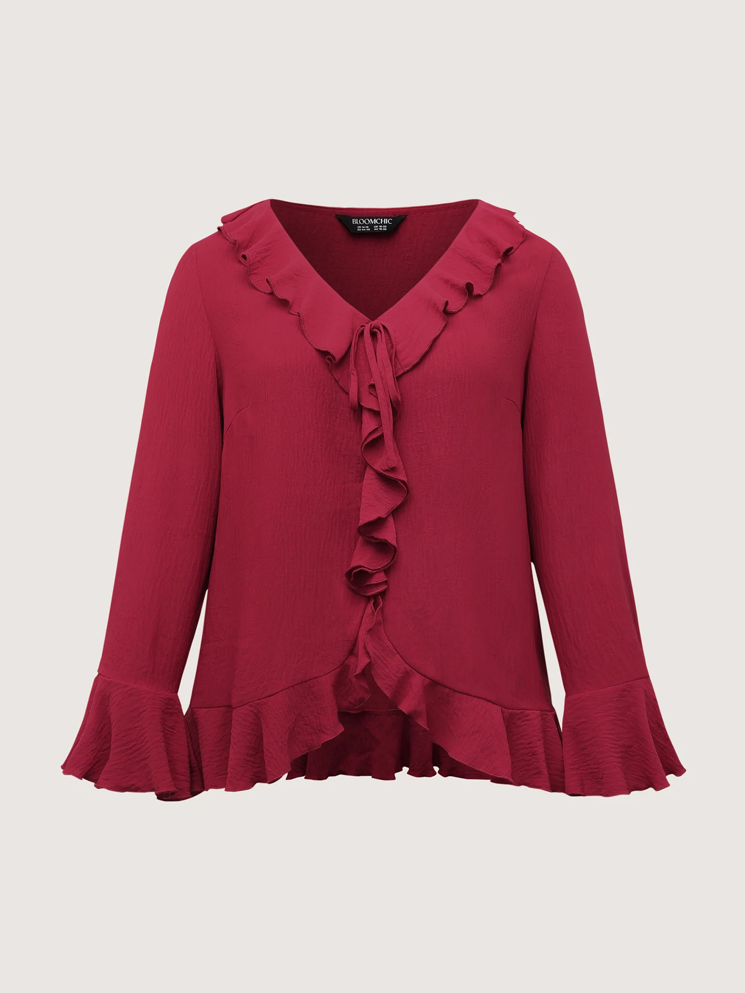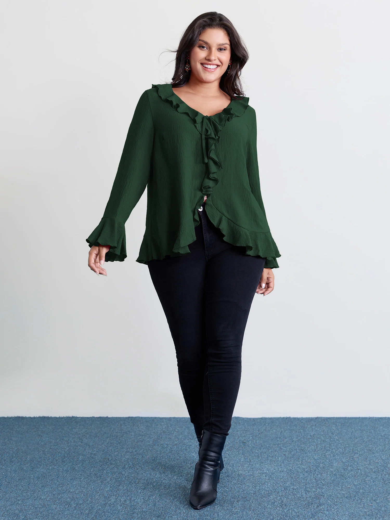 Pearl Beaded Mesh Patchwork Ruffles Blouse