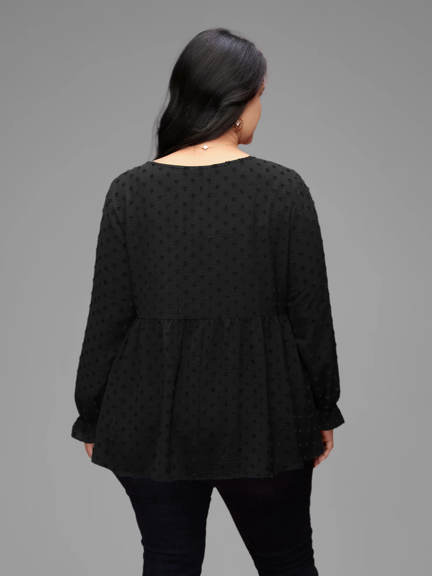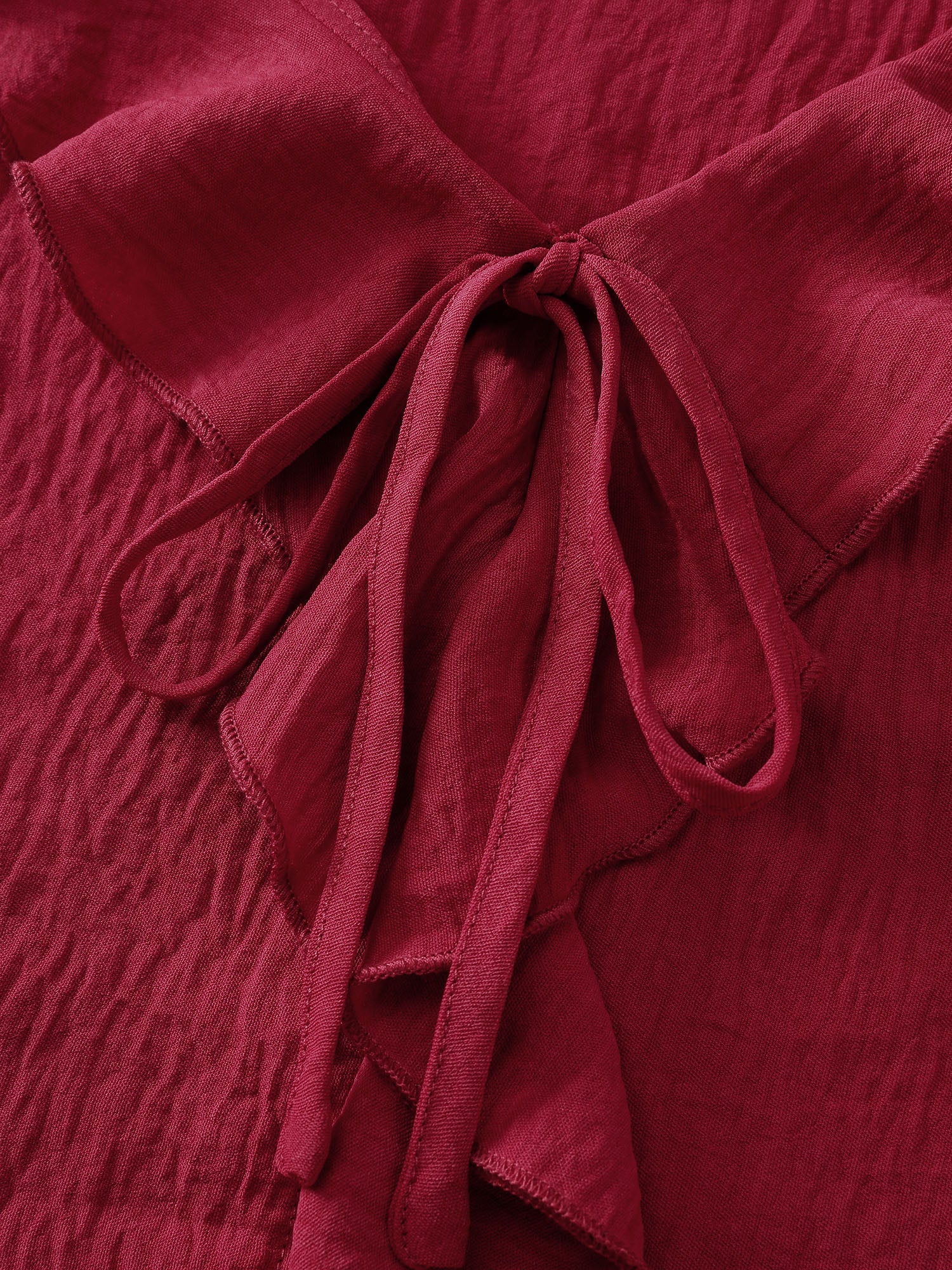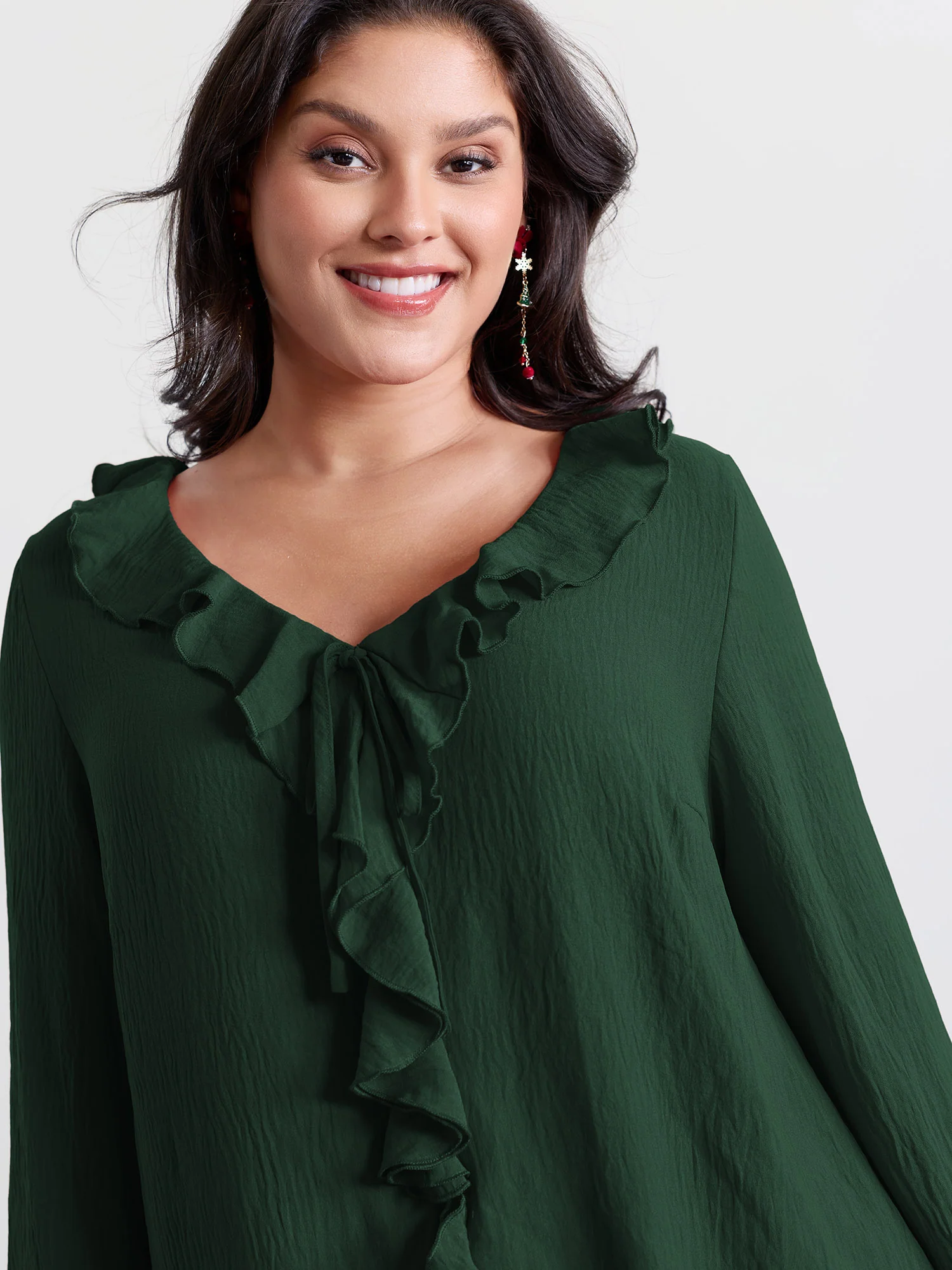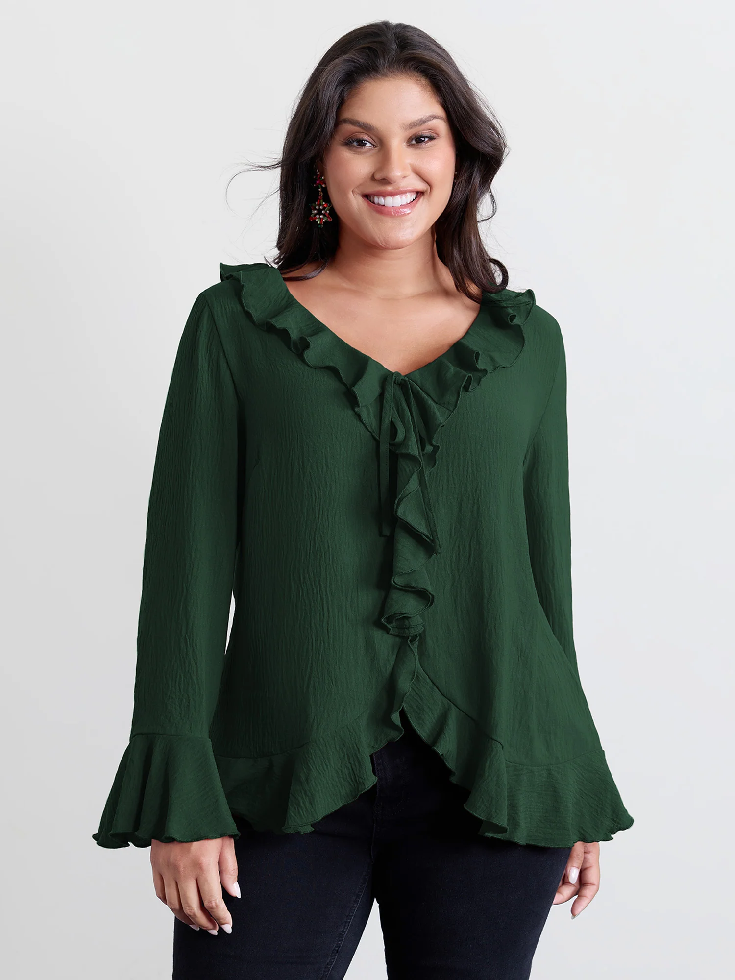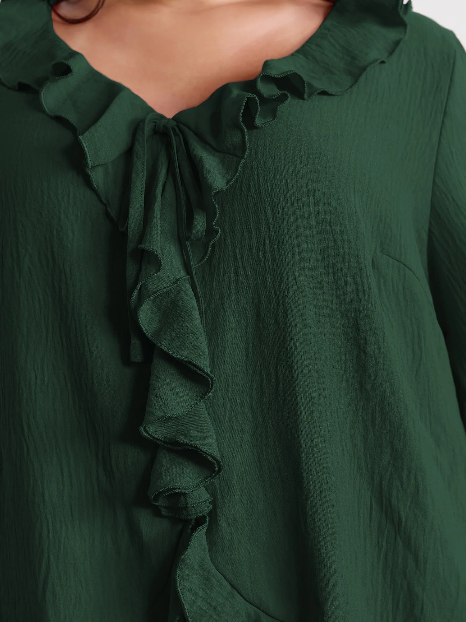 Pearl Beaded Mesh Patchwork Ruffles Blouse
