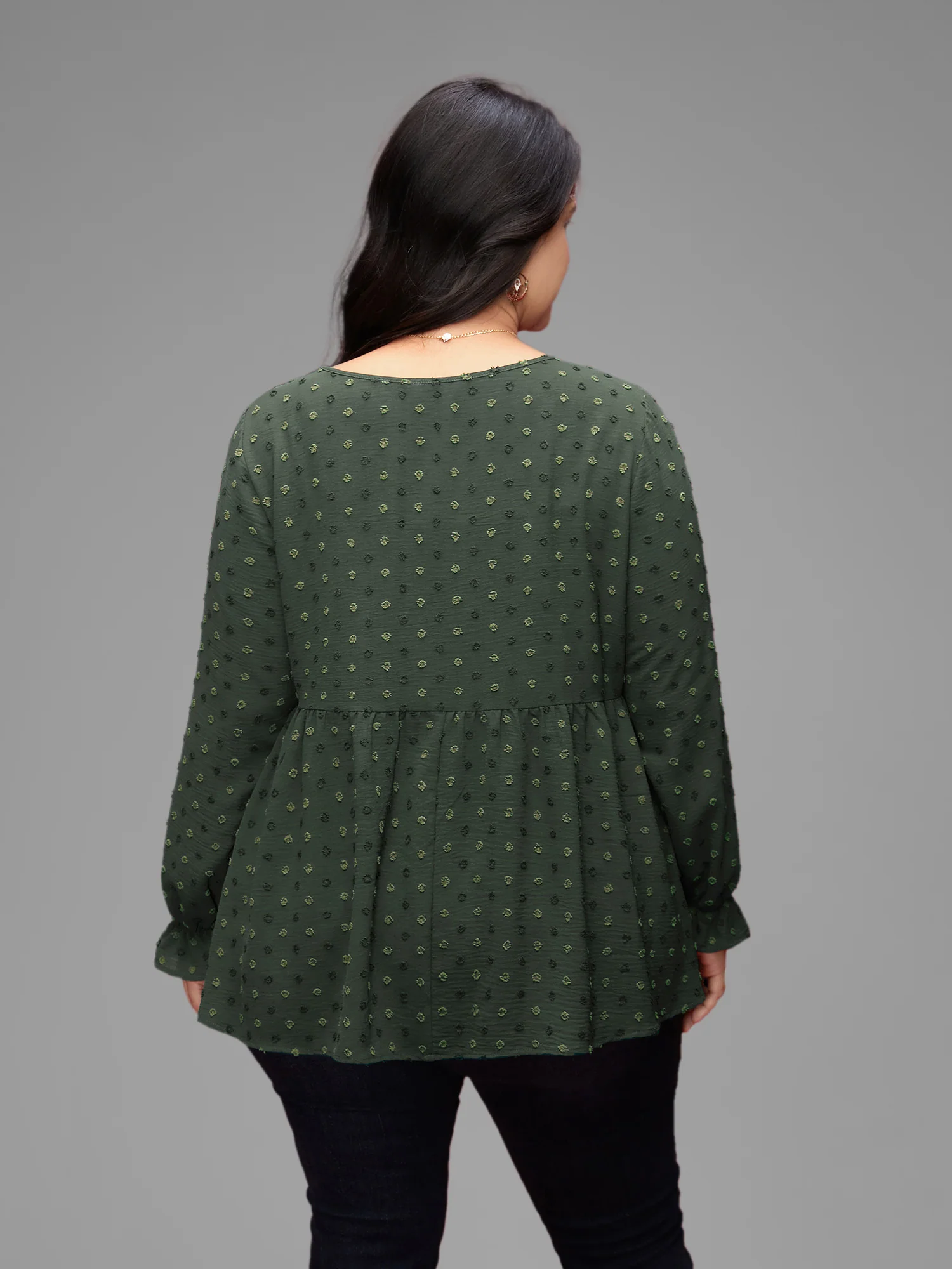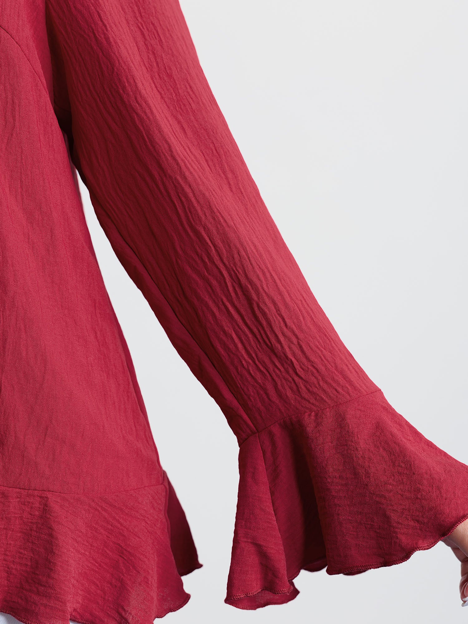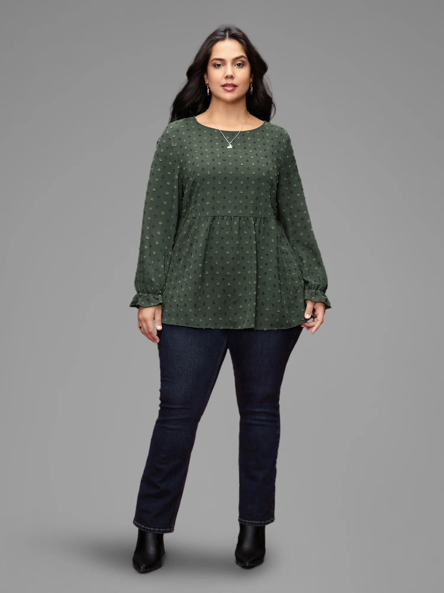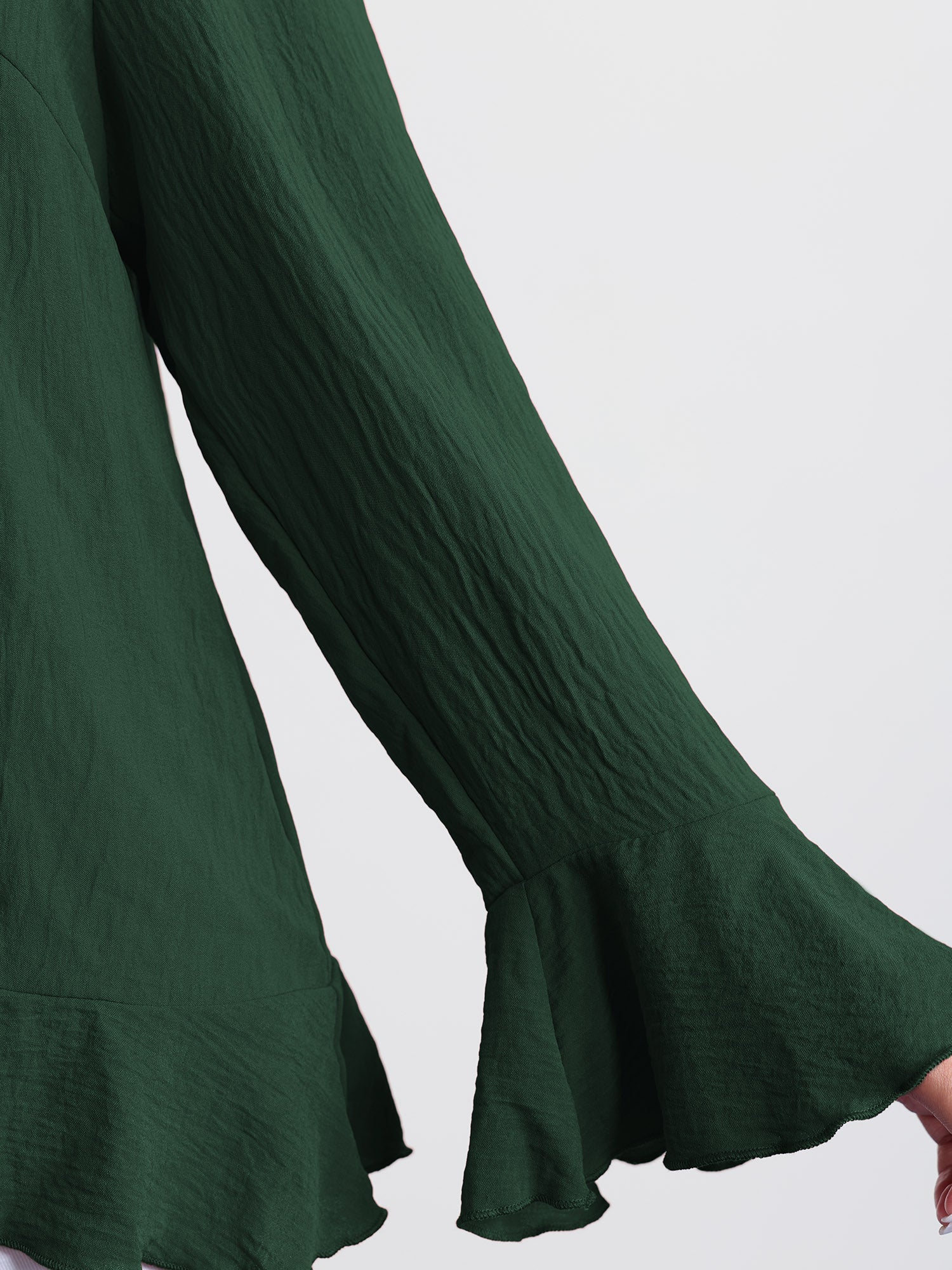 Pearl Beaded Mesh Patchwork Ruffles Blouse