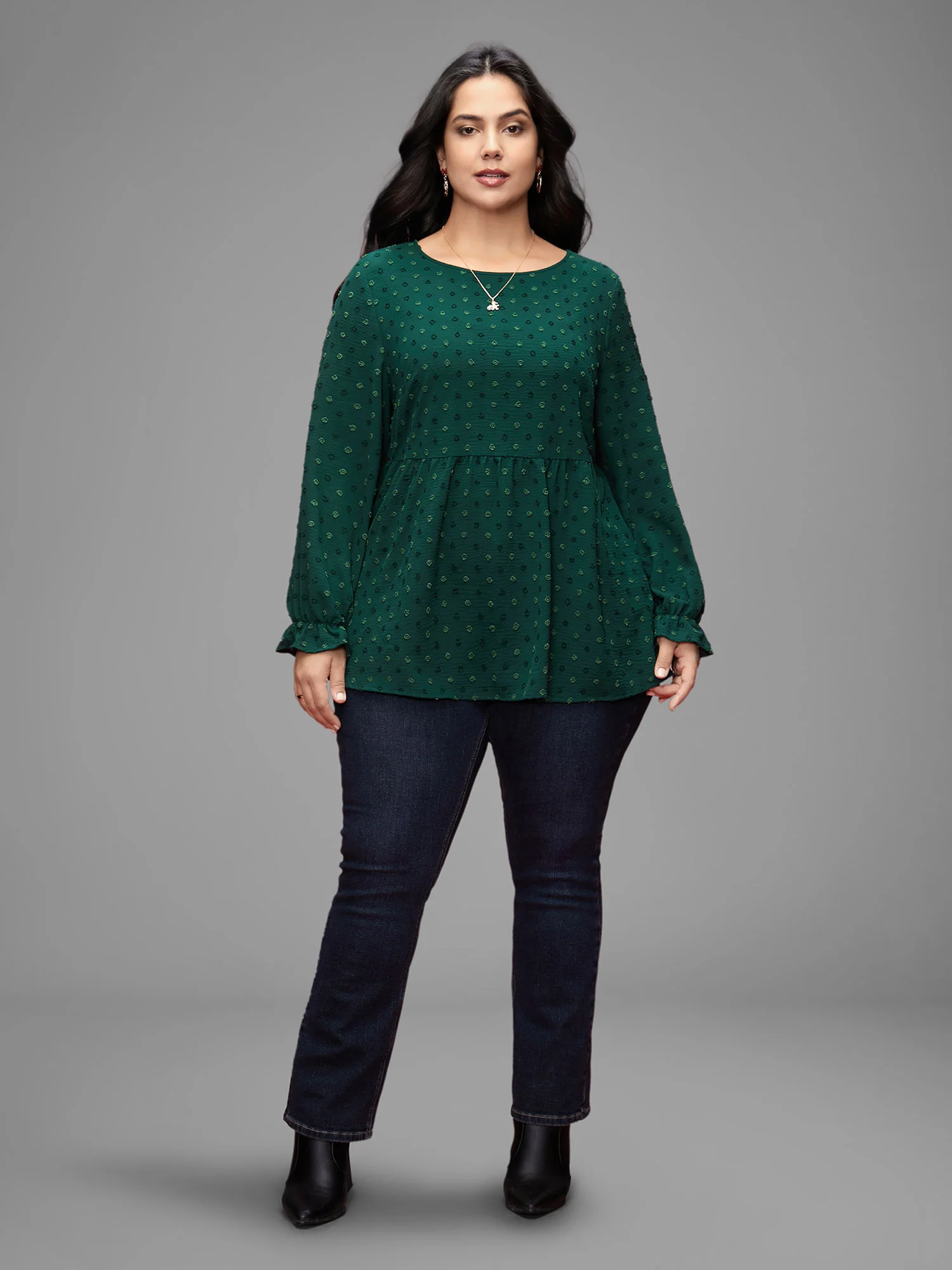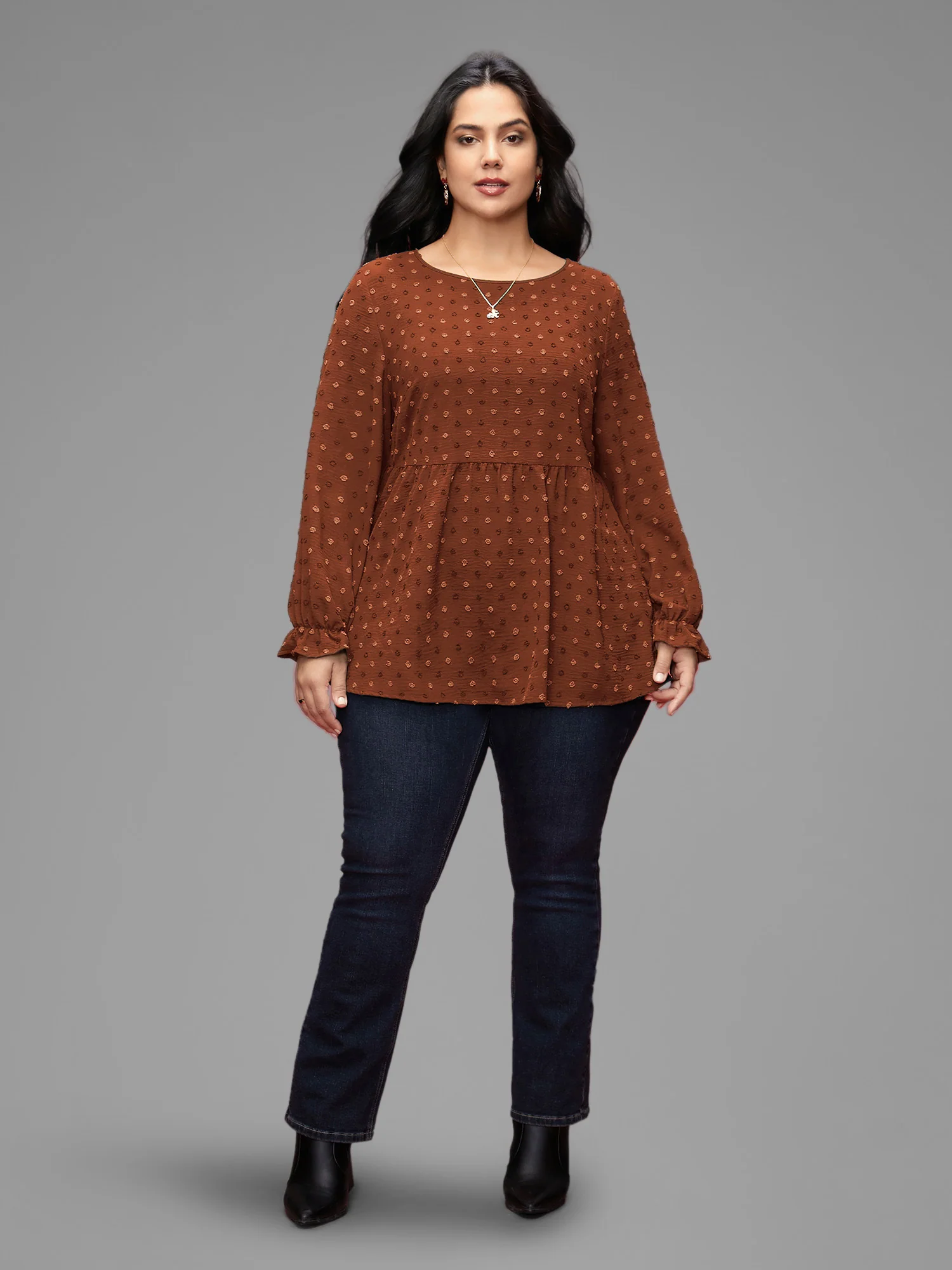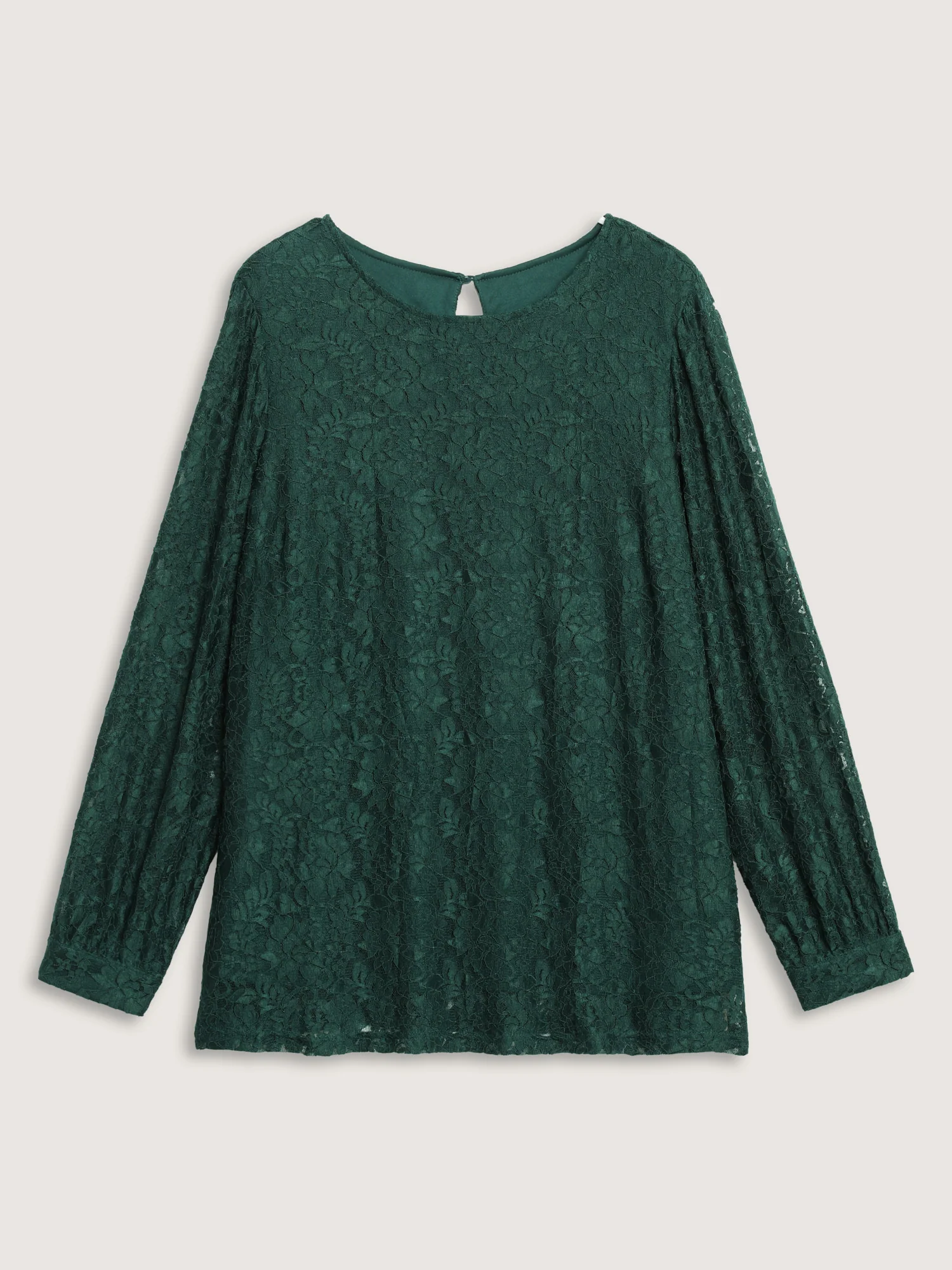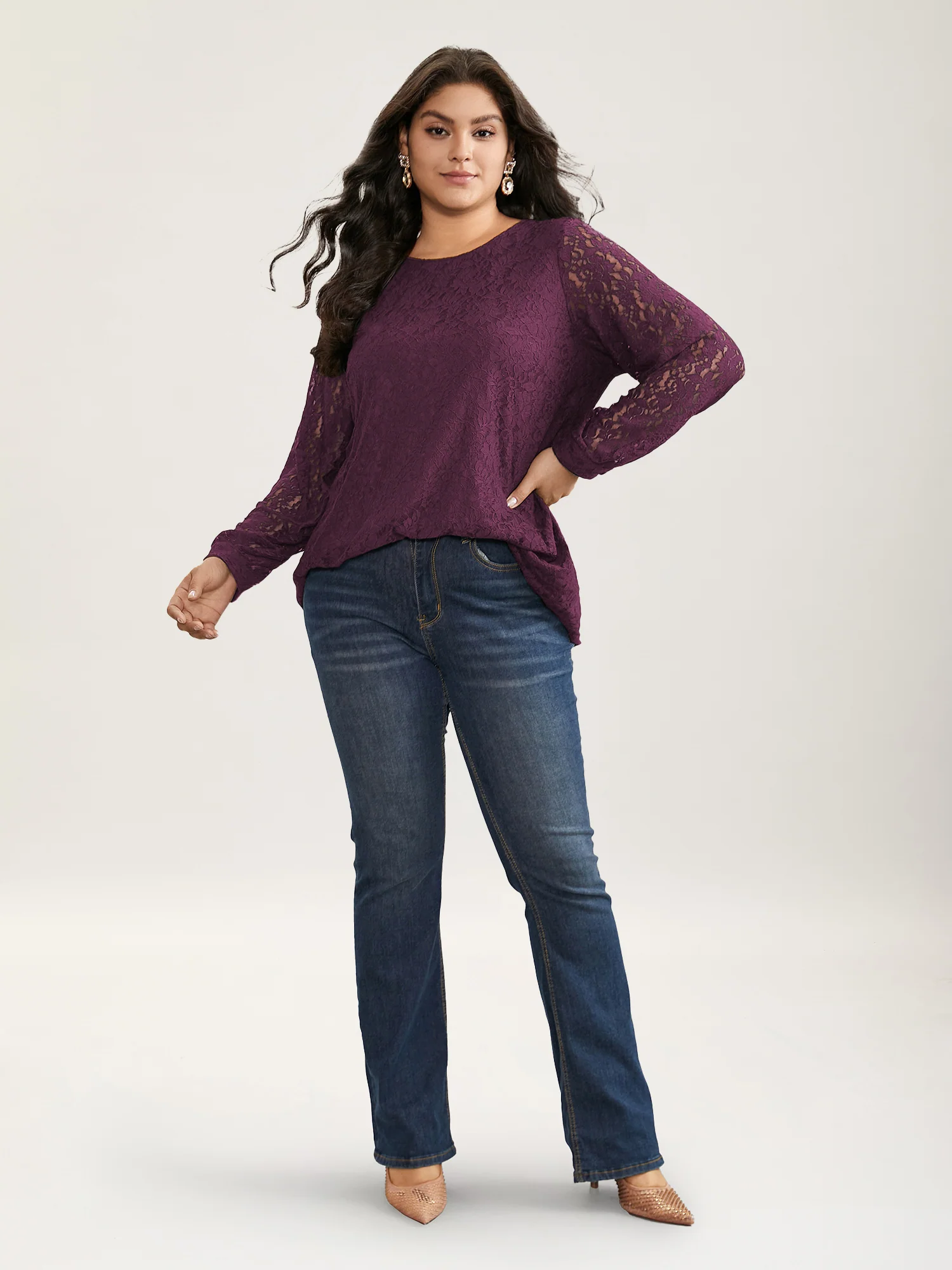 Solid Crochet Lace Mesh Crew Neck Blouse
